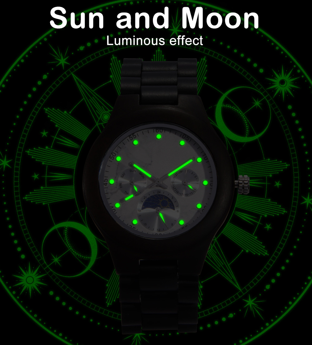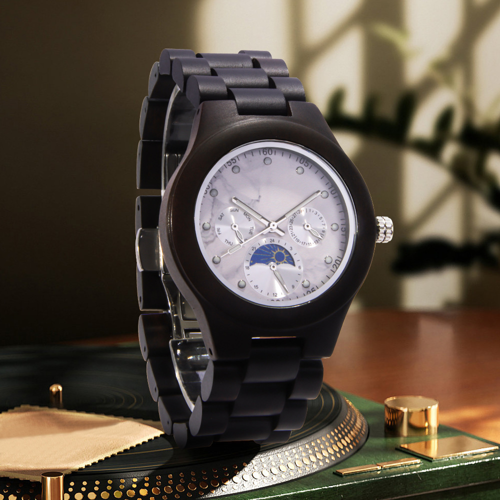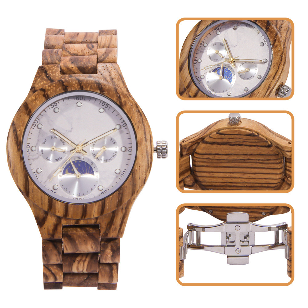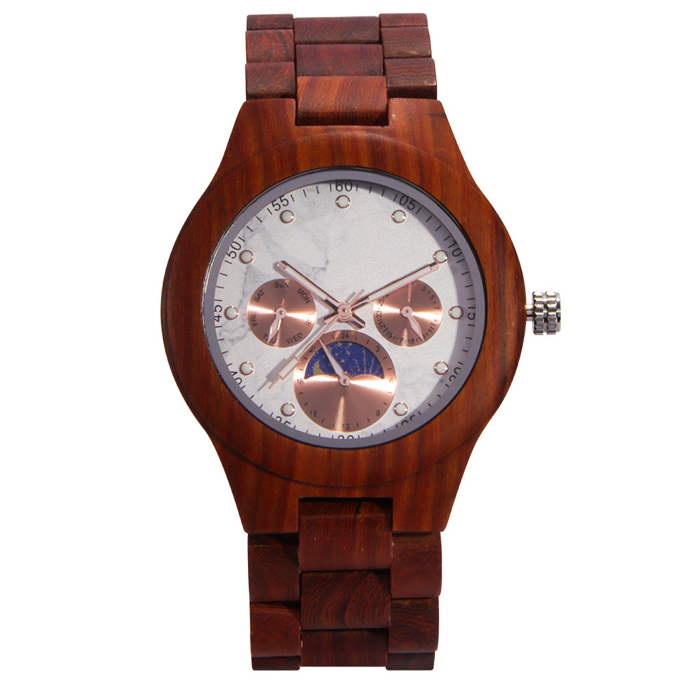 热卖工厂热销时尚搪瓷表盘中性木质表经典复古多功能日月星辰石英手表