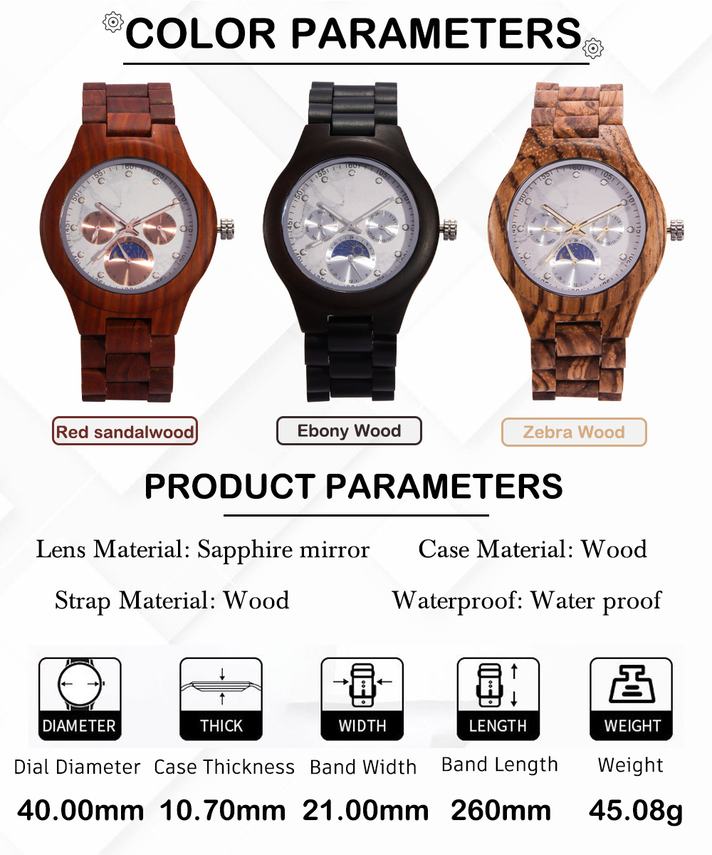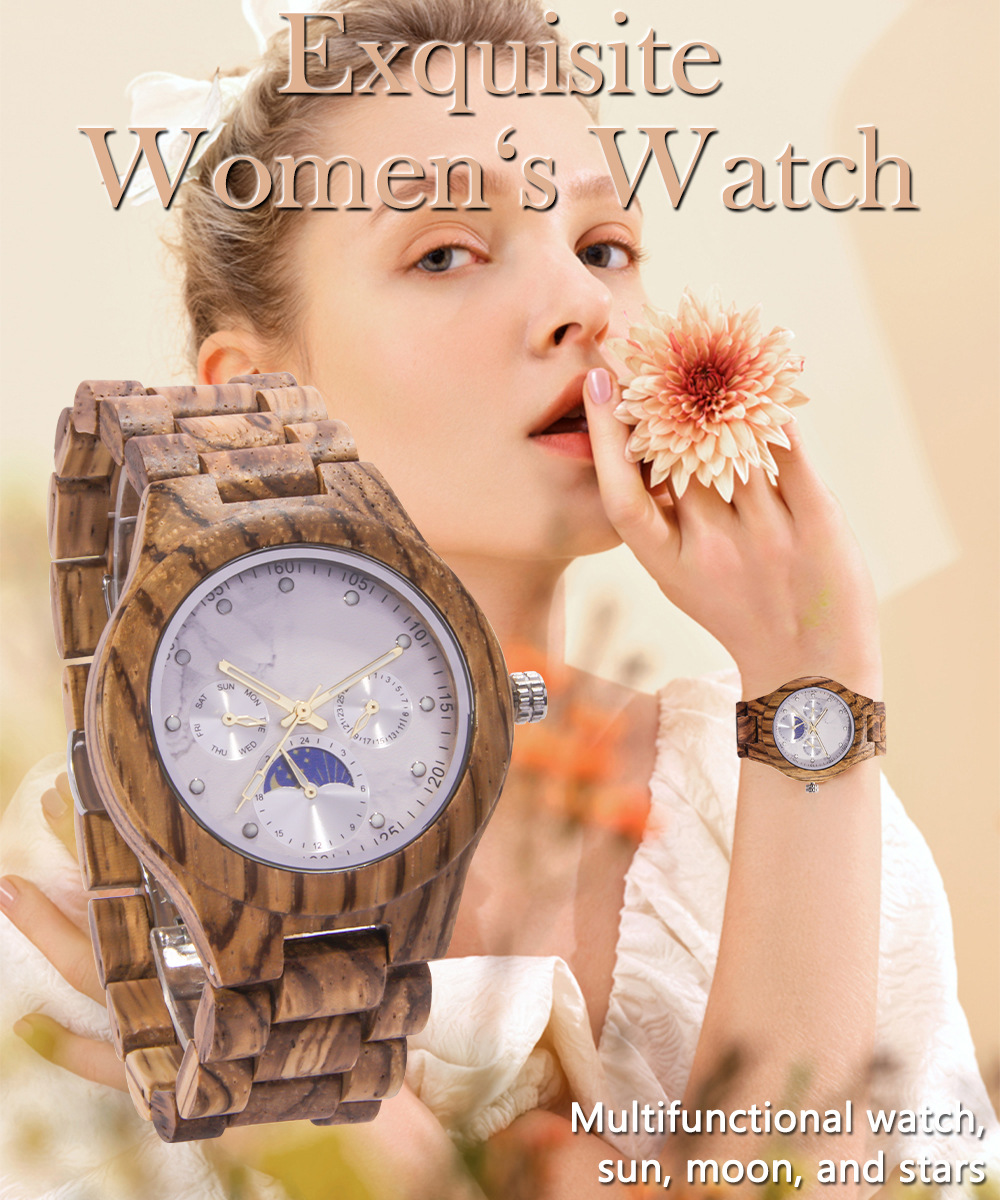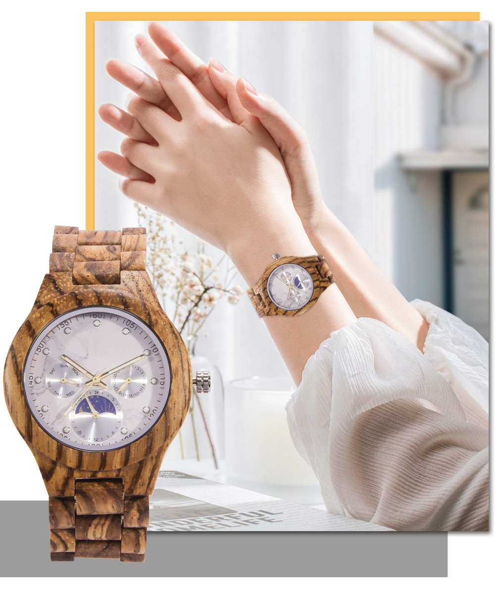 热卖工厂热销时尚搪瓷表盘中性木质表经典复古多功能日月星辰石英手表