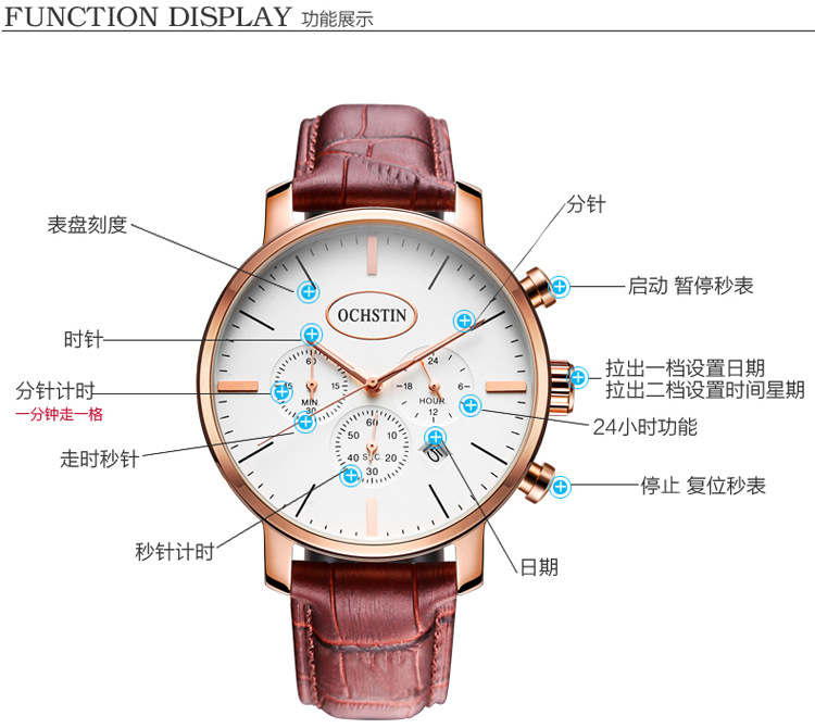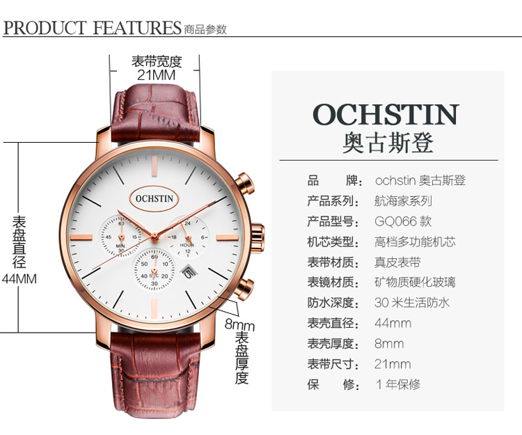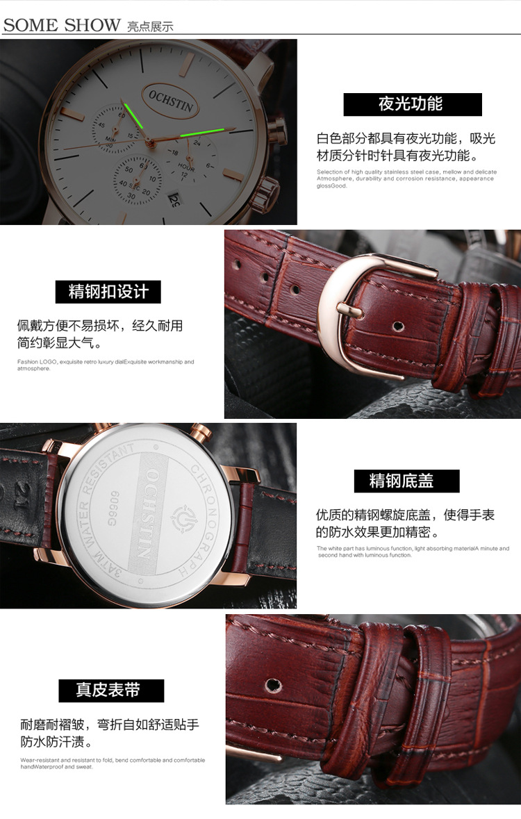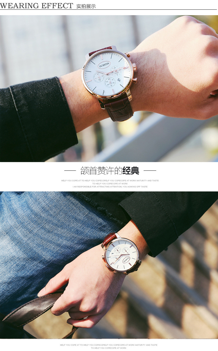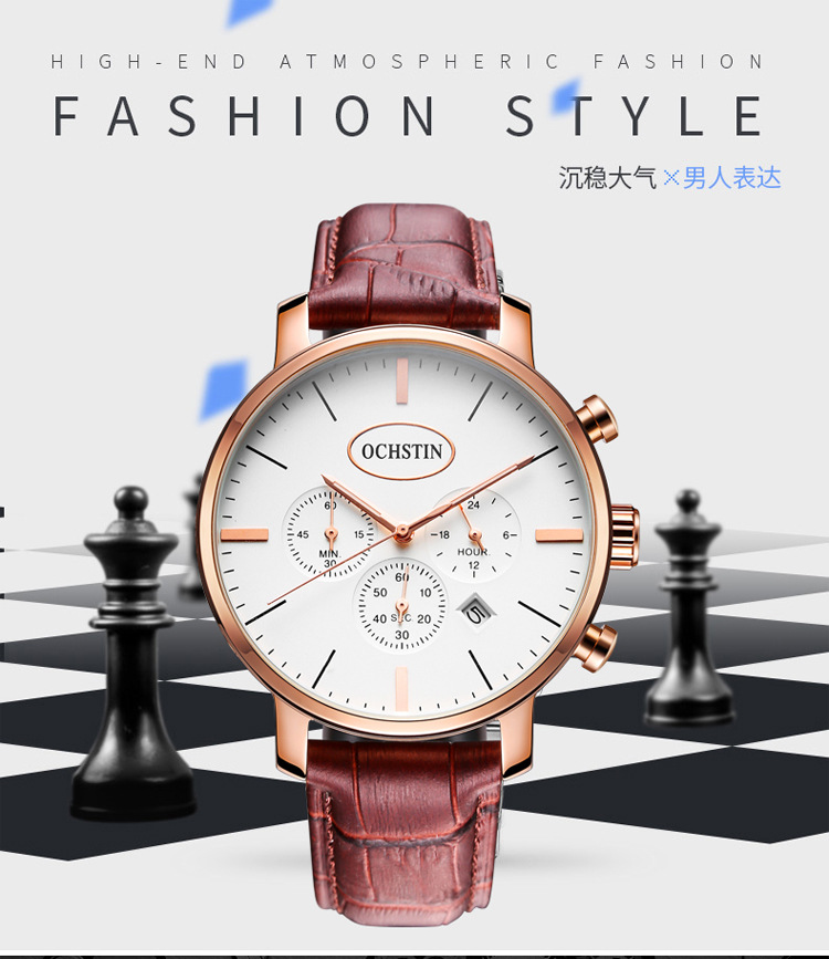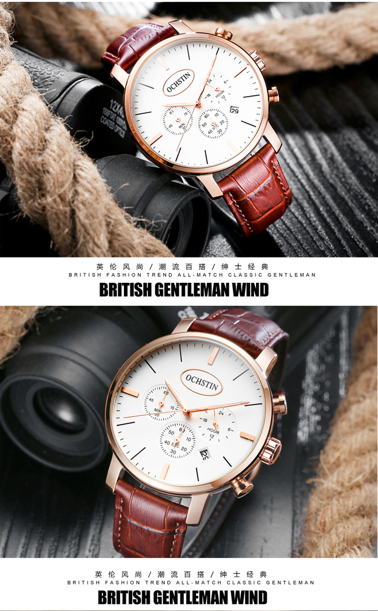 热卖OCHSTIN奥古斯登跨境热销绅士风男表多功能带日历石英表男士手表