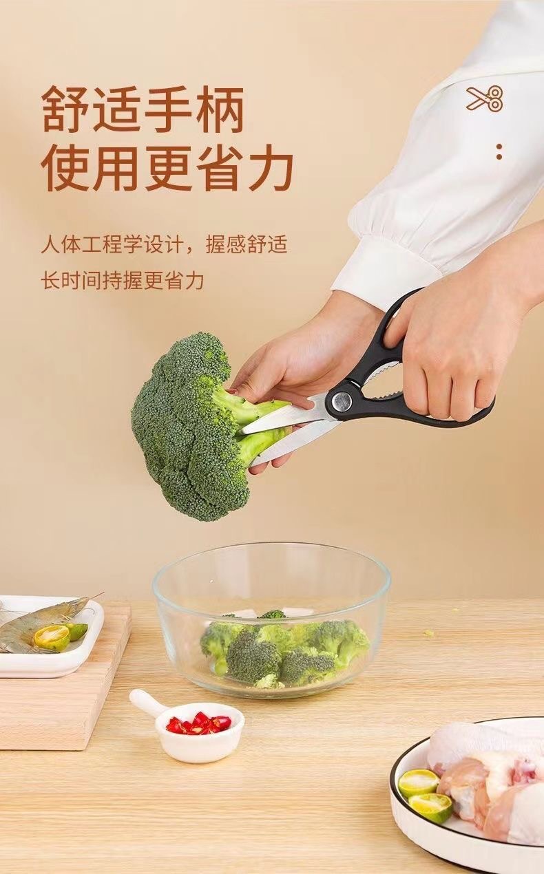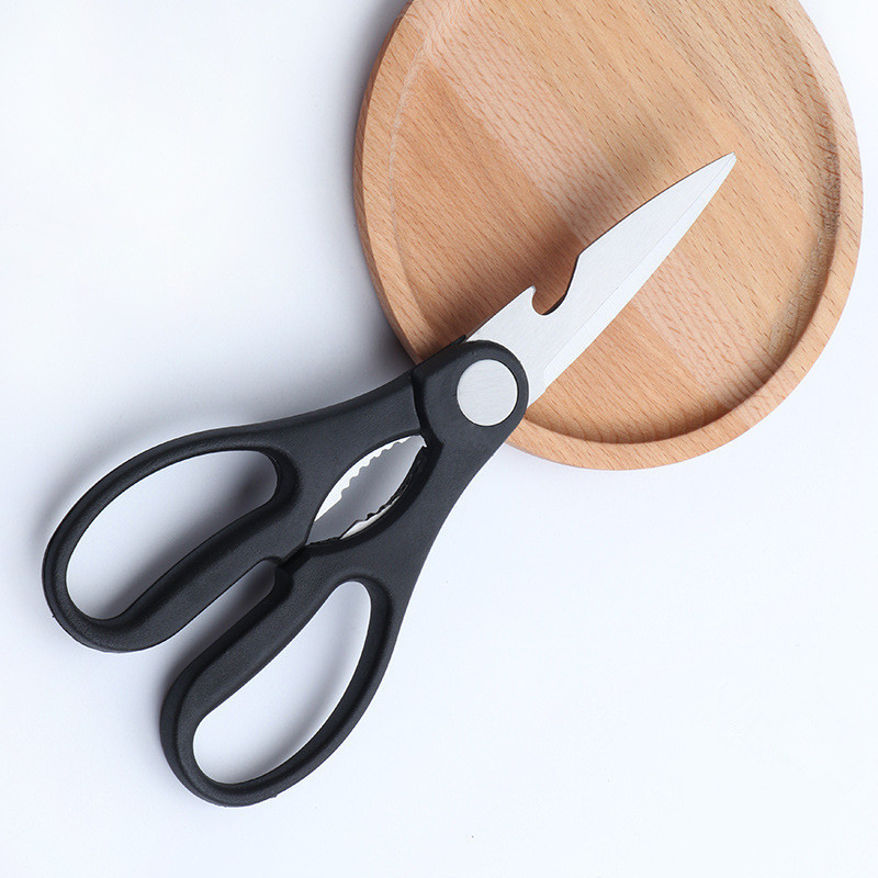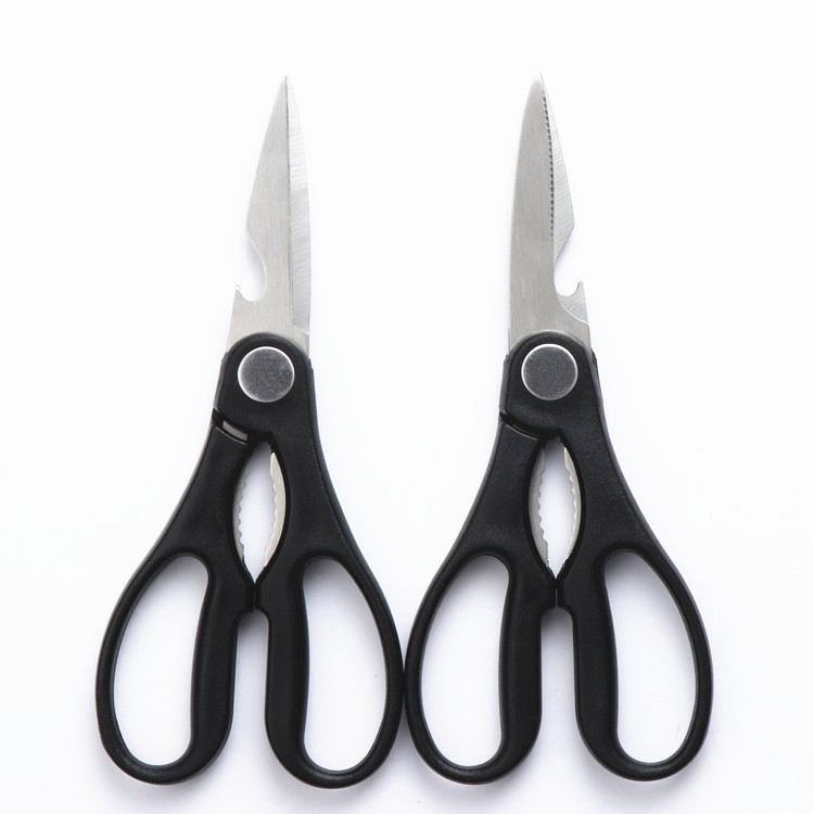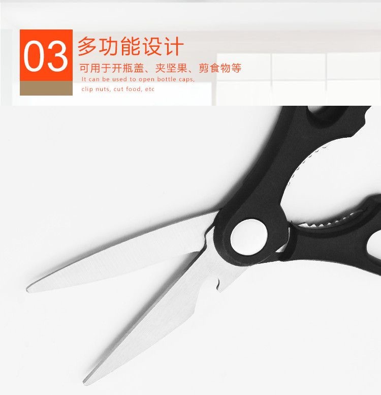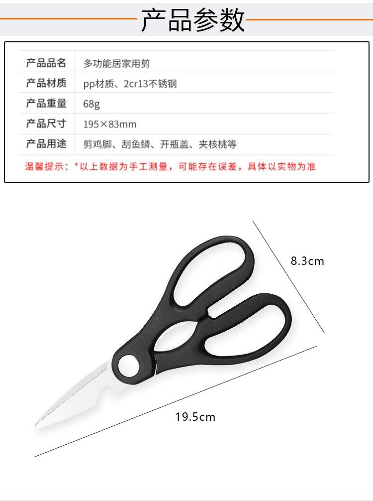 热卖厨房家用剪刀不锈钢 pp手柄剪刀多功能食物烤肉鸡骨剪刀带开罐器