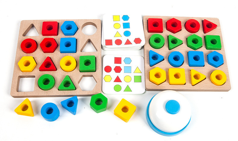 热卖蒙氏形状认知配对玩具儿童益智力几何嵌板拼图找位幼儿园启蒙教具