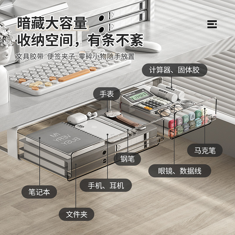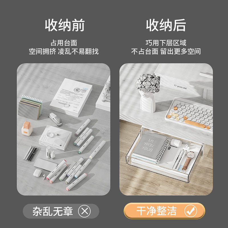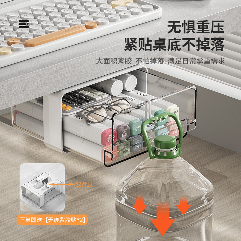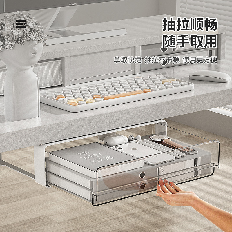 热卖桌下抽屉式收纳盒 化妆品收纳盒 办公桌隐藏收纳盒宿舍文具储物盒