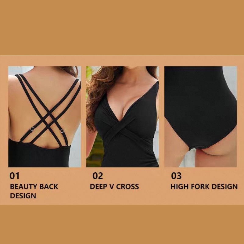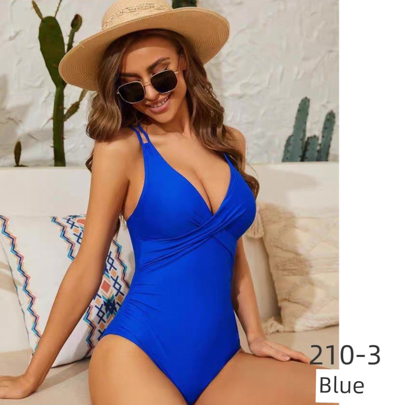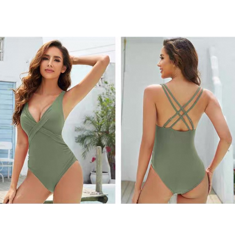 热卖Amber外单微胖MM三角连体褶皱泳衣女士高级感遮肚显瘦度假带胸垫