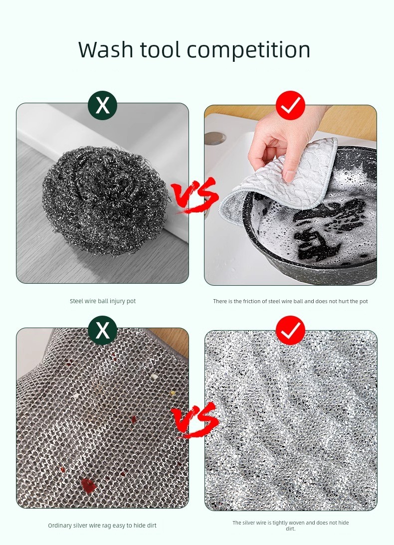 热卖钢丝洗碗布厨房专用银丝棉纱洗碗巾双层加厚不易沾油抹布刷碗神器