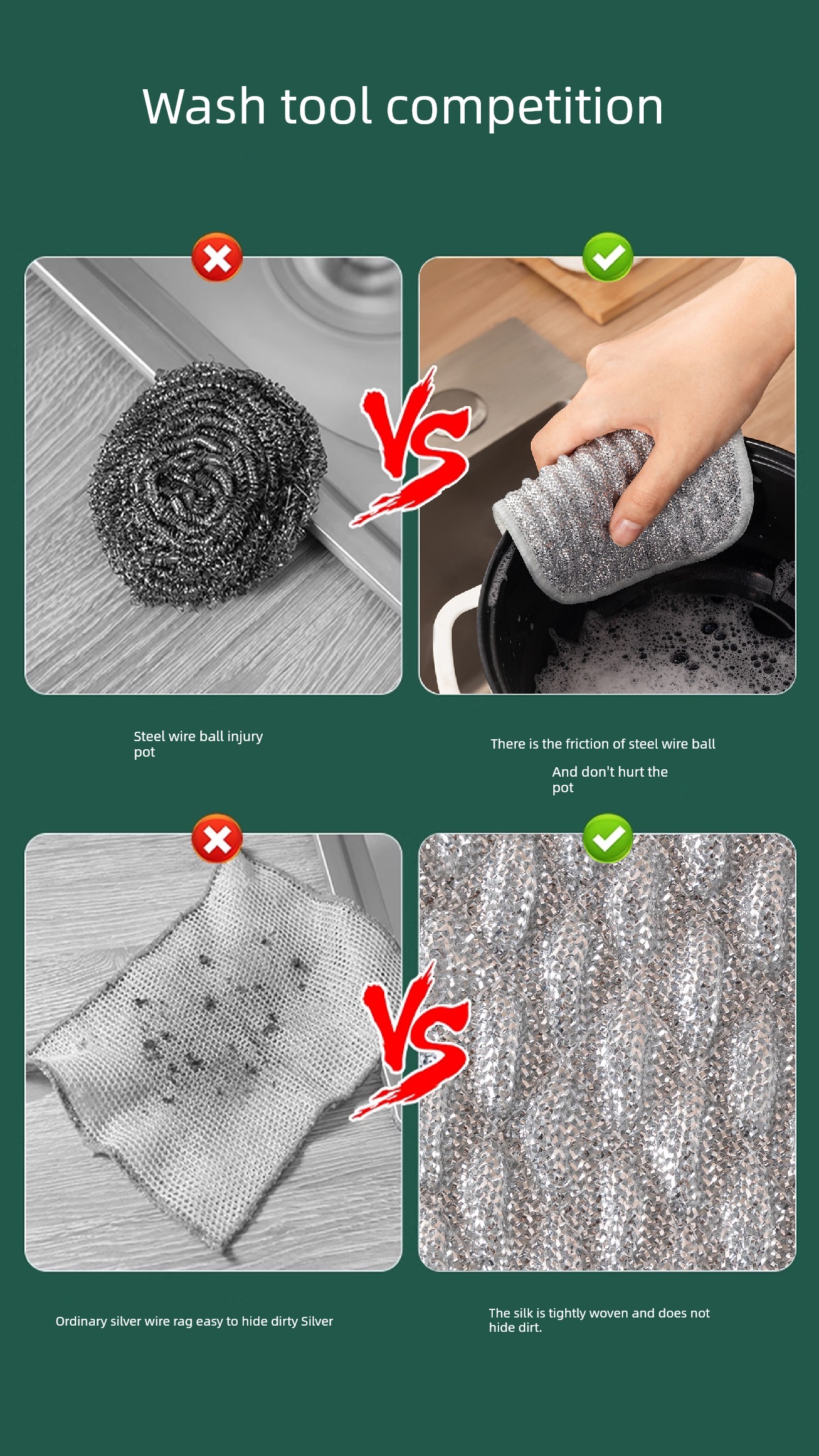 热卖钢丝洗碗布厨房专用银丝棉纱洗碗巾双层加厚不易沾油抹布刷碗神器