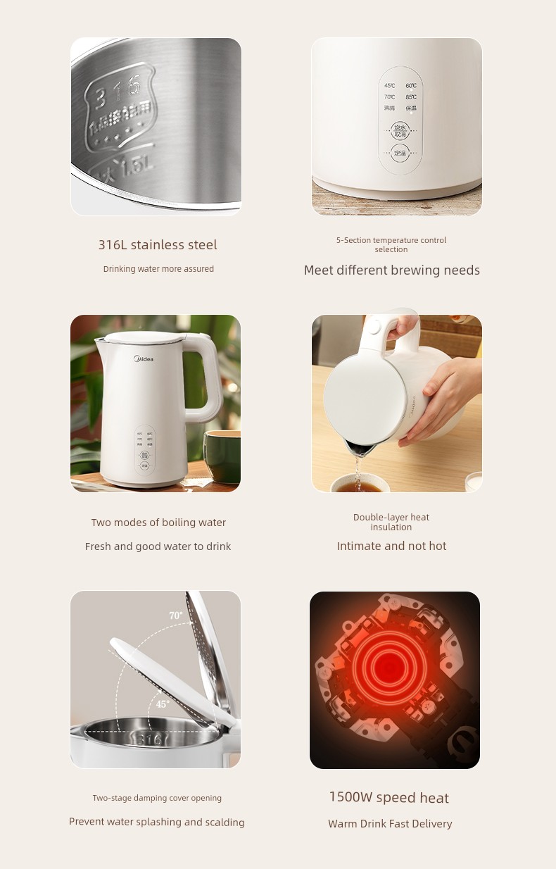 热卖美的大容量多功能一体电热水壶