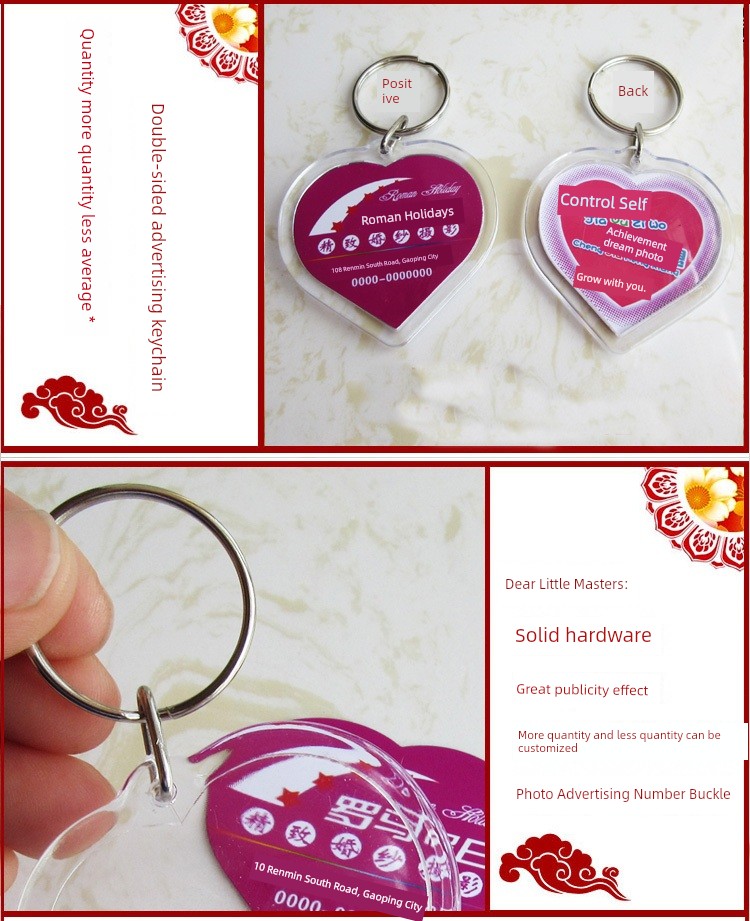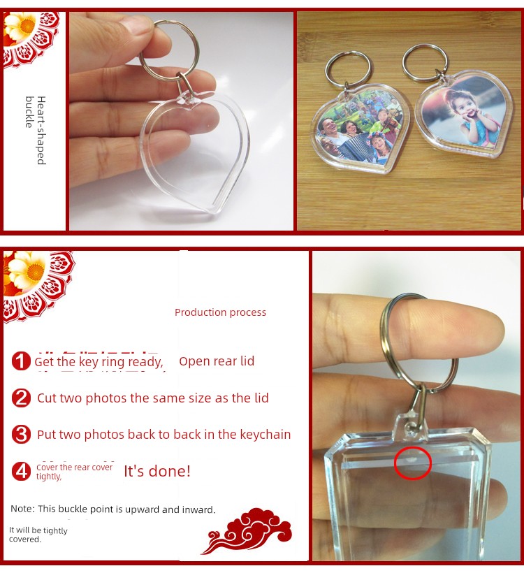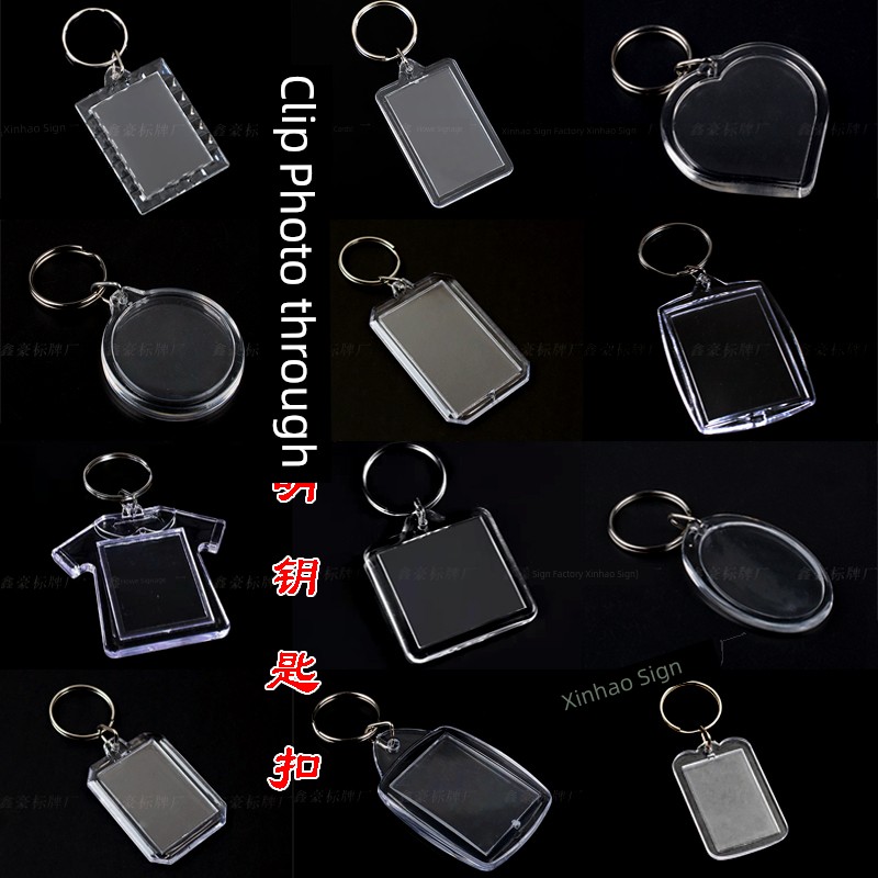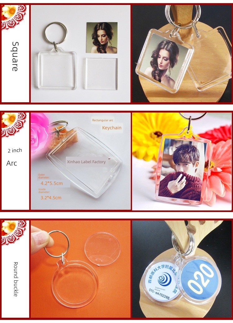 热卖正方照片钥匙扣空白透明壳广告人像相片大头贴锁匙扣正方景区相框