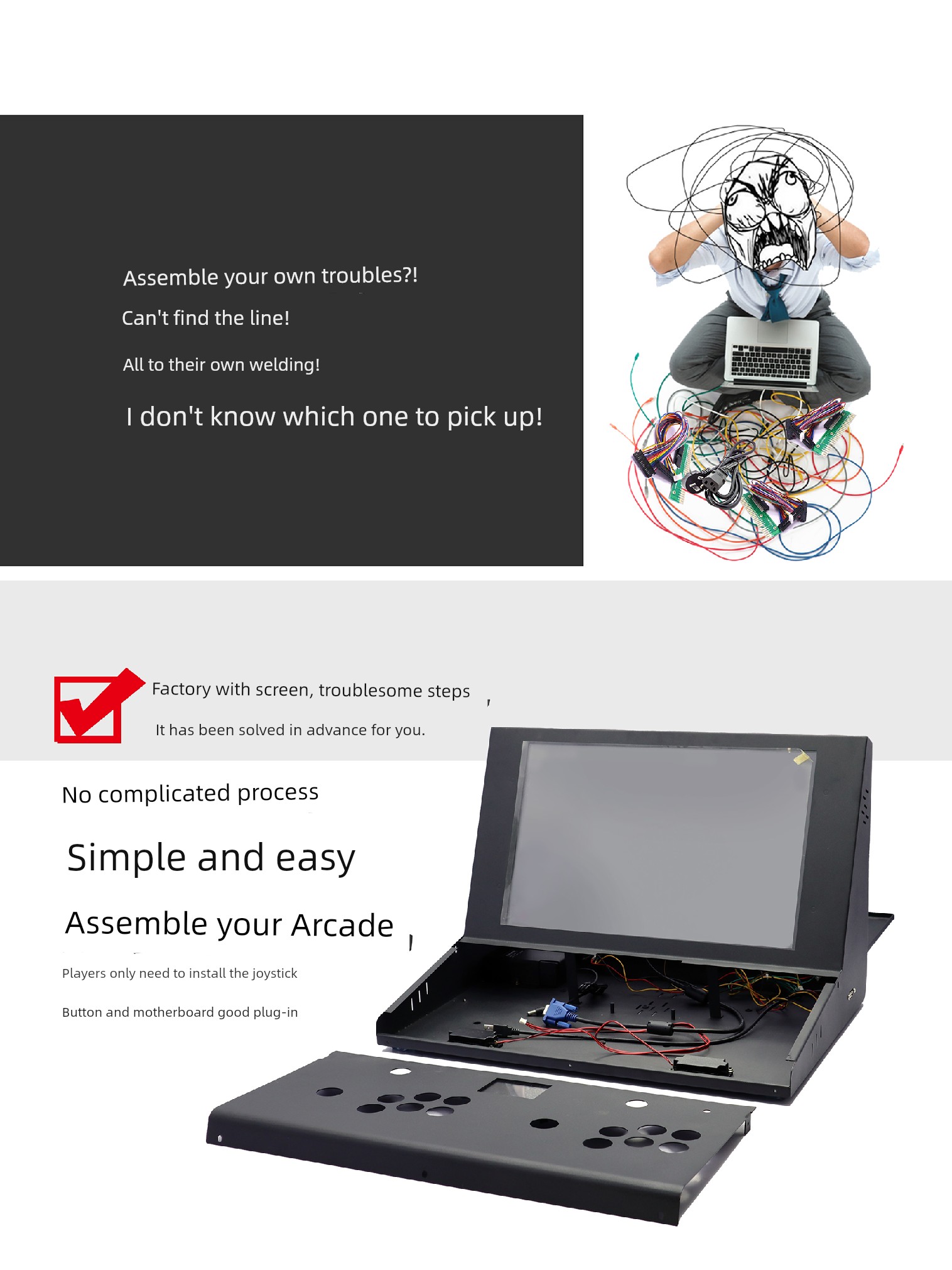 热卖DIY商用家用街机游戏机箱15寸屏19寸双人台式97格斗外壳摇杆框体