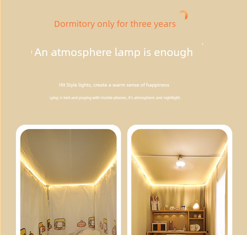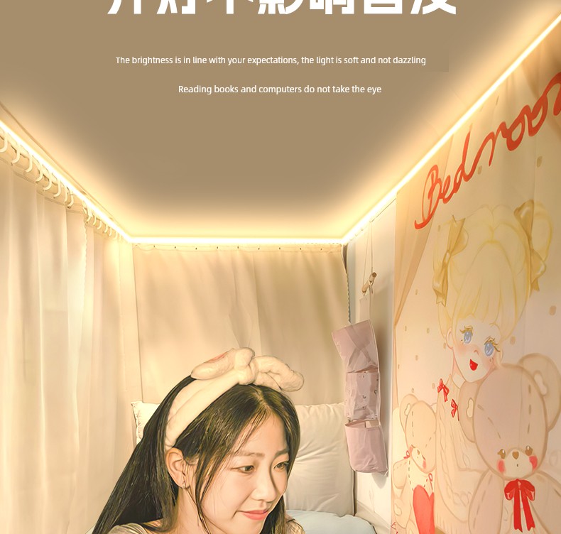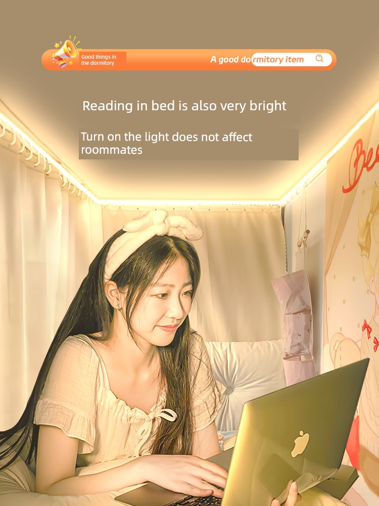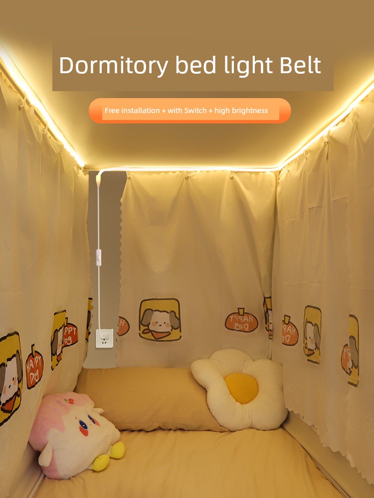 热卖宿舍床上灯带遮光床帘内用大学生上铺下铺蚊帐改造挂灯氛围小夜灯