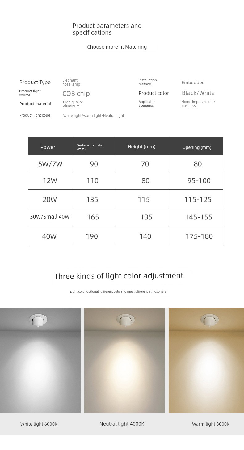 热卖象鼻灯led射灯嵌入式cob客厅北欧天花筒灯服装店铺商用聚光牛眼灯