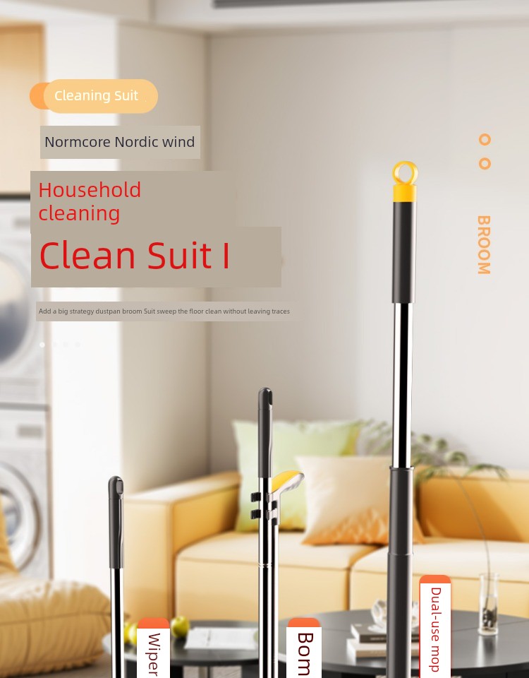 热卖拖把扫把三件套2025新款一拖刮水净组合笤帚家用折叠壁挂扫帚簸箕