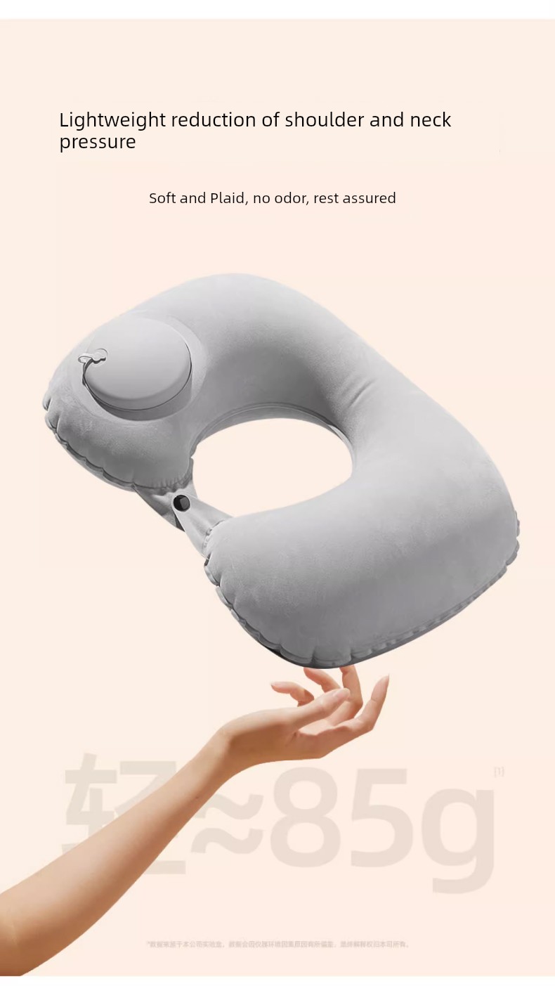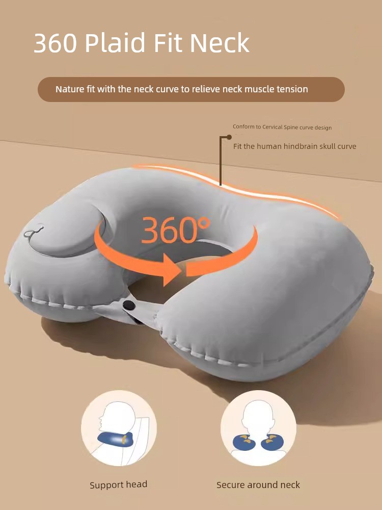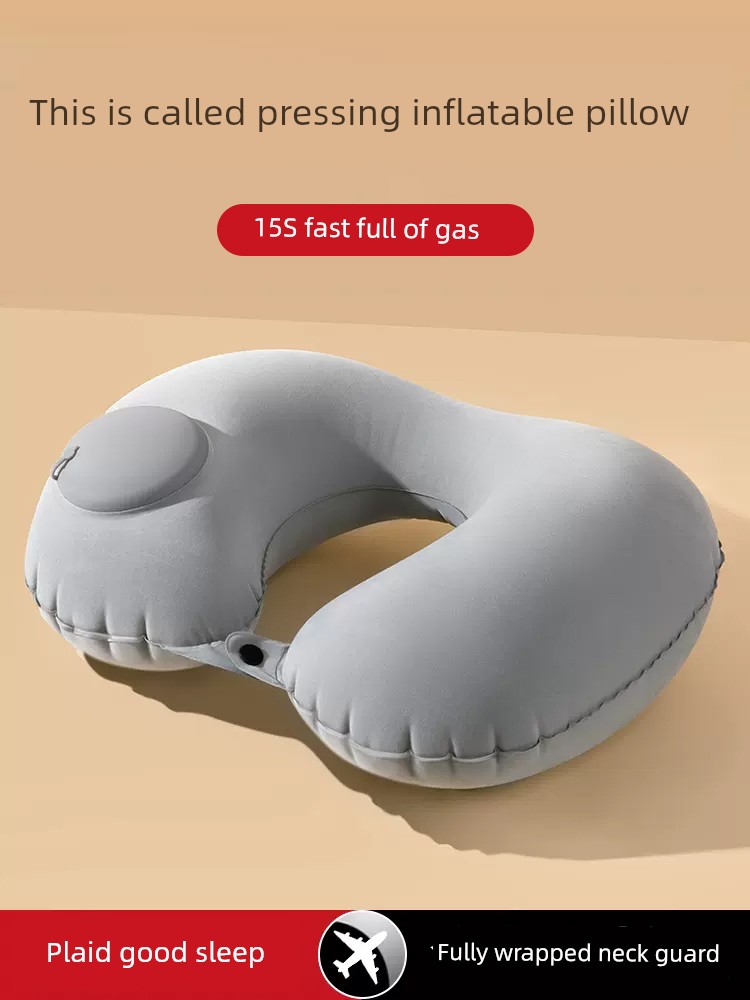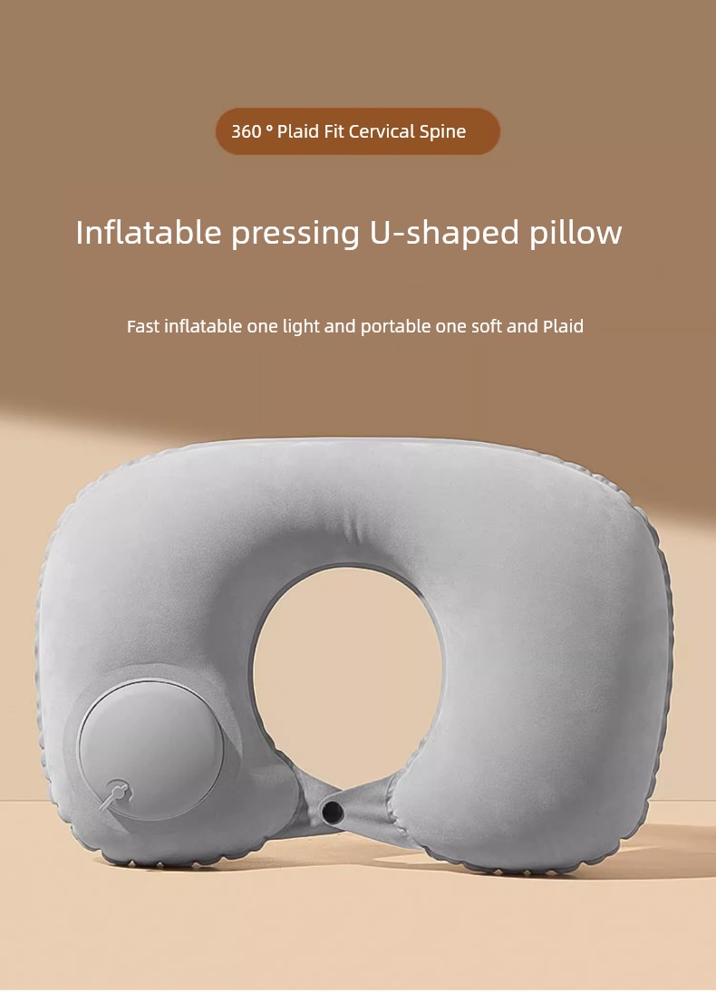 热卖充气u型枕按压睡觉颈枕冰丝凉感旅行坐飞机神器护颈枕便携折叠