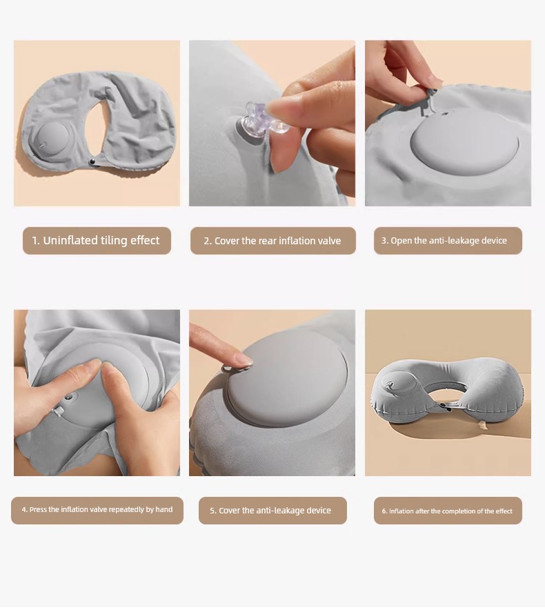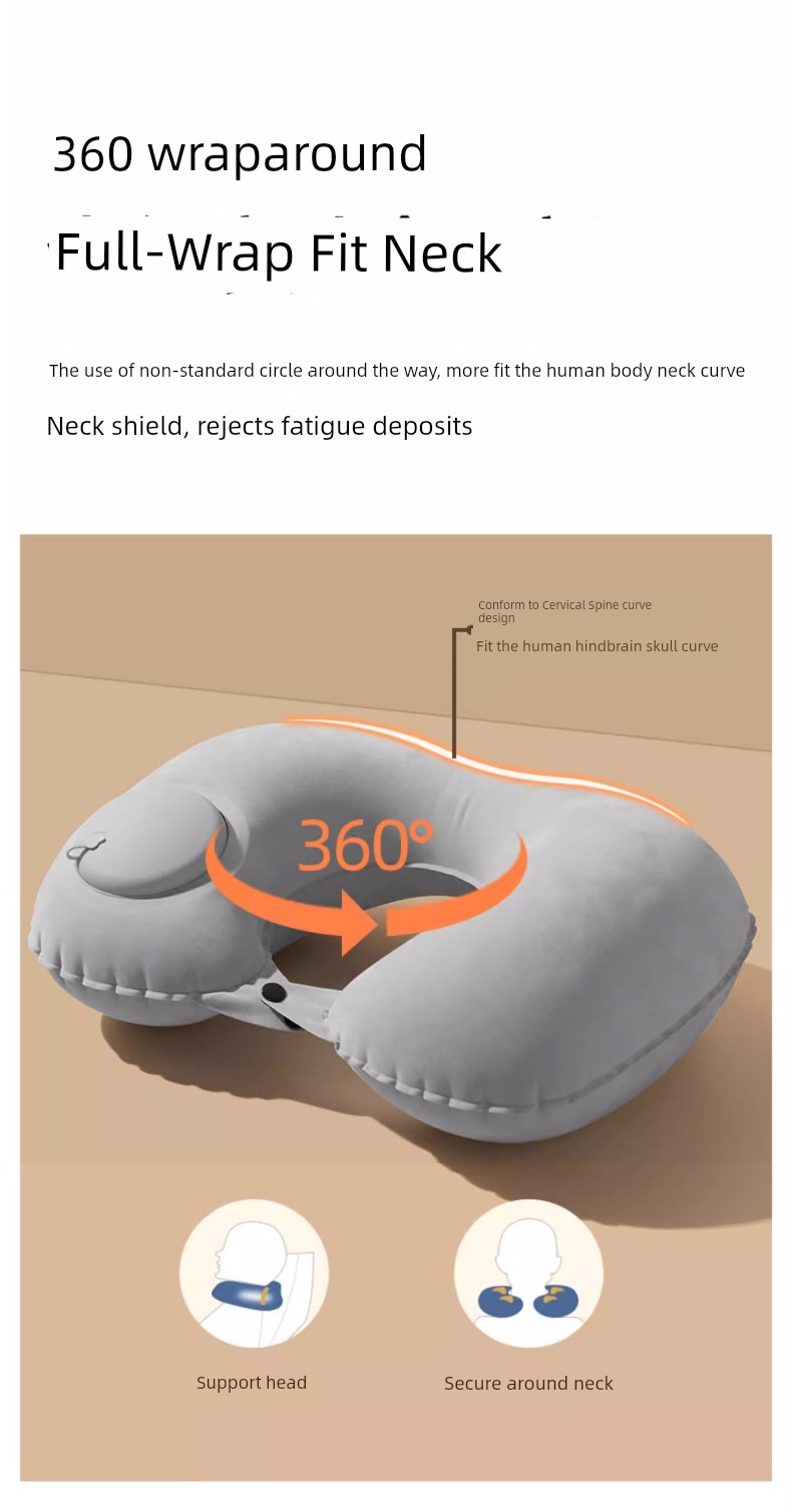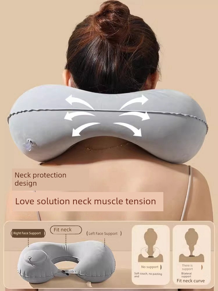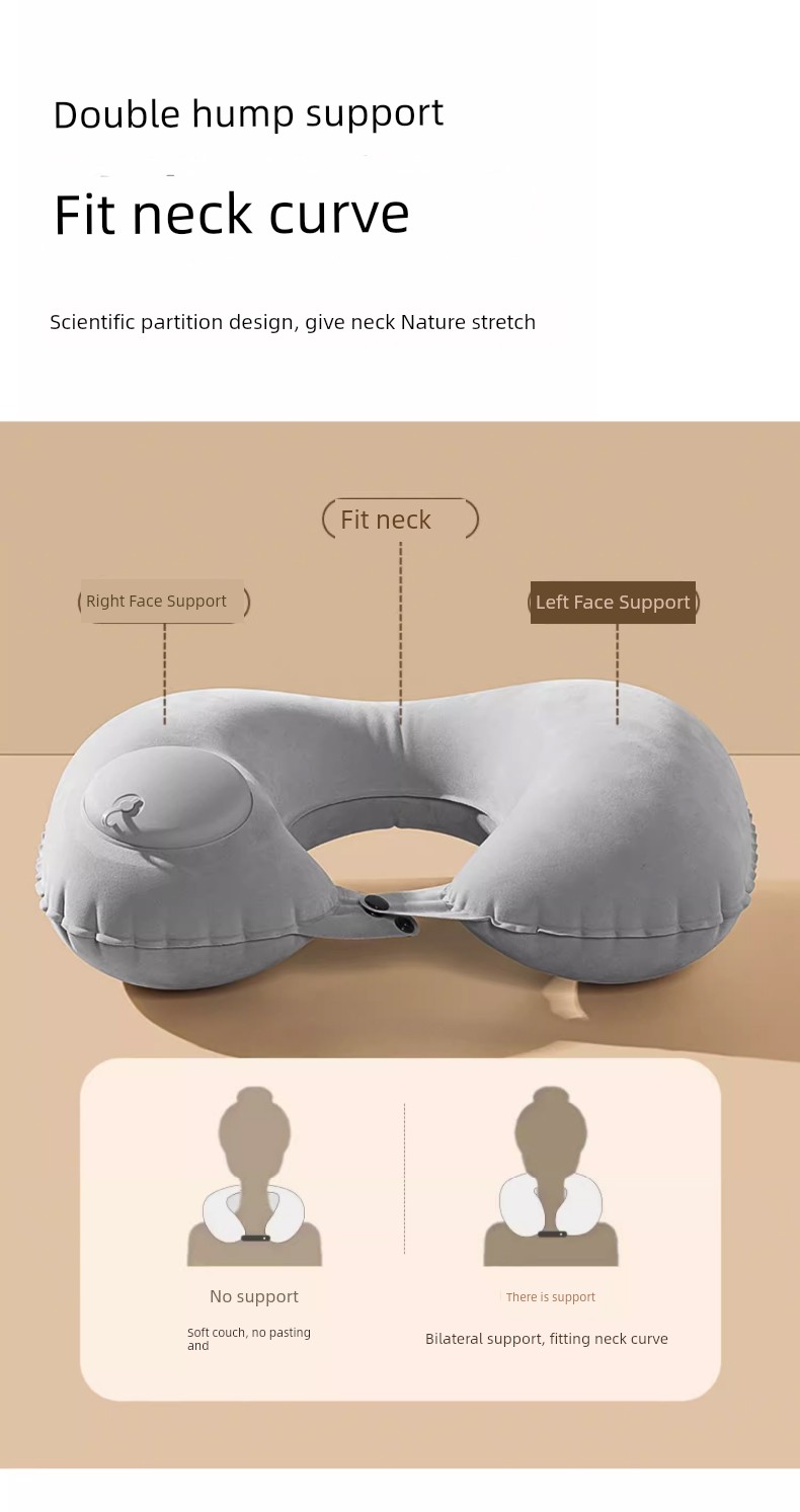 热卖充气u型枕按压睡觉颈枕冰丝凉感旅行坐飞机神器护颈枕便携折叠
