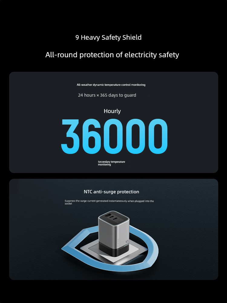 热卖CUKTECH酷态科10号超级电能充mini氮化镓笔记本电脑充电器120W快充100W氮化镓PD65W适用于苹果/小米/MacBook