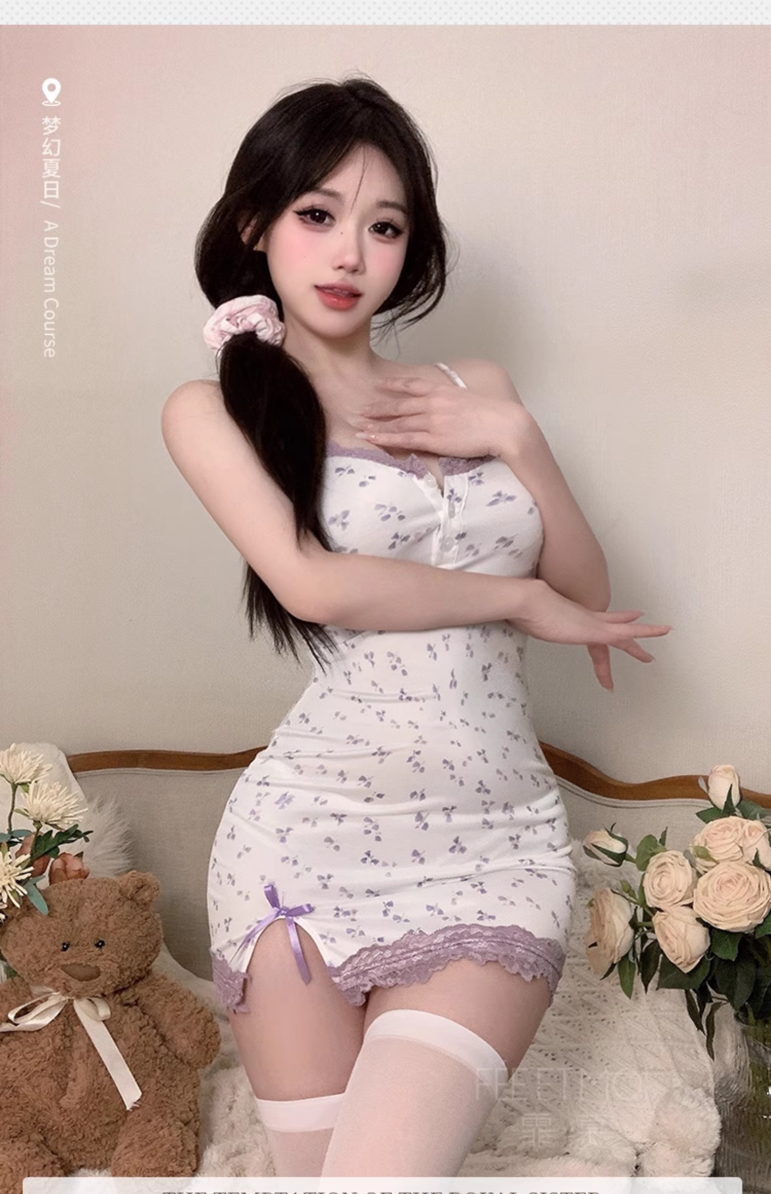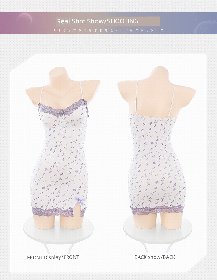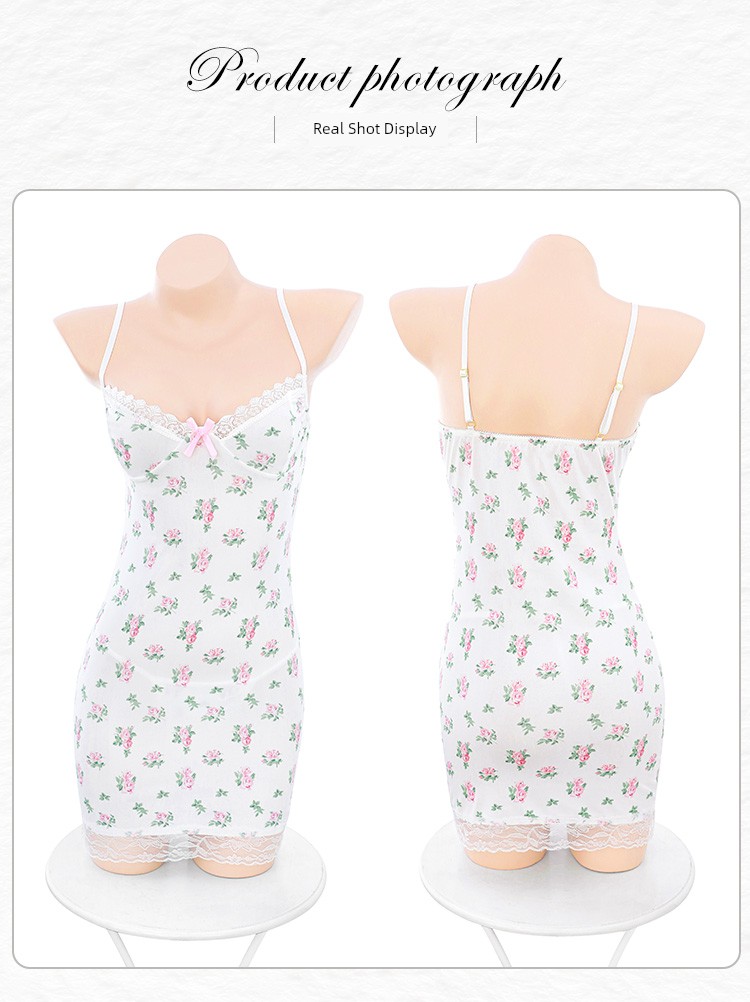 热卖霏慕纯欲碎花吊带裙性感睡衣紧身包臀可爱情趣内衣战袍激情诱惑女