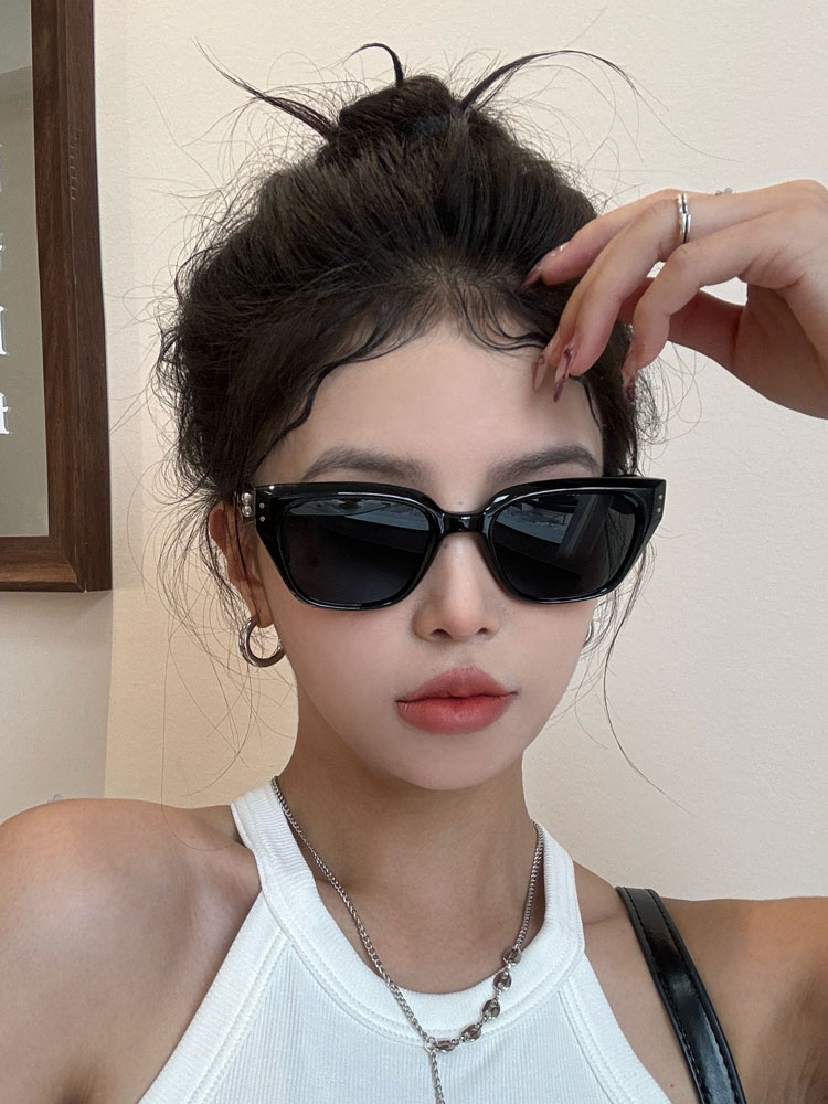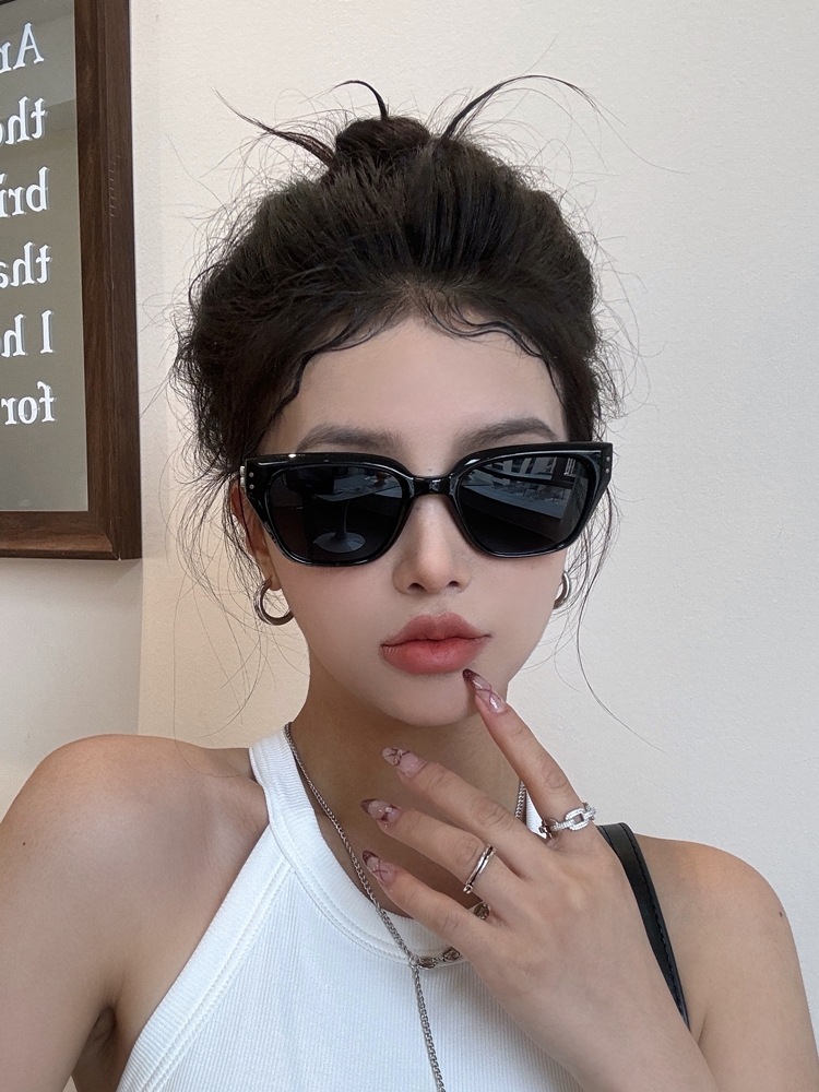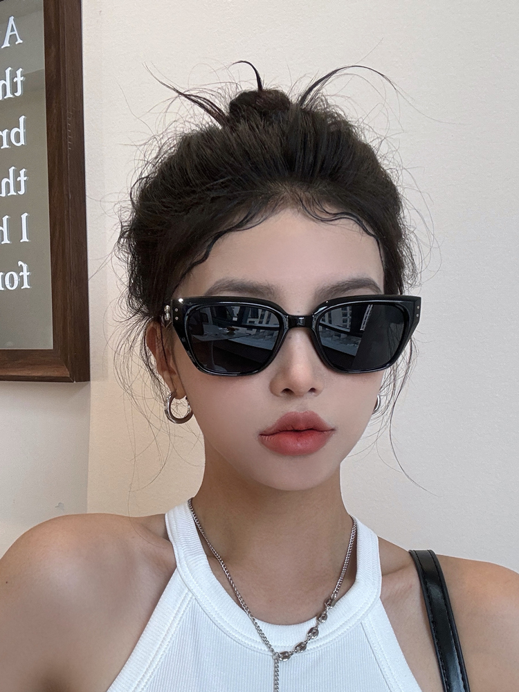 热卖猫眼墨镜女款高级感显脸小2025新款方圆脸黑色复古欧美风太阳眼镜
