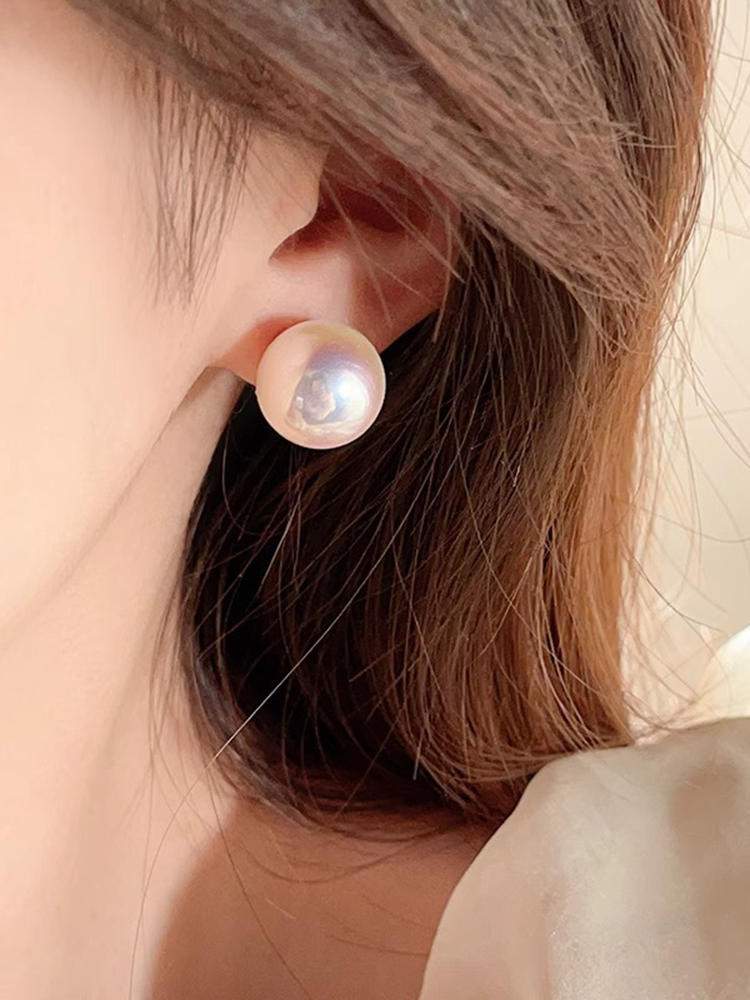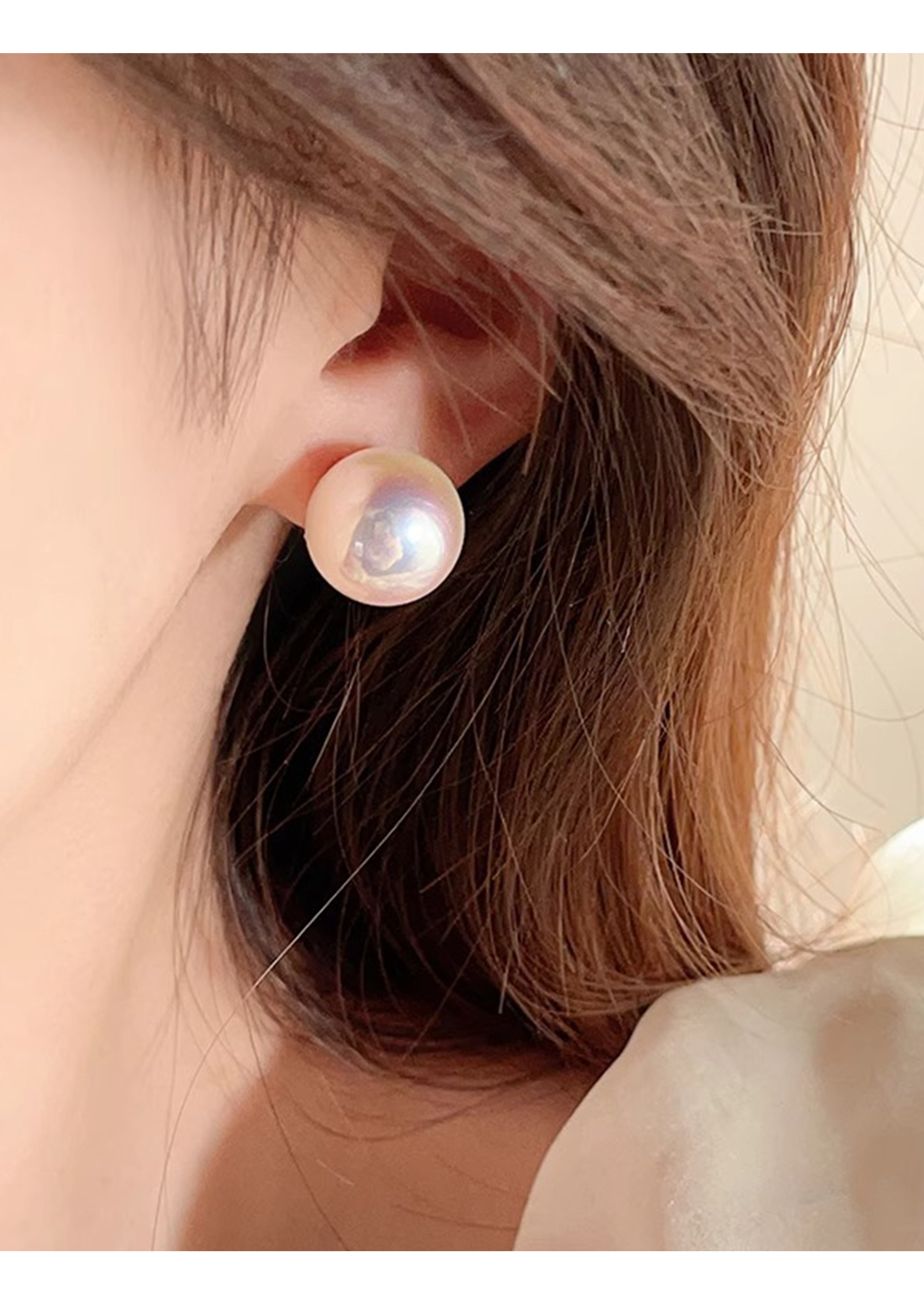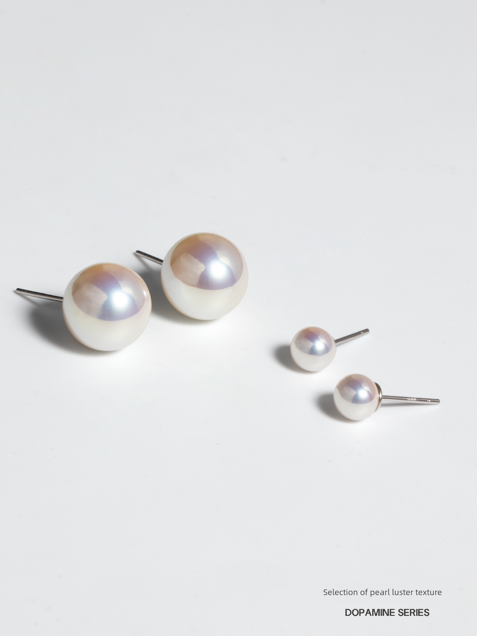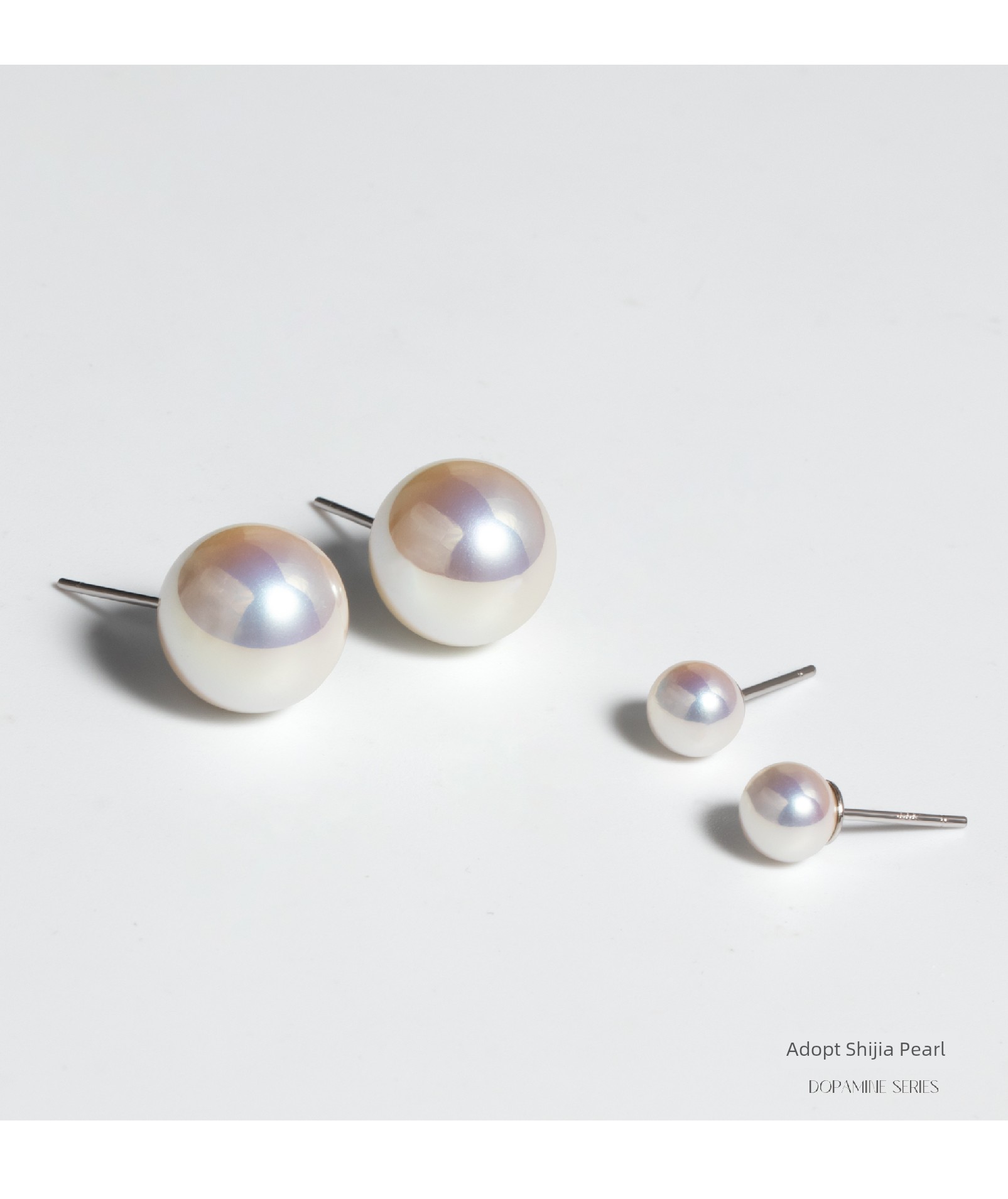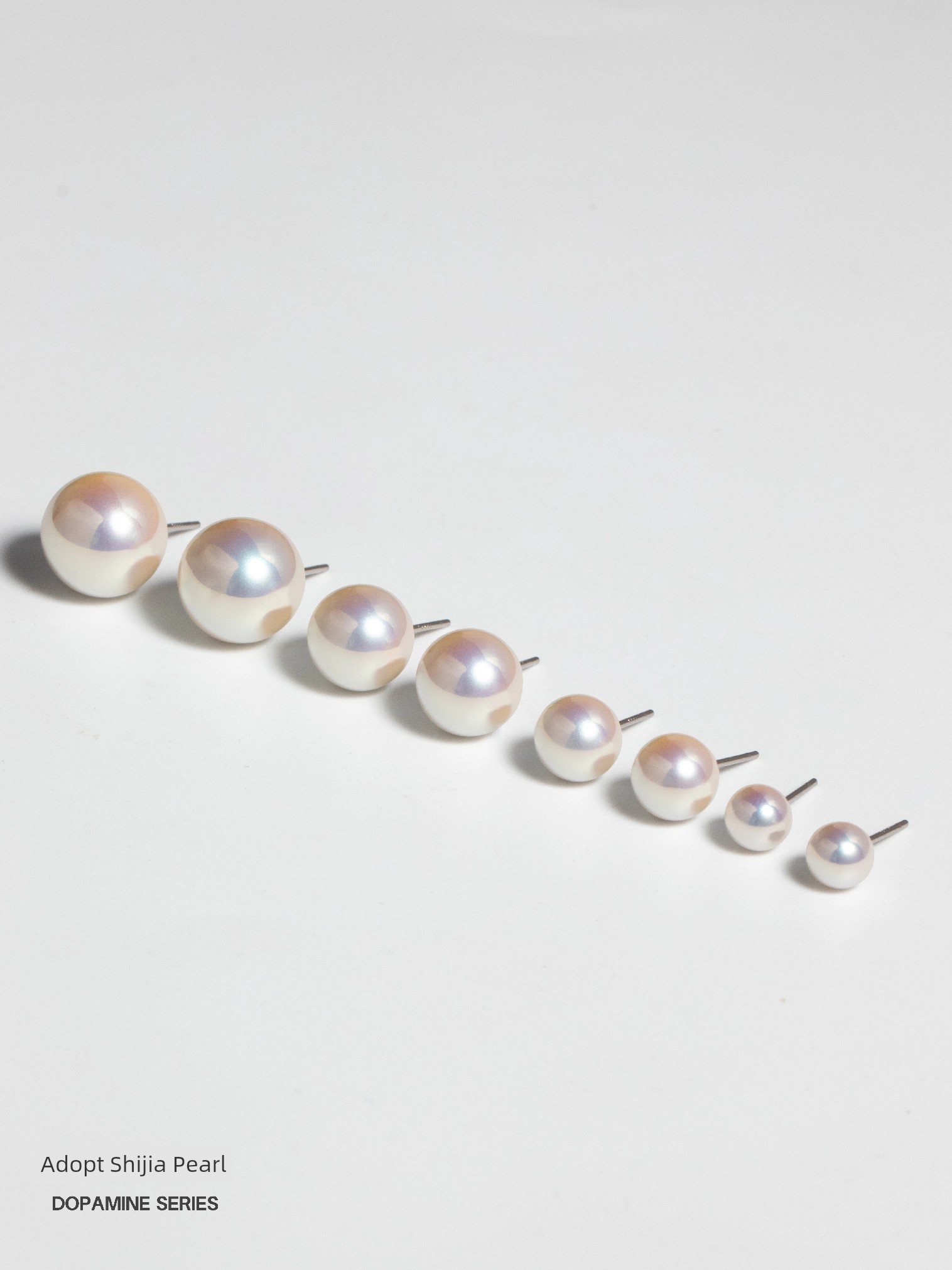 热卖日本进口Akoya施家极光珍珠S999足银耳钉耳环正圆耳饰养耳洞银针