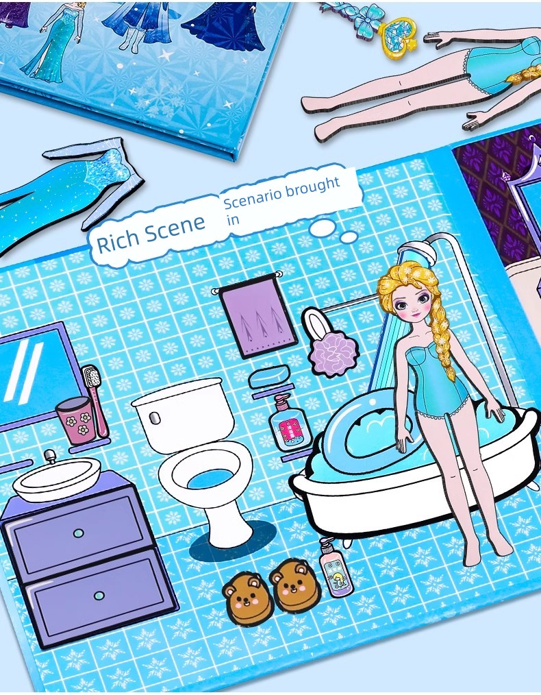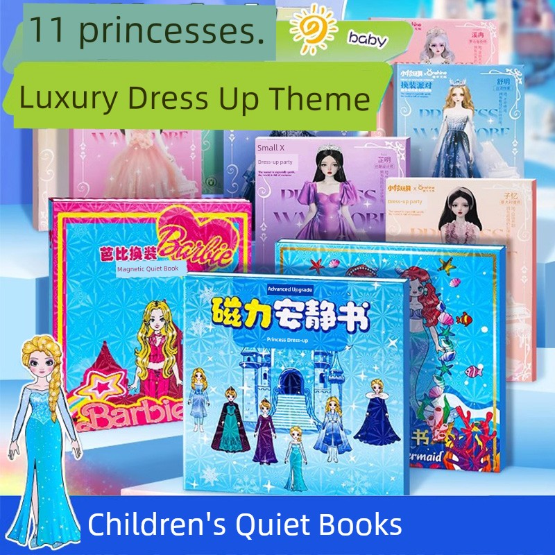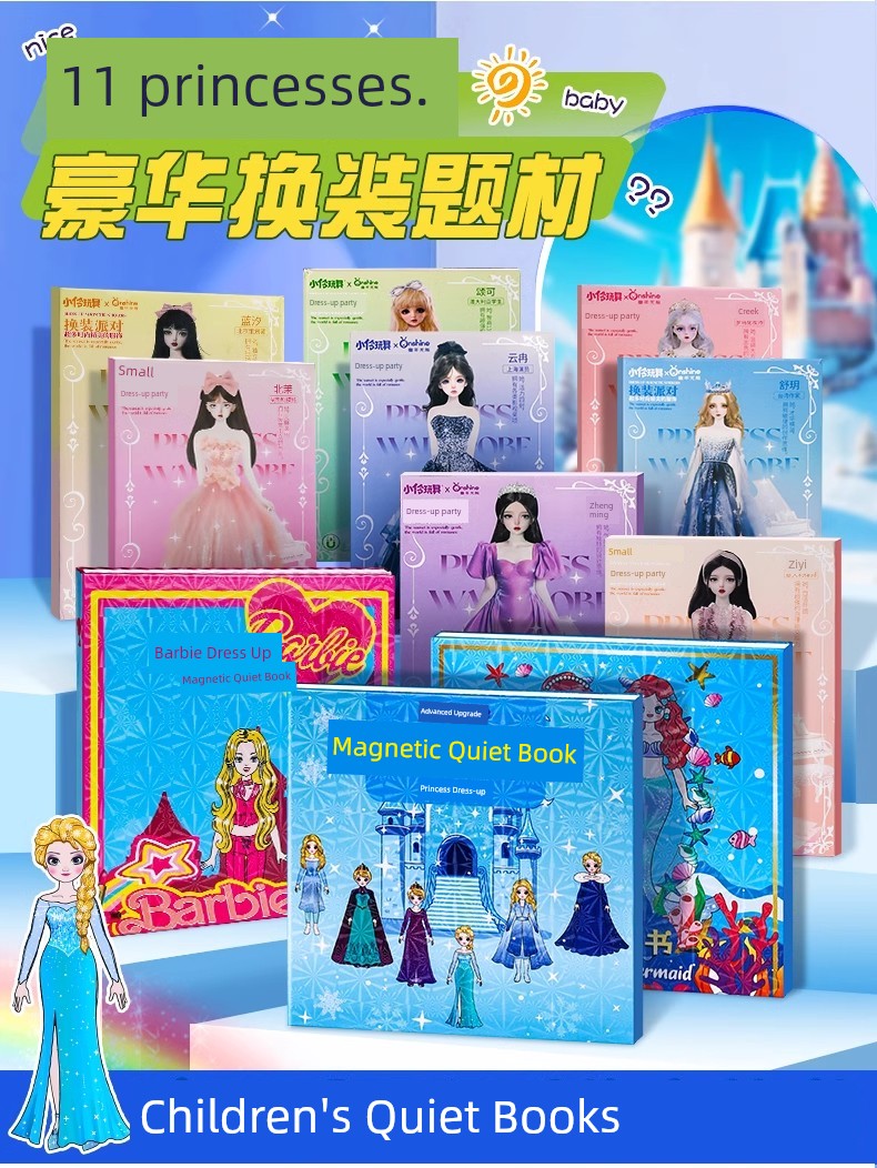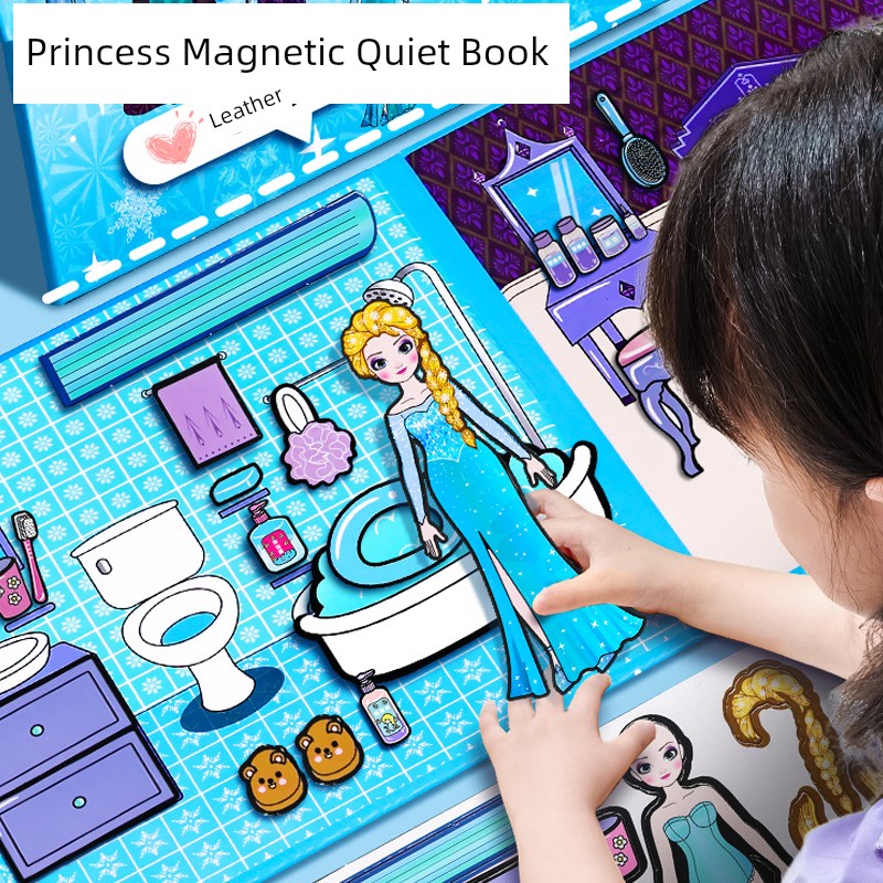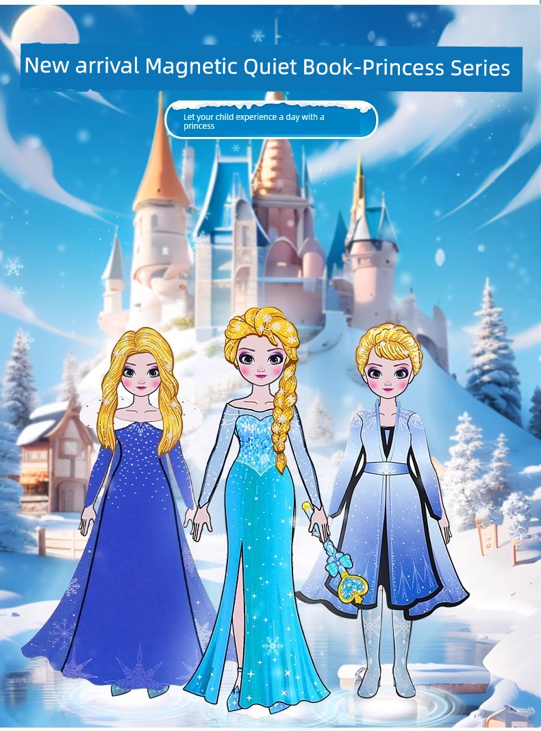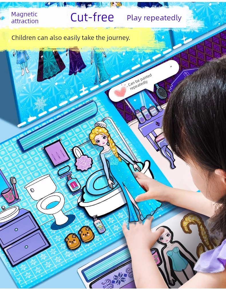 热卖爱莎艾莎公主换装磁吸安静书新款女孩磁力贴大本免裁剪磁铁玩具