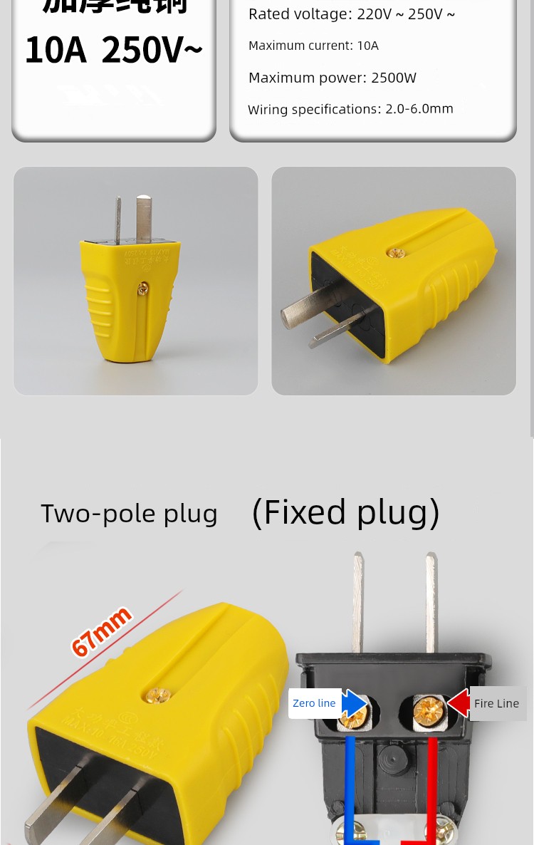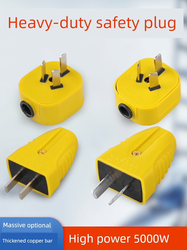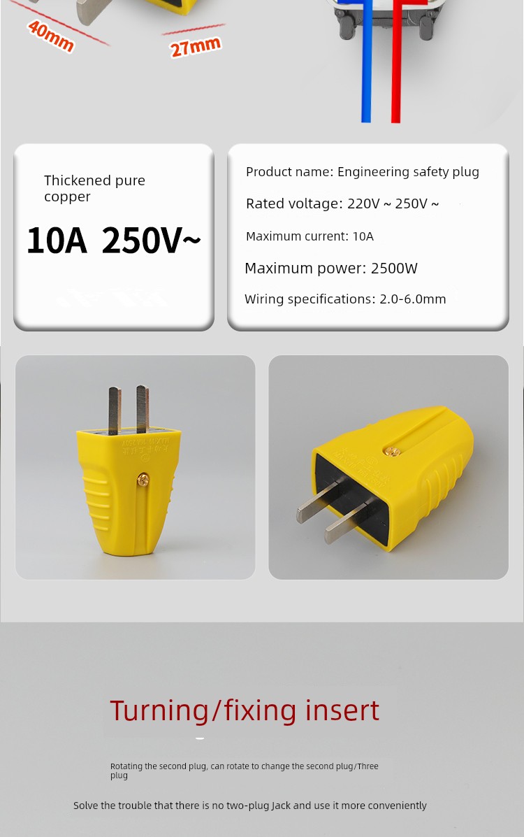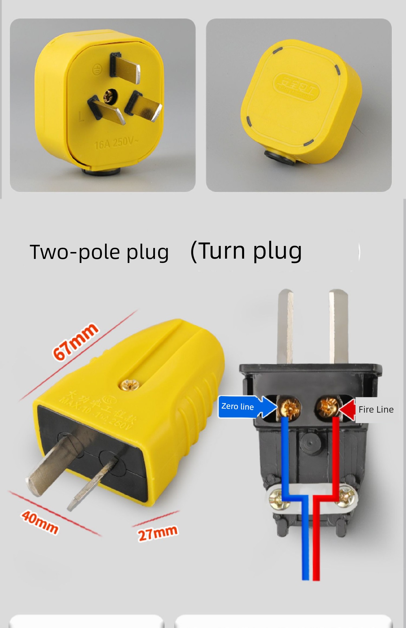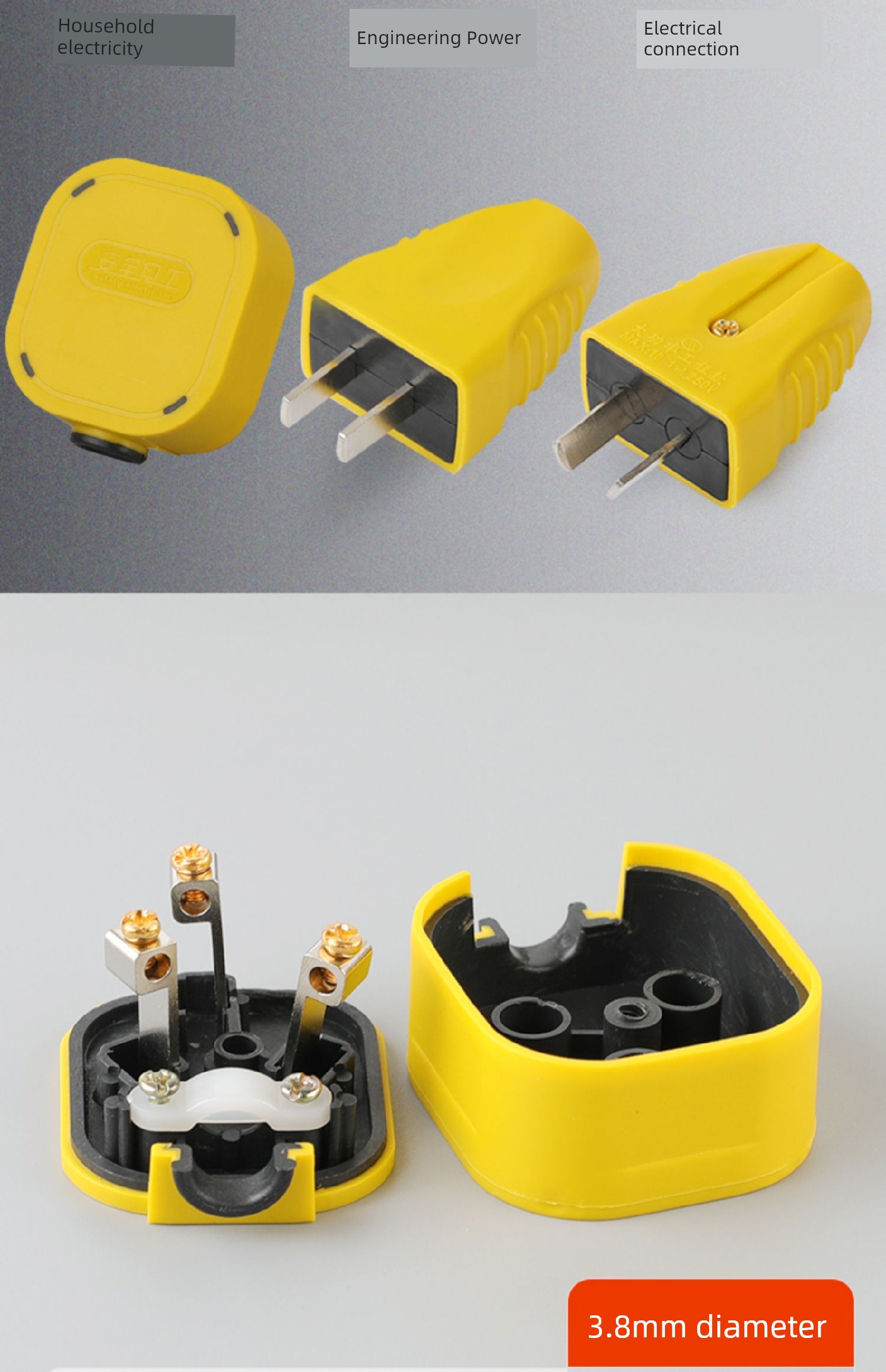 热卖防摔不烂插头纯铜加厚二三脚不带线2极10A插头工地自接线旋转插削