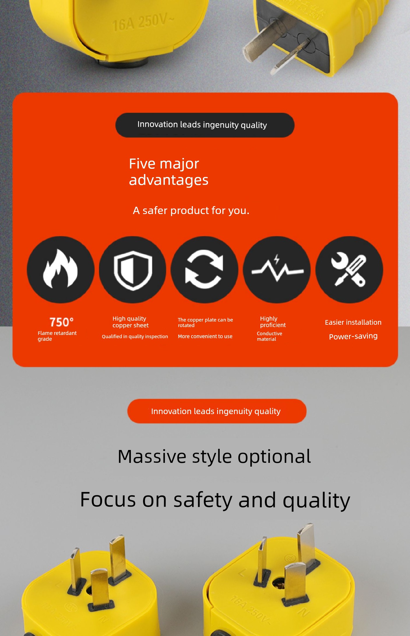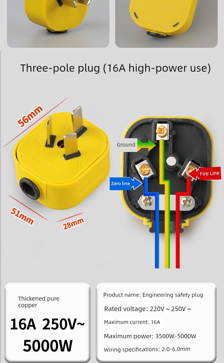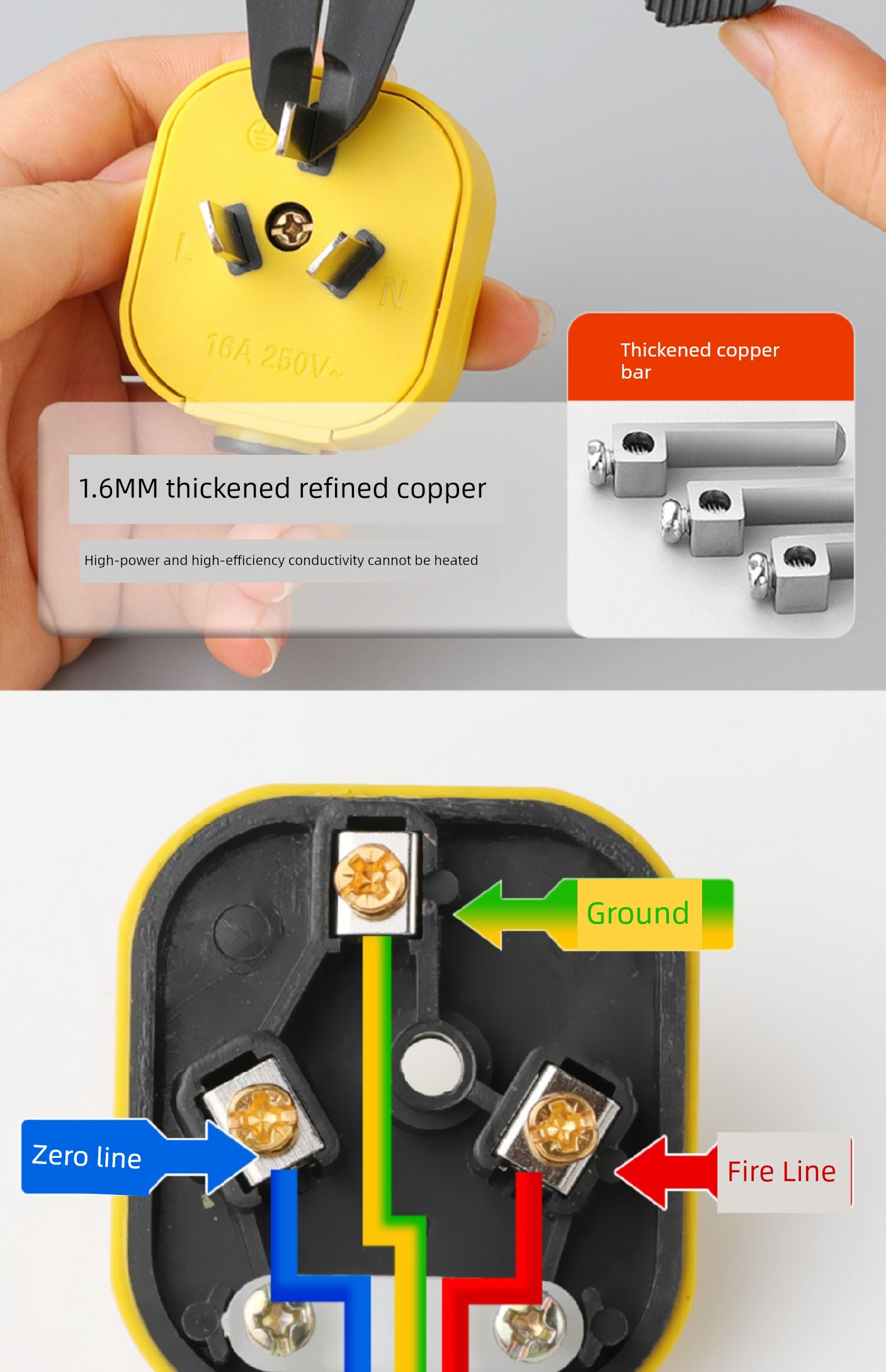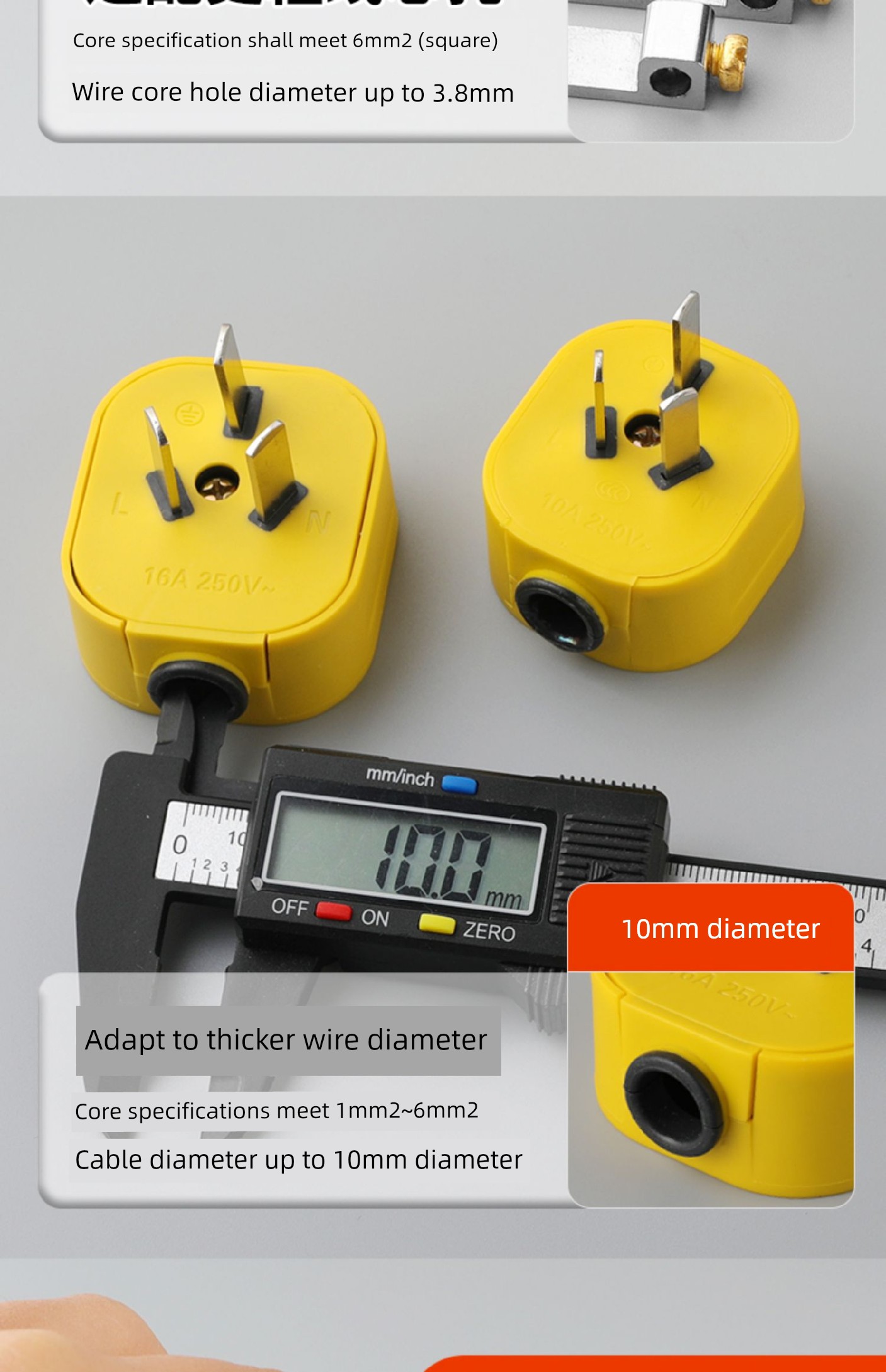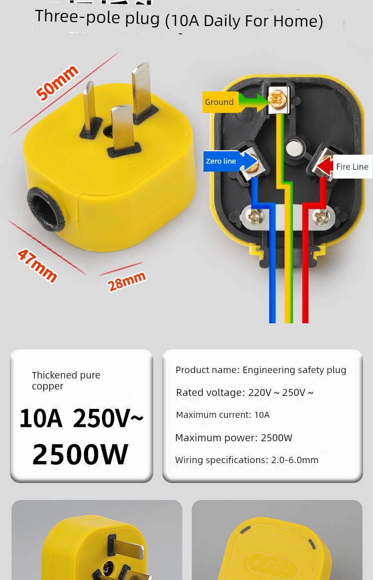 热卖防摔不烂插头纯铜加厚二三脚不带线2极10A插头工地自接线旋转插削