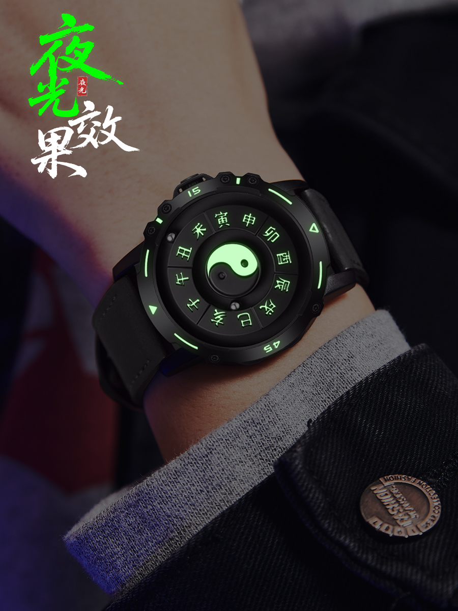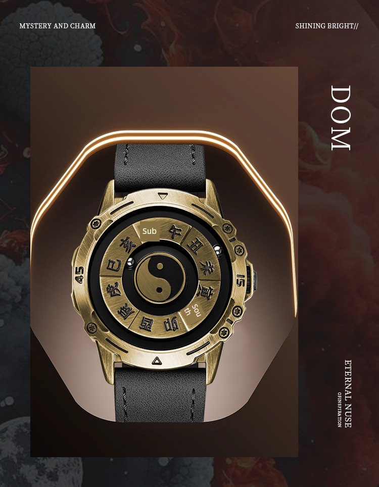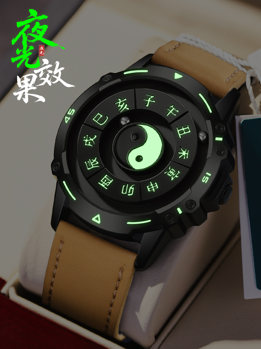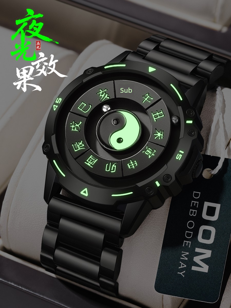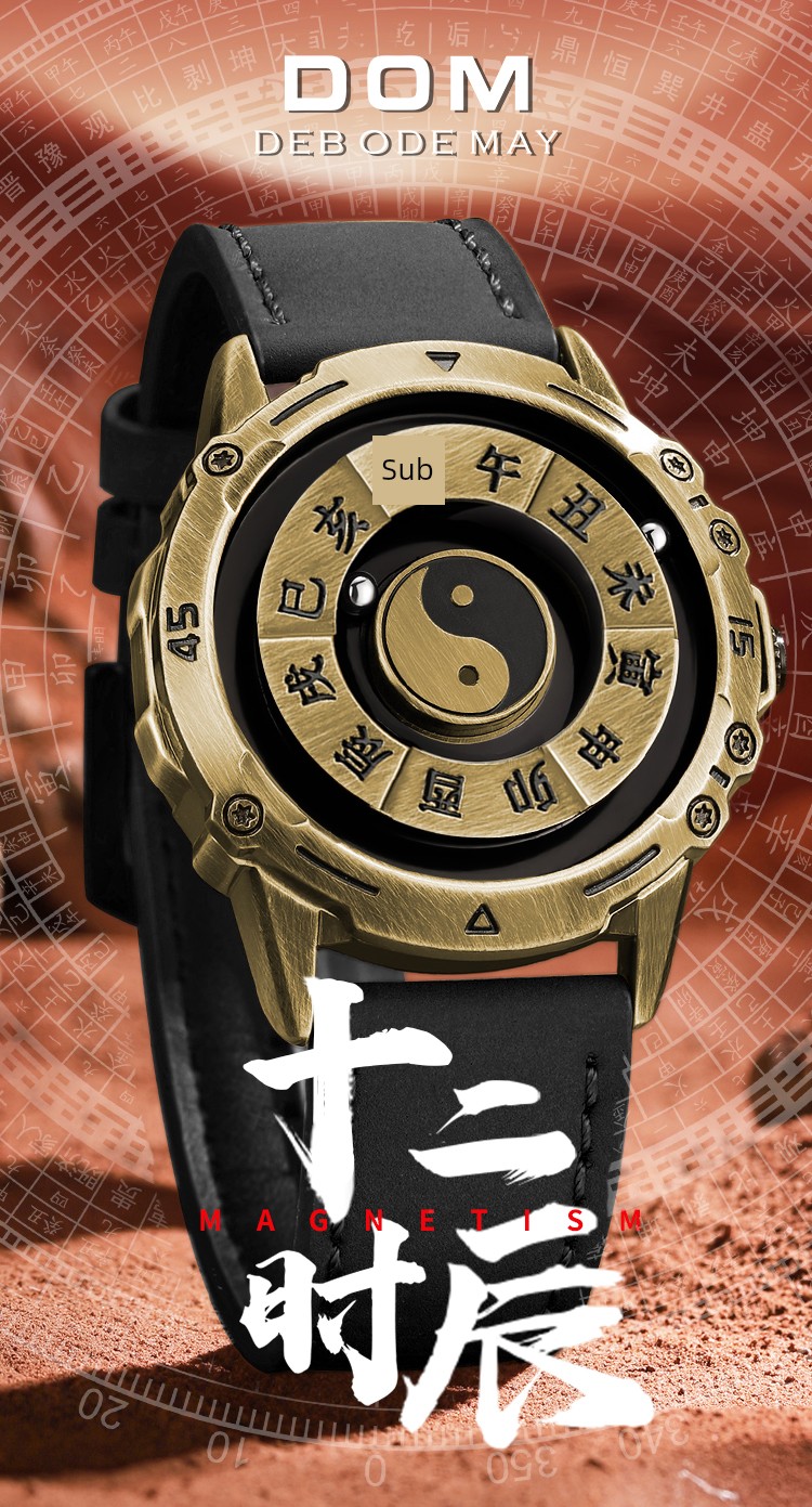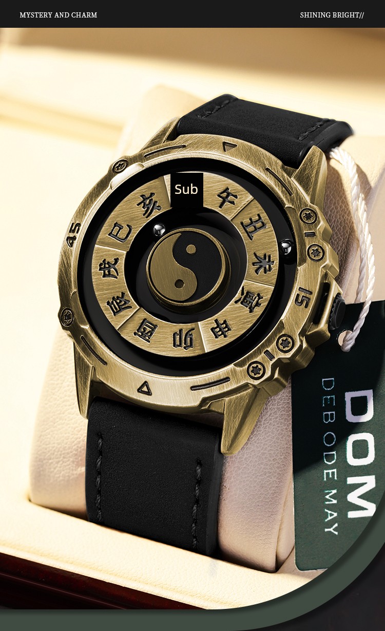 热卖DOM国风潮磁悬浮男士手表机械表十二时辰太极八卦黑科技男款腕表