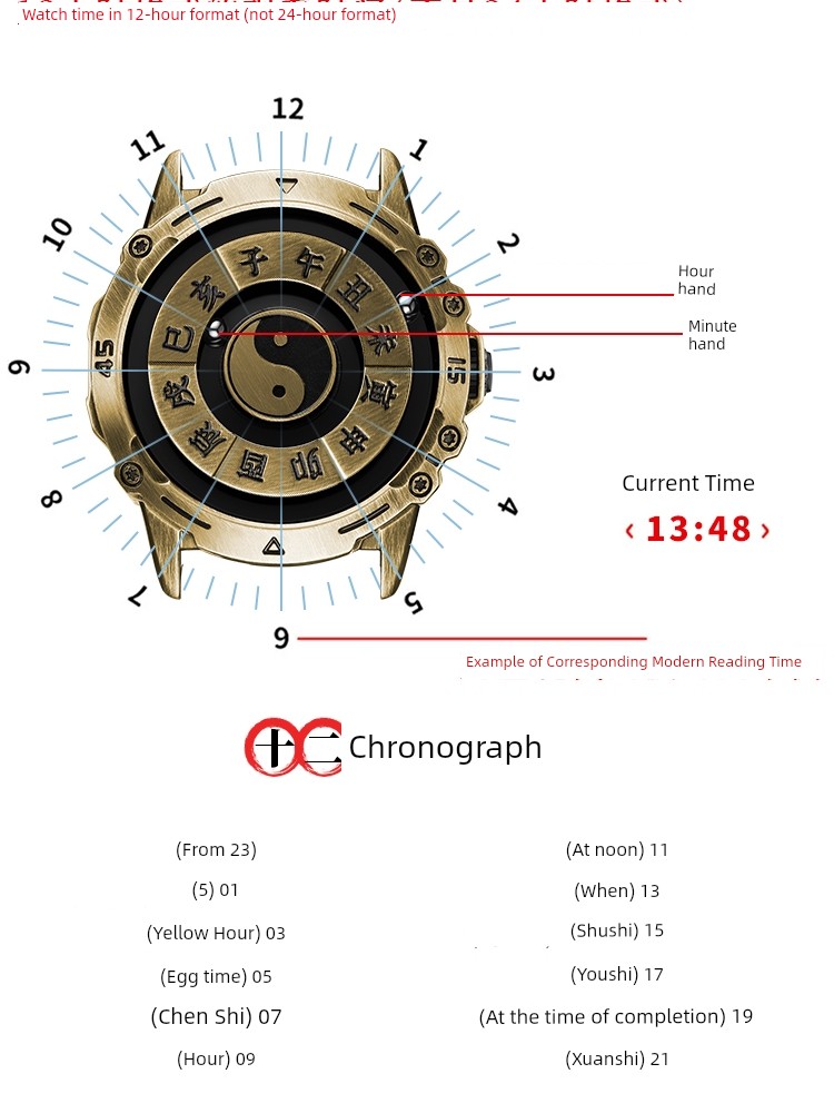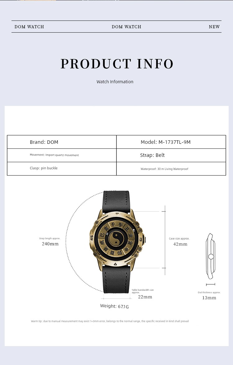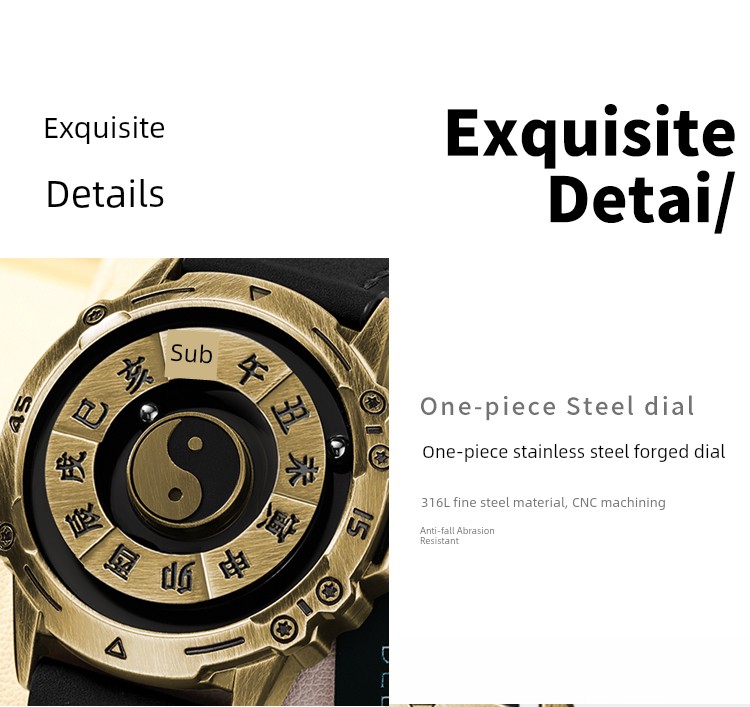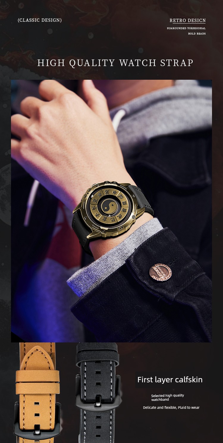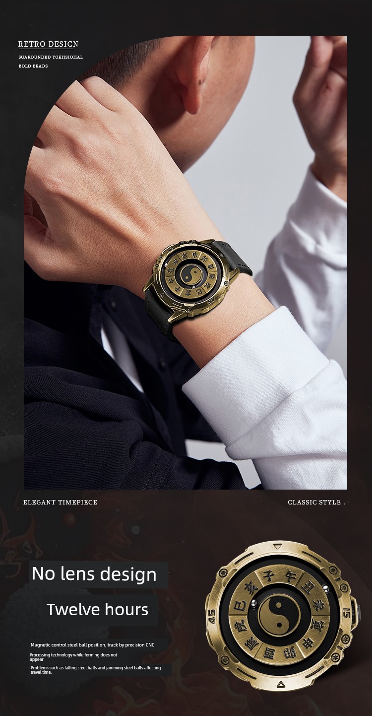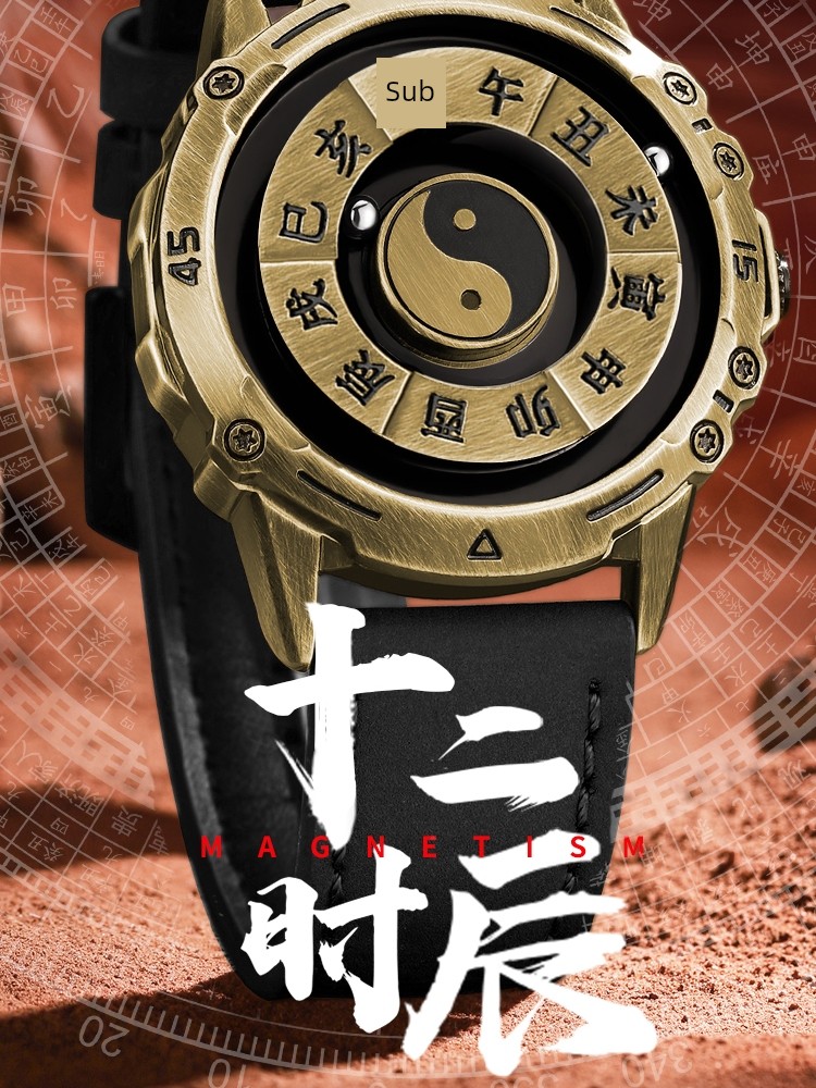 热卖DOM国风潮磁悬浮男士手表机械表十二时辰太极八卦黑科技男款腕表