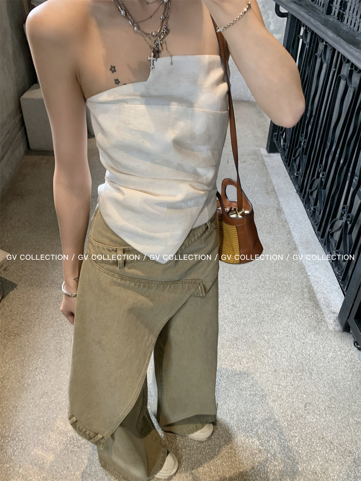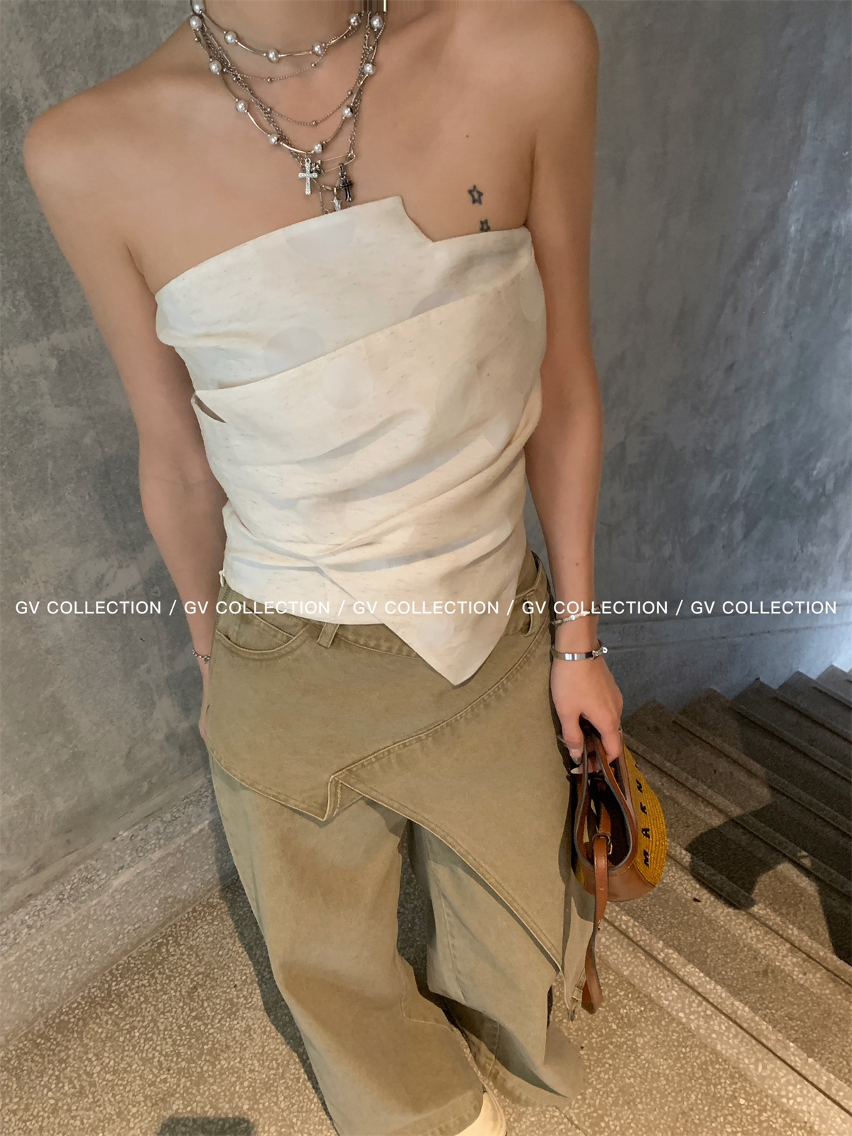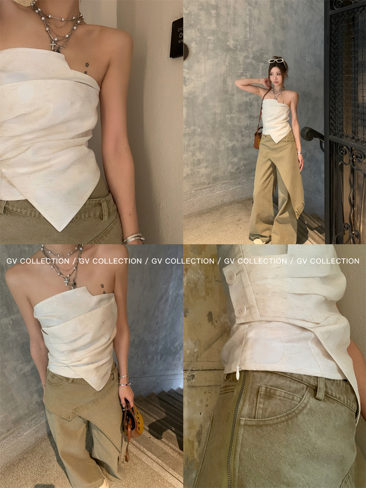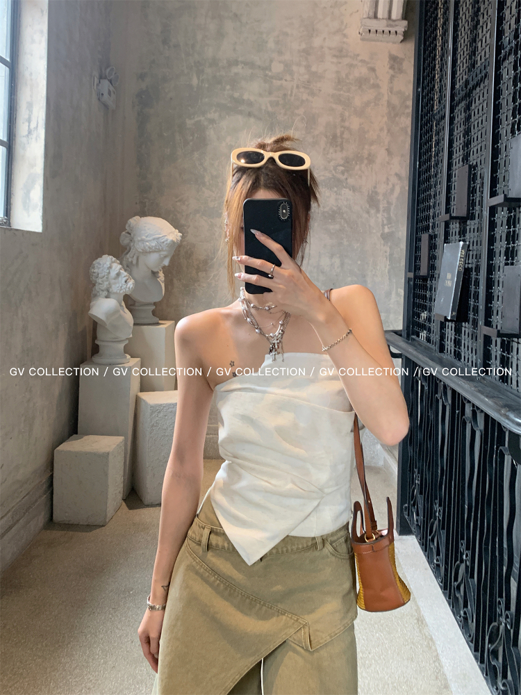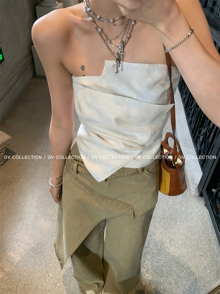 热卖GV大白哥 designer私服 设计感双层立体结构不规则抹胸一字上衣女