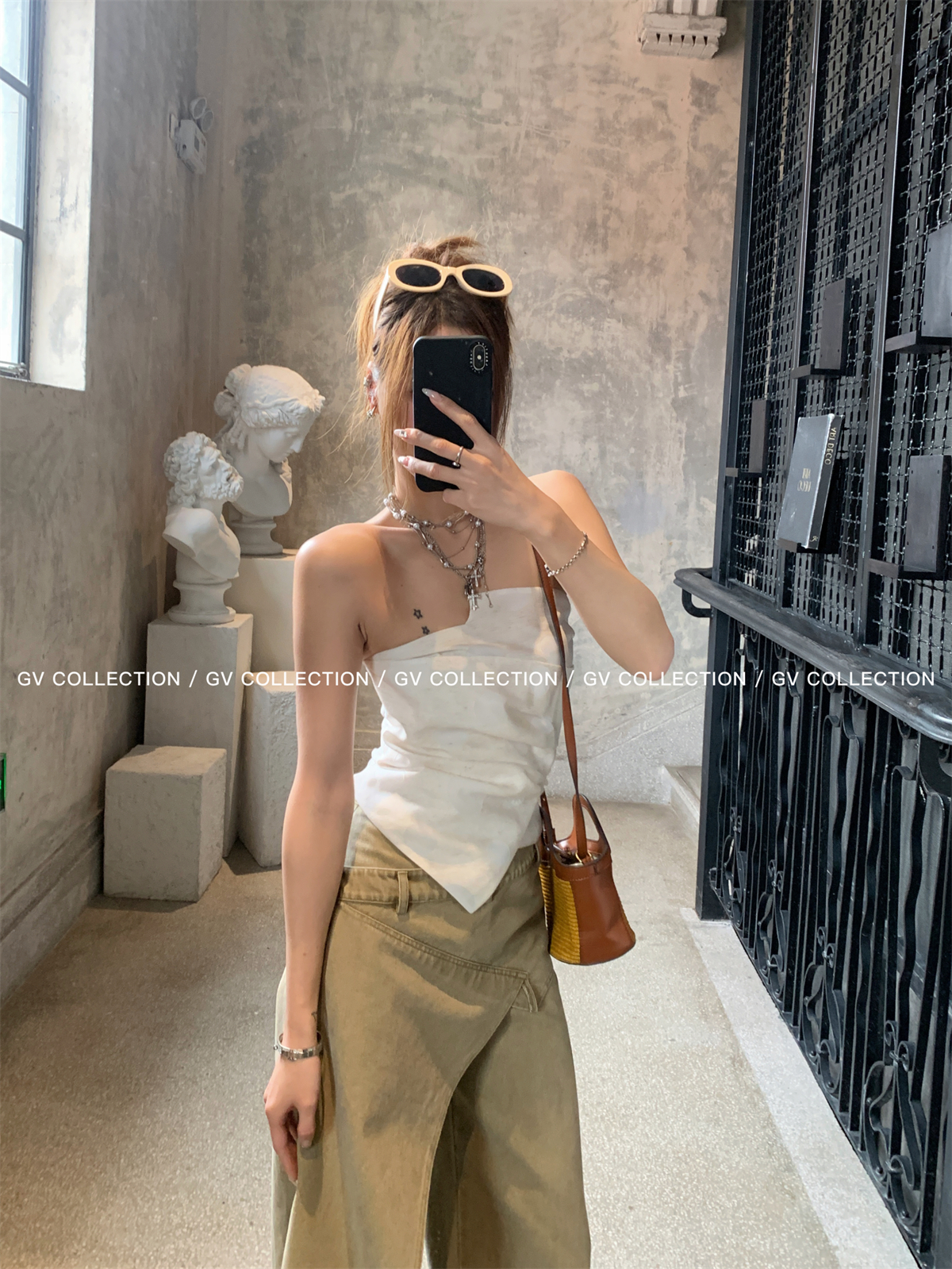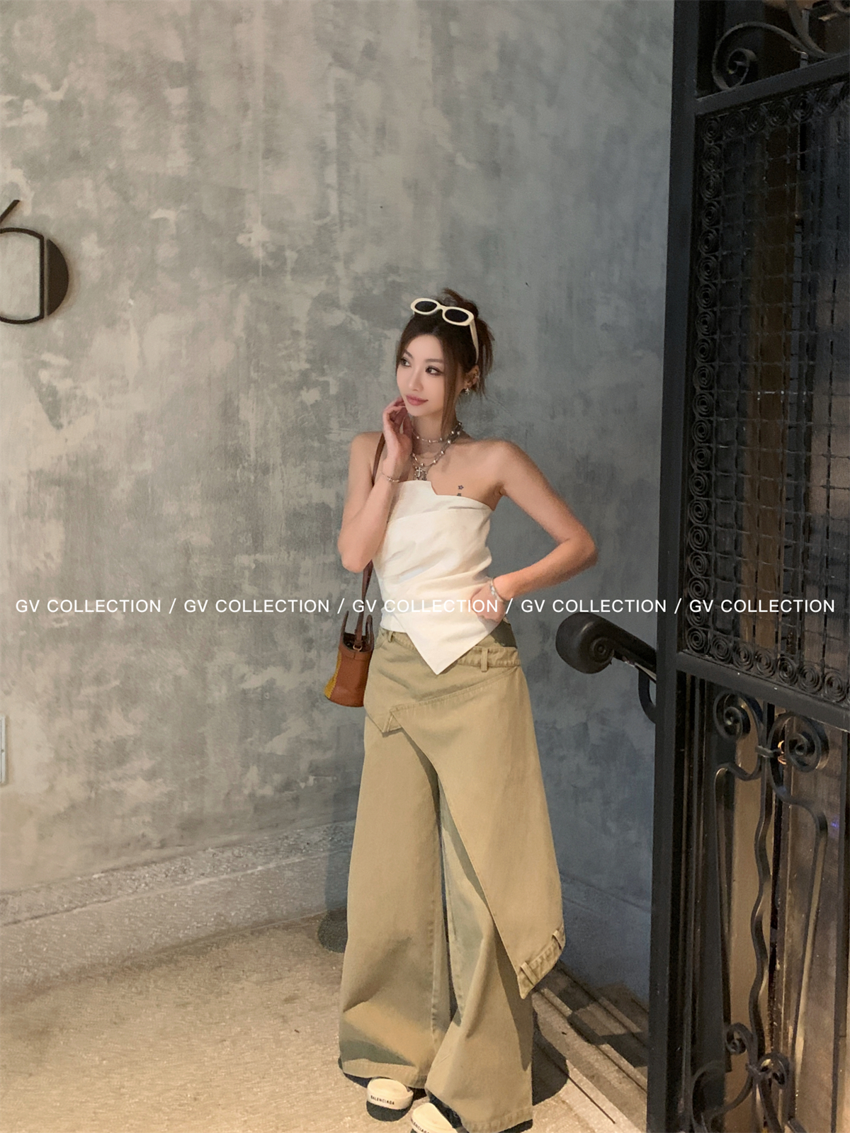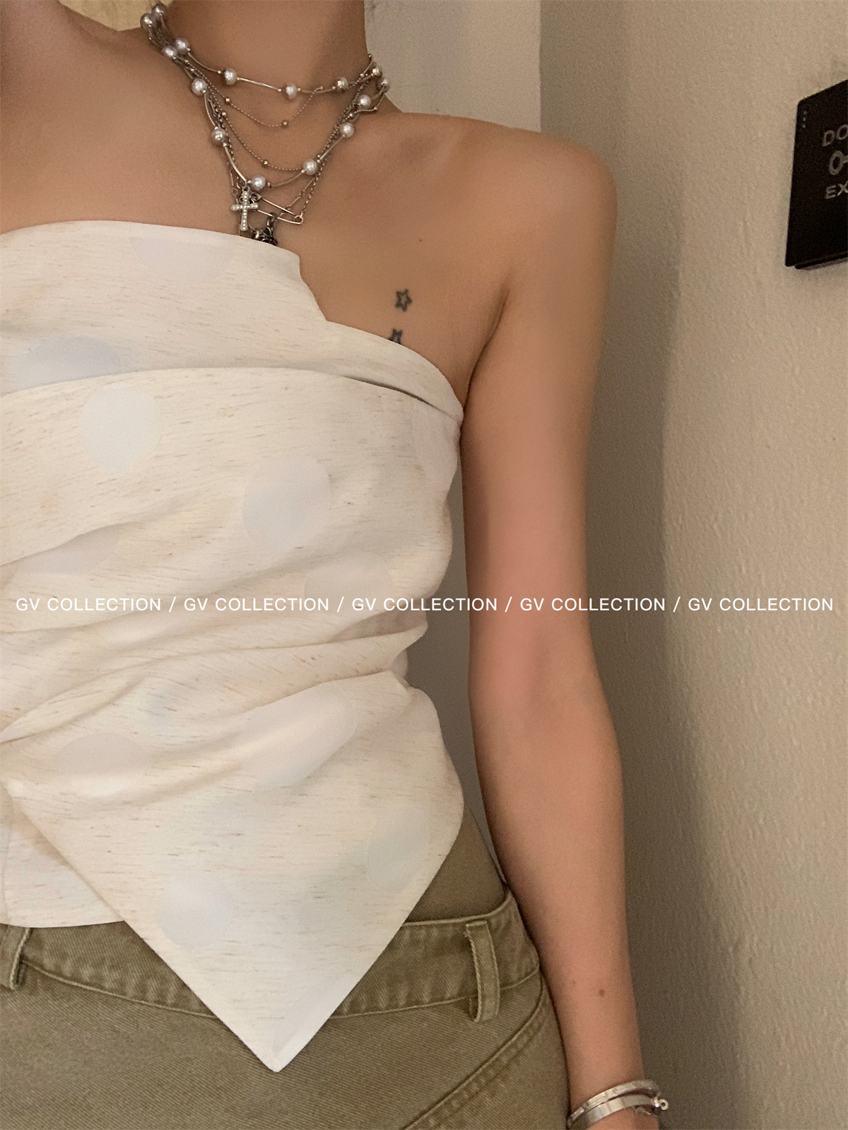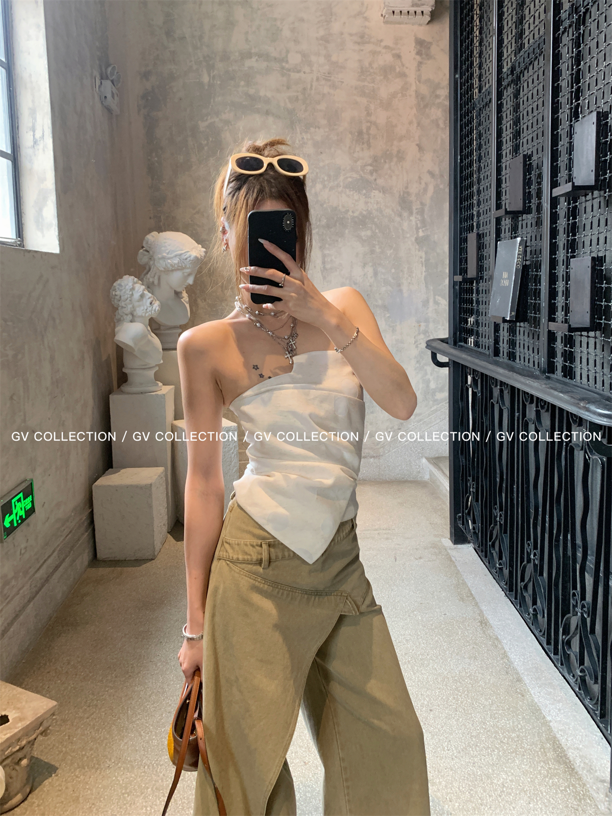 热卖GV大白哥 designer私服 设计感双层立体结构不规则抹胸一字上衣女
