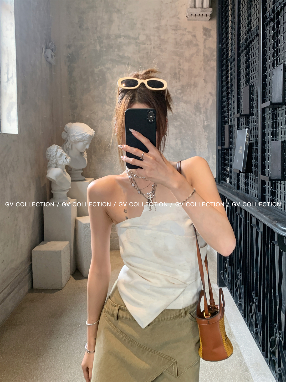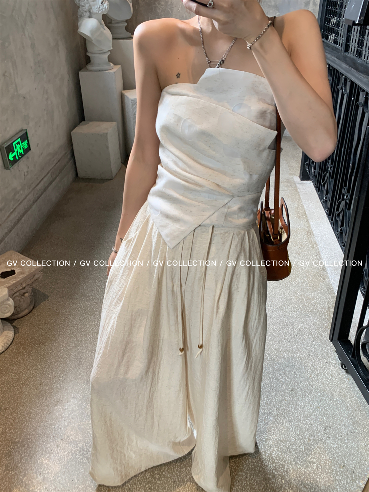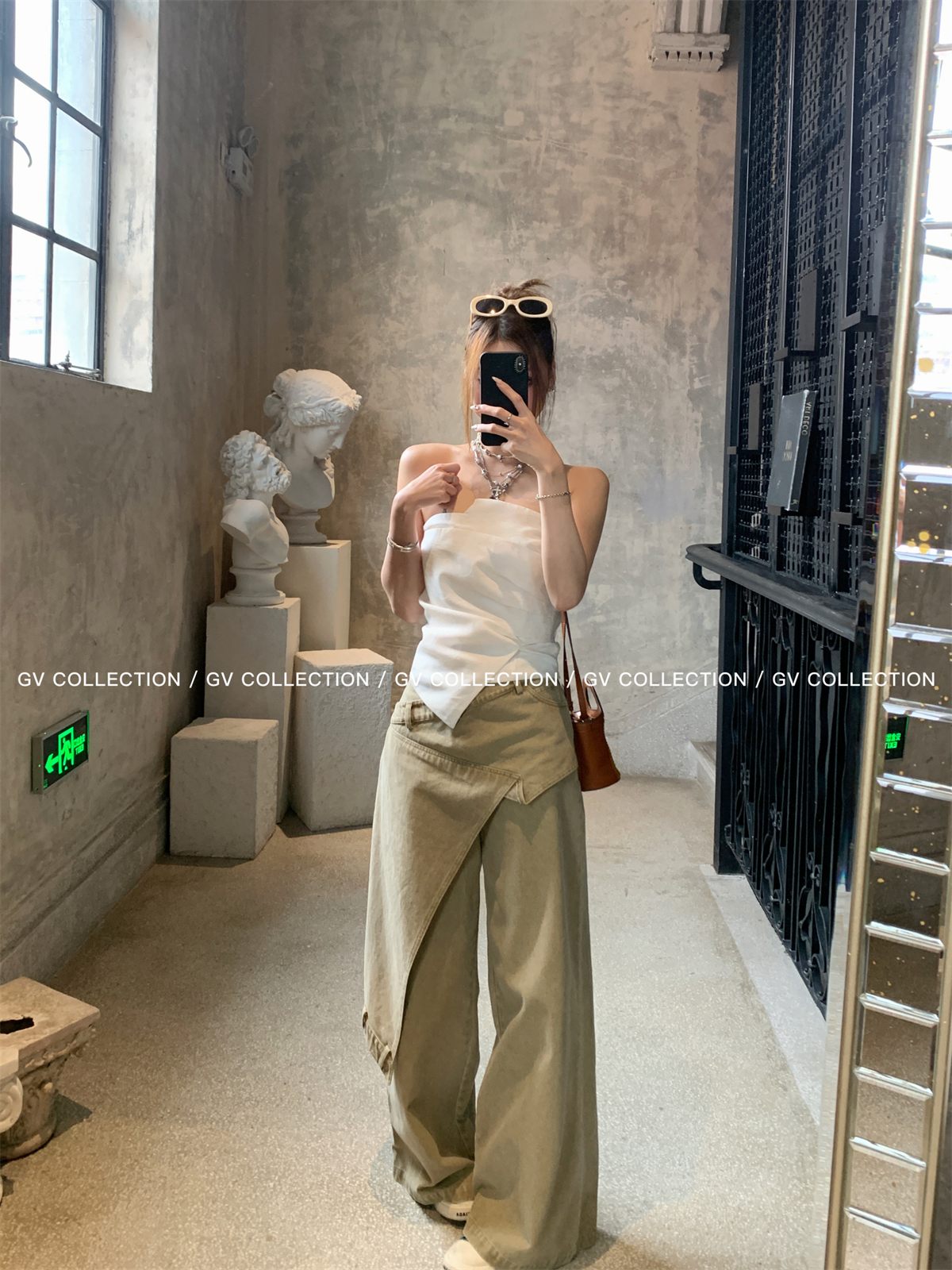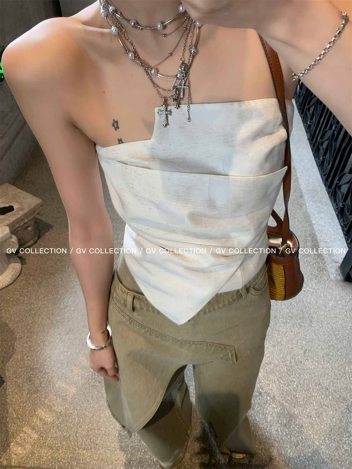 热卖GV大白哥 designer私服 设计感双层立体结构不规则抹胸一字上衣女