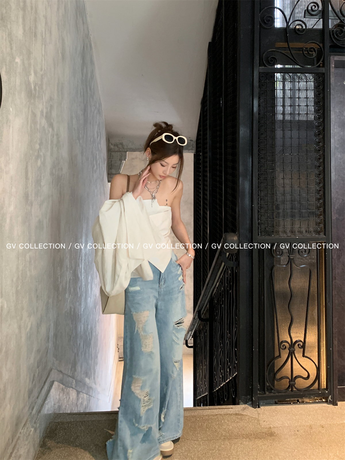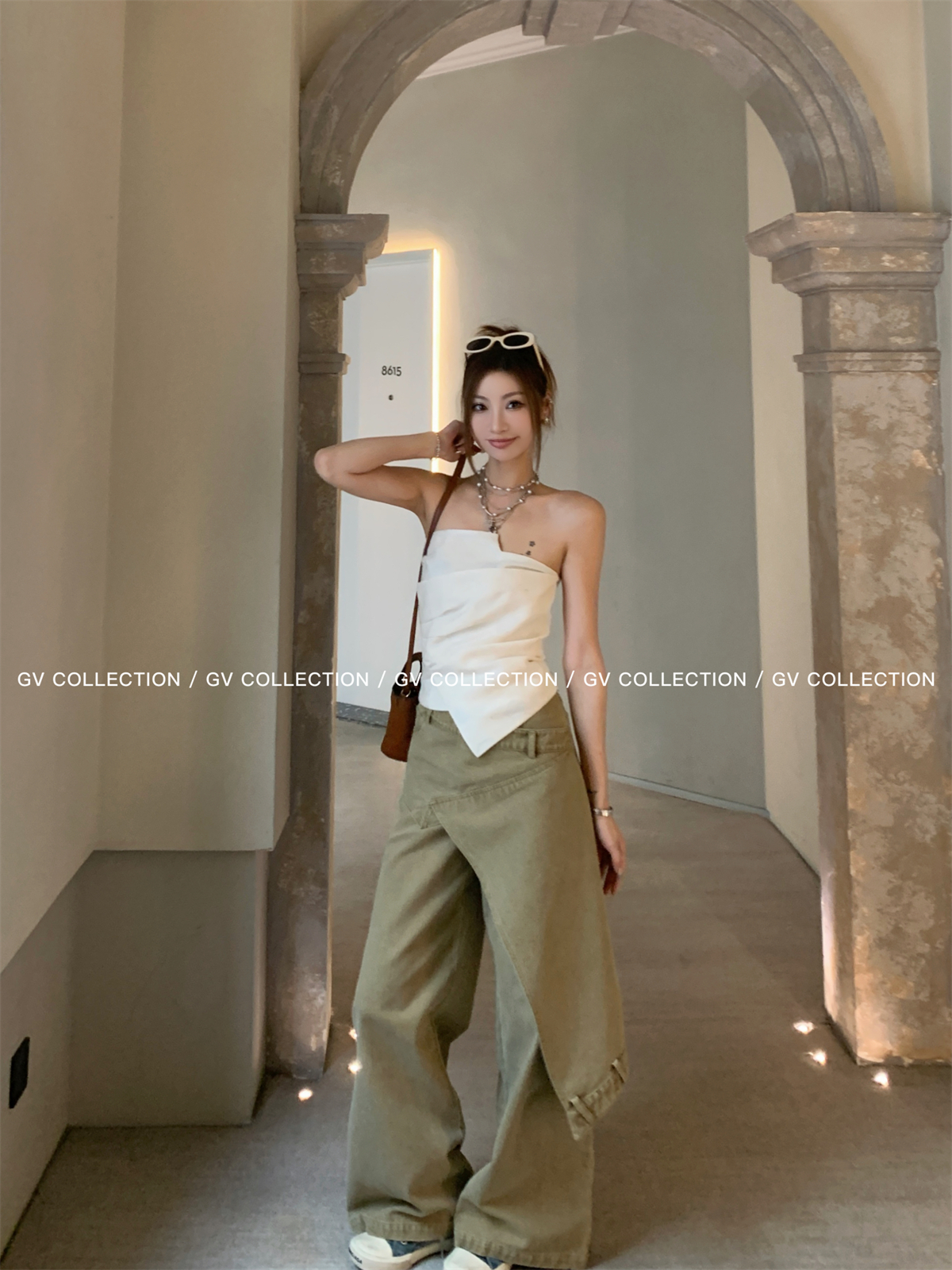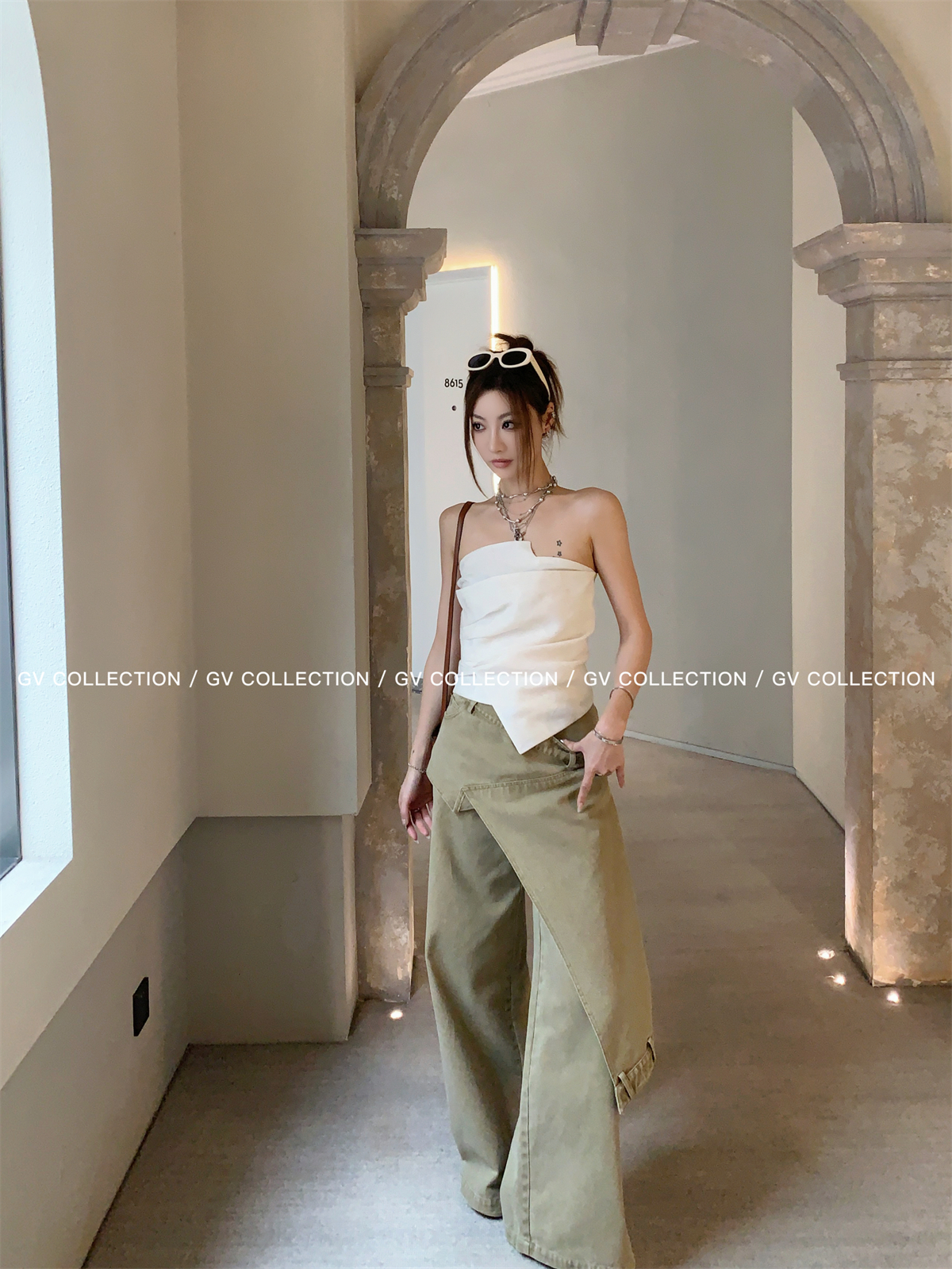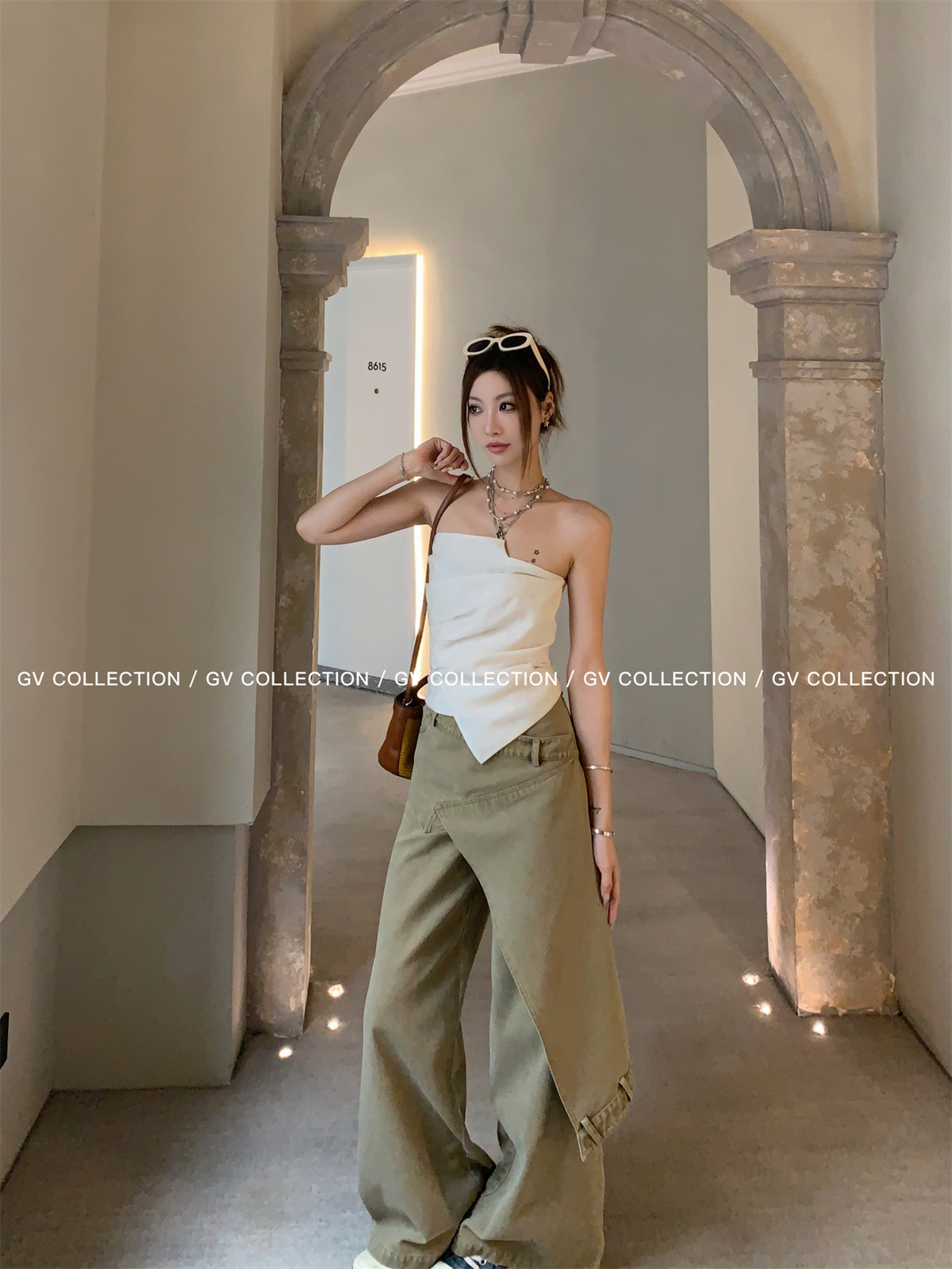 热卖GV大白哥 designer私服 设计感双层立体结构不规则抹胸一字上衣女