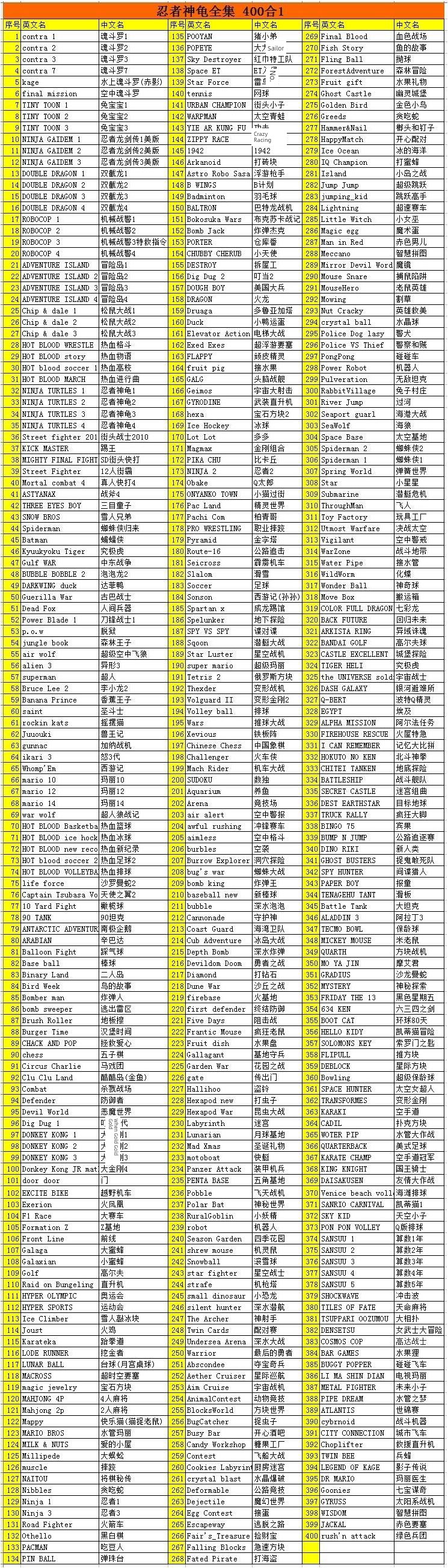 型号: 忍者龟全集400合1