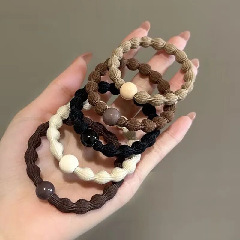 热卖气质珍珠豆豆发圈女扎马尾新款发绳高弹力耐用不伤简约运动皮筋
