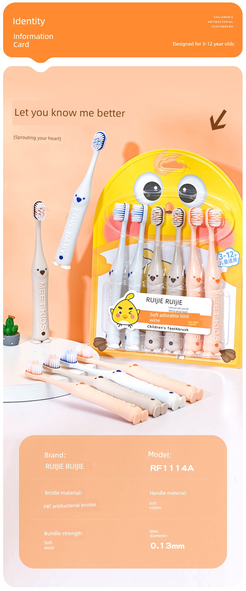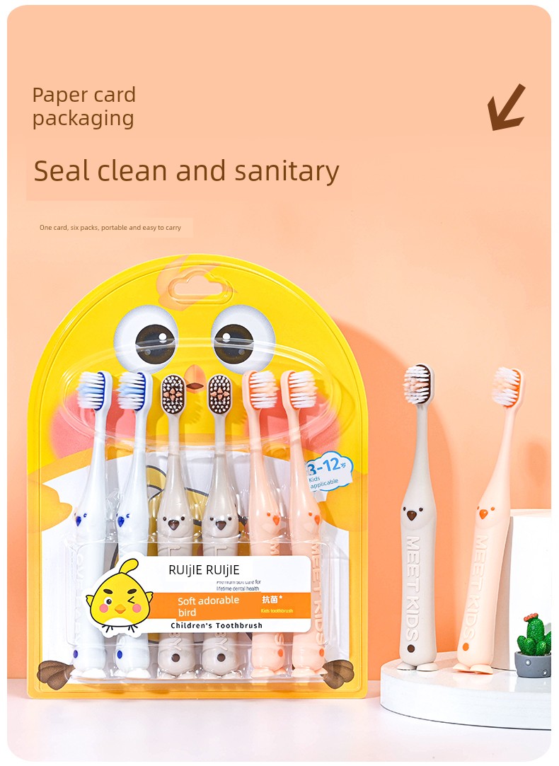 热卖睿洁儿童牙刷软萌鸟3-5到6一12岁换牙期软毛小头牙刷小学生6支装