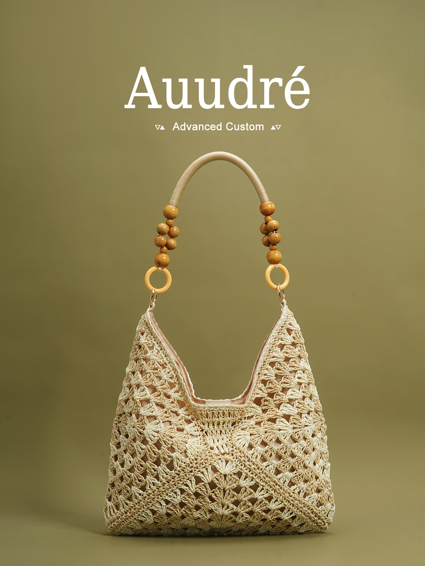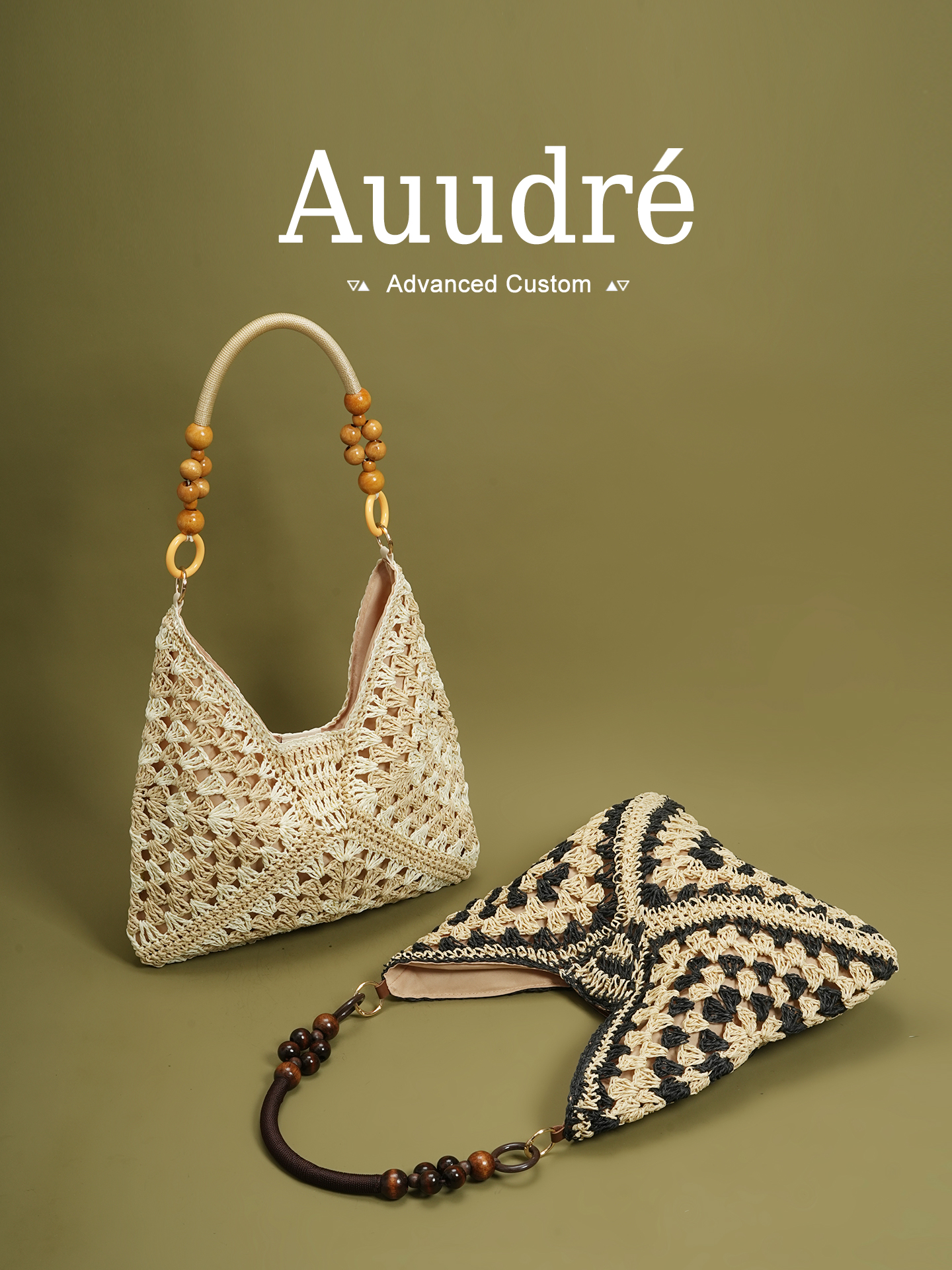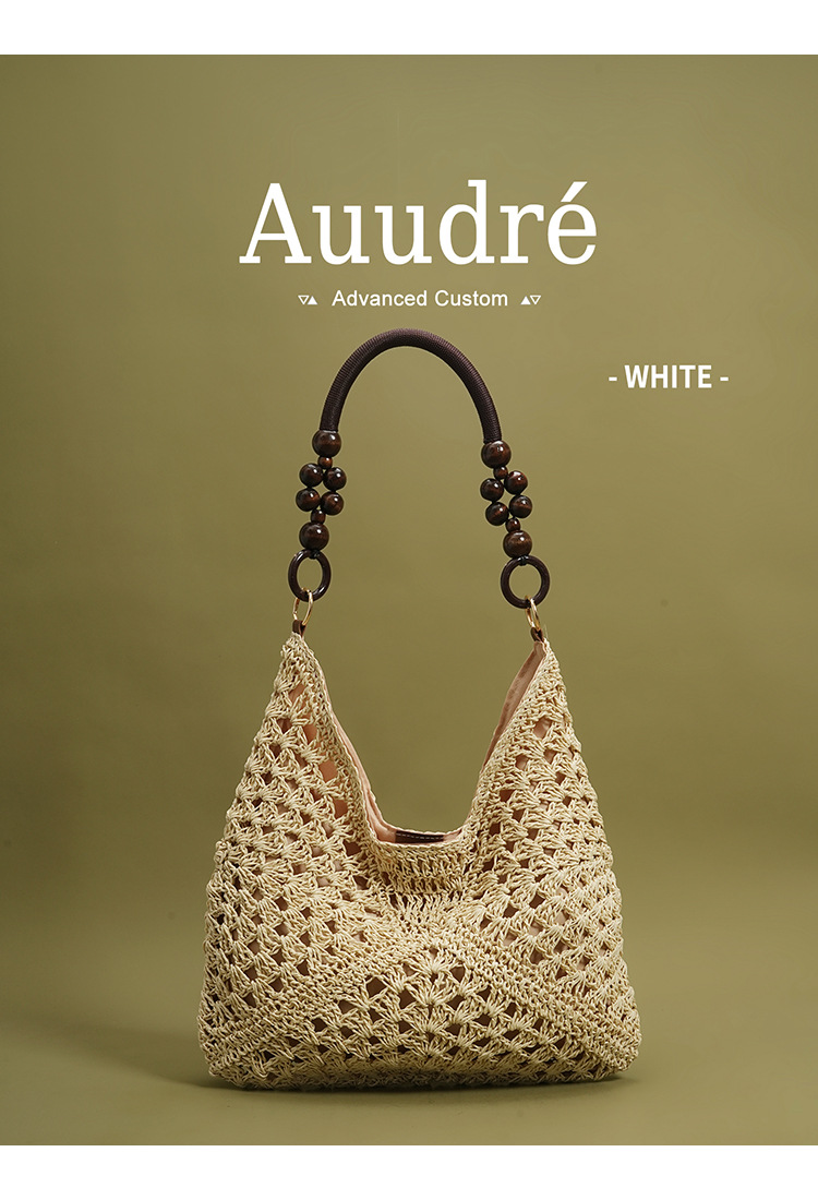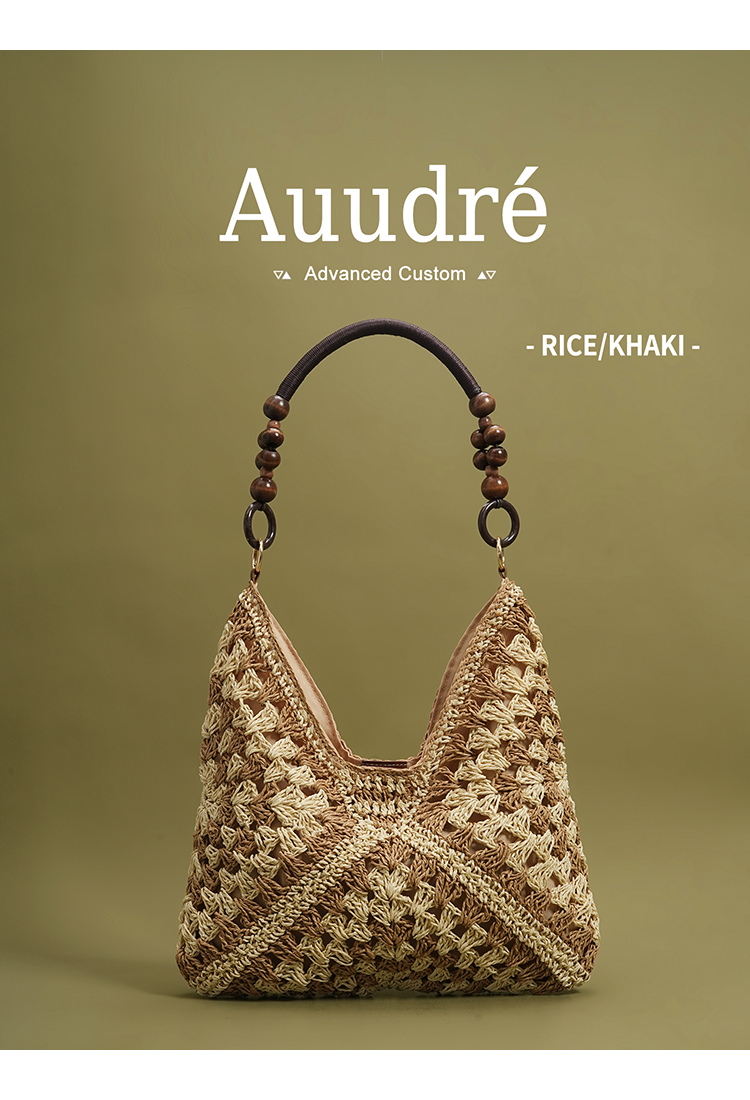 热卖Auudre夏季编织草编串珠单肩托特包包女式2025新款海边度假沙滩包