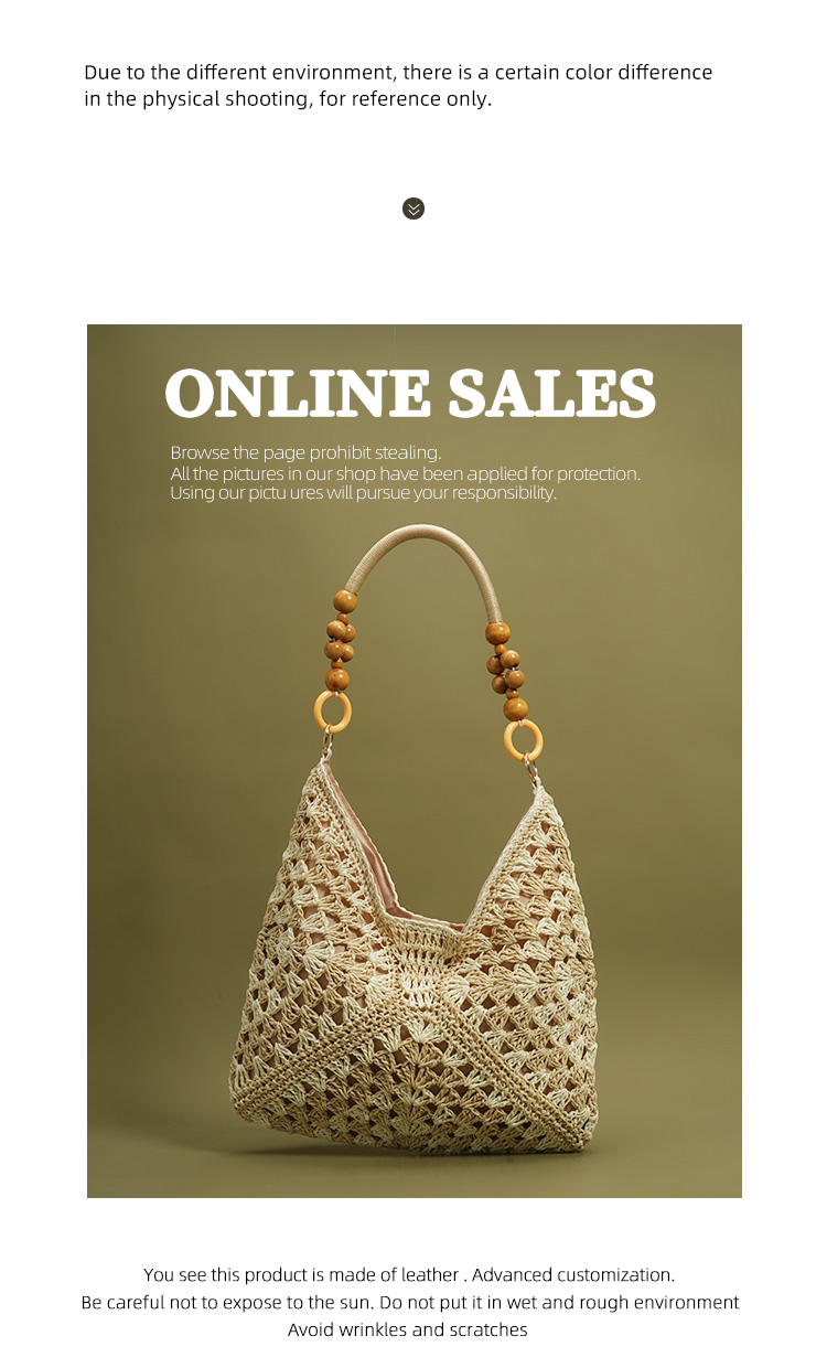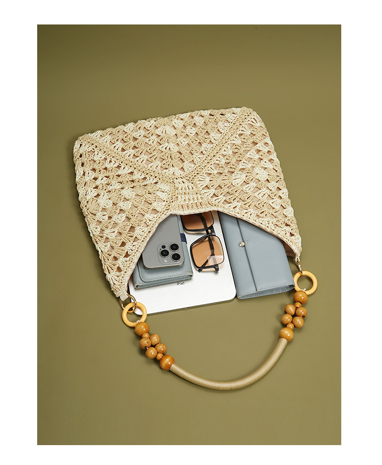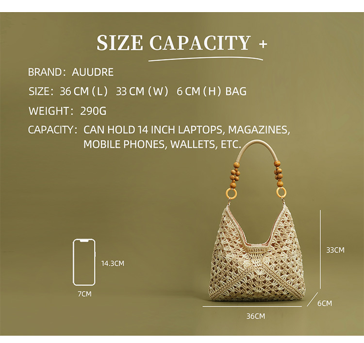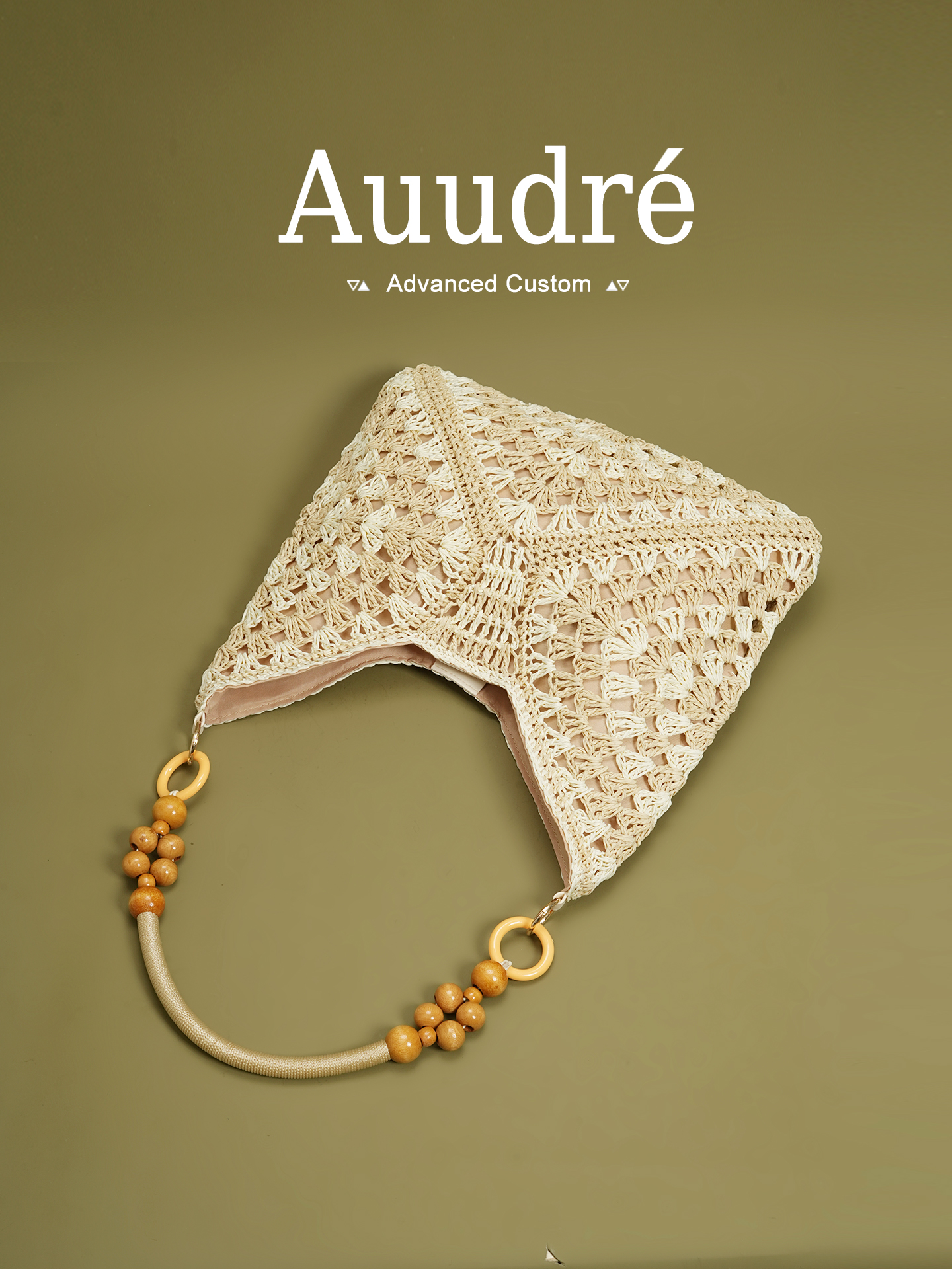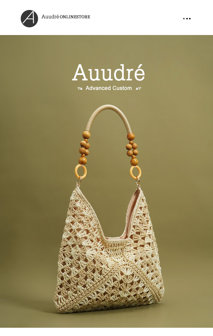热卖Auudre夏季编织草编串珠单肩托特包包女式2025新款海边度假沙滩包