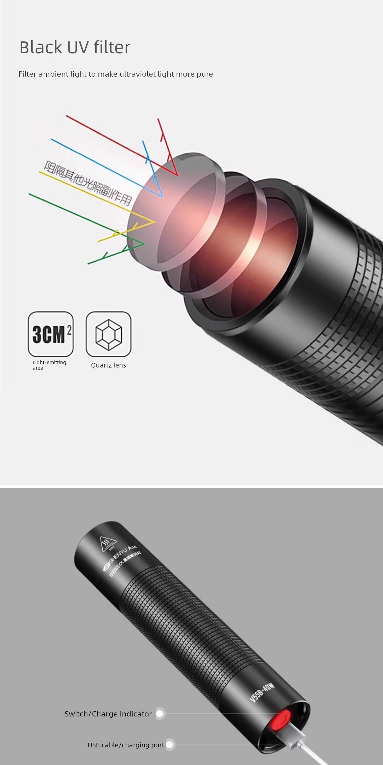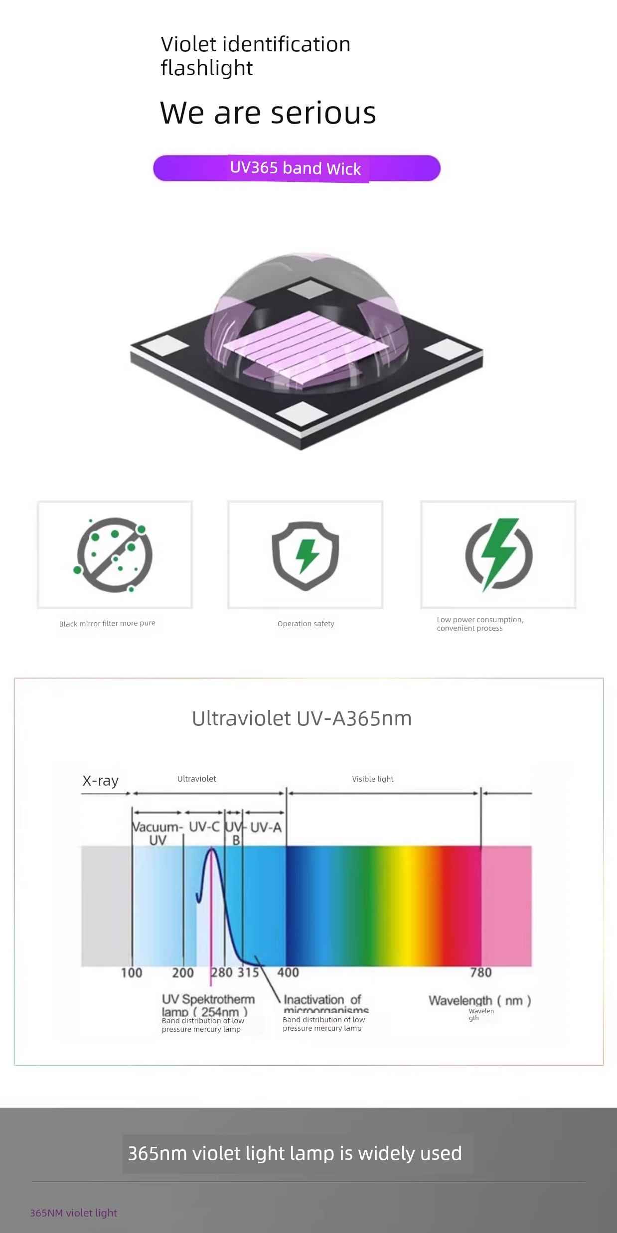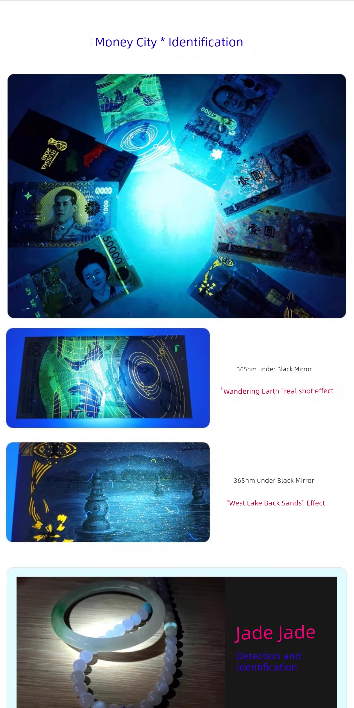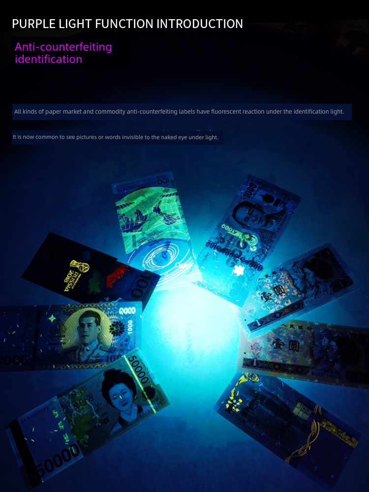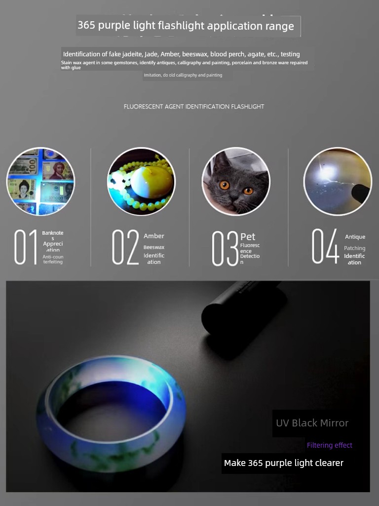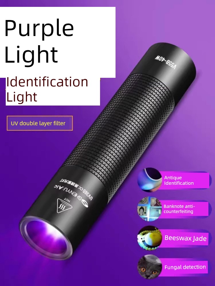 热卖紫光灯鉴定专用紫外线手电筒365nm鉴别翡翠玉石验钞荧光灯笔锂电