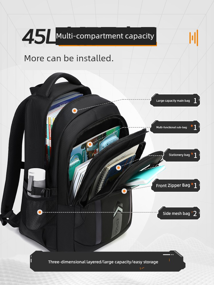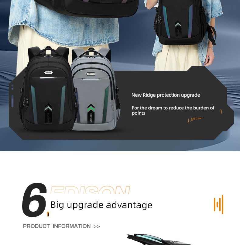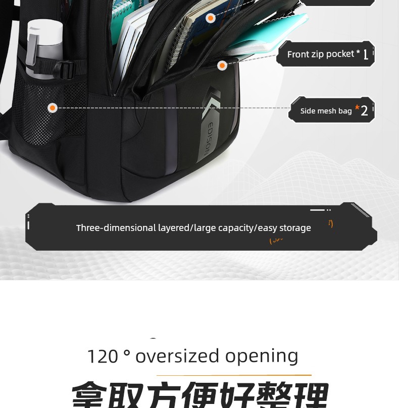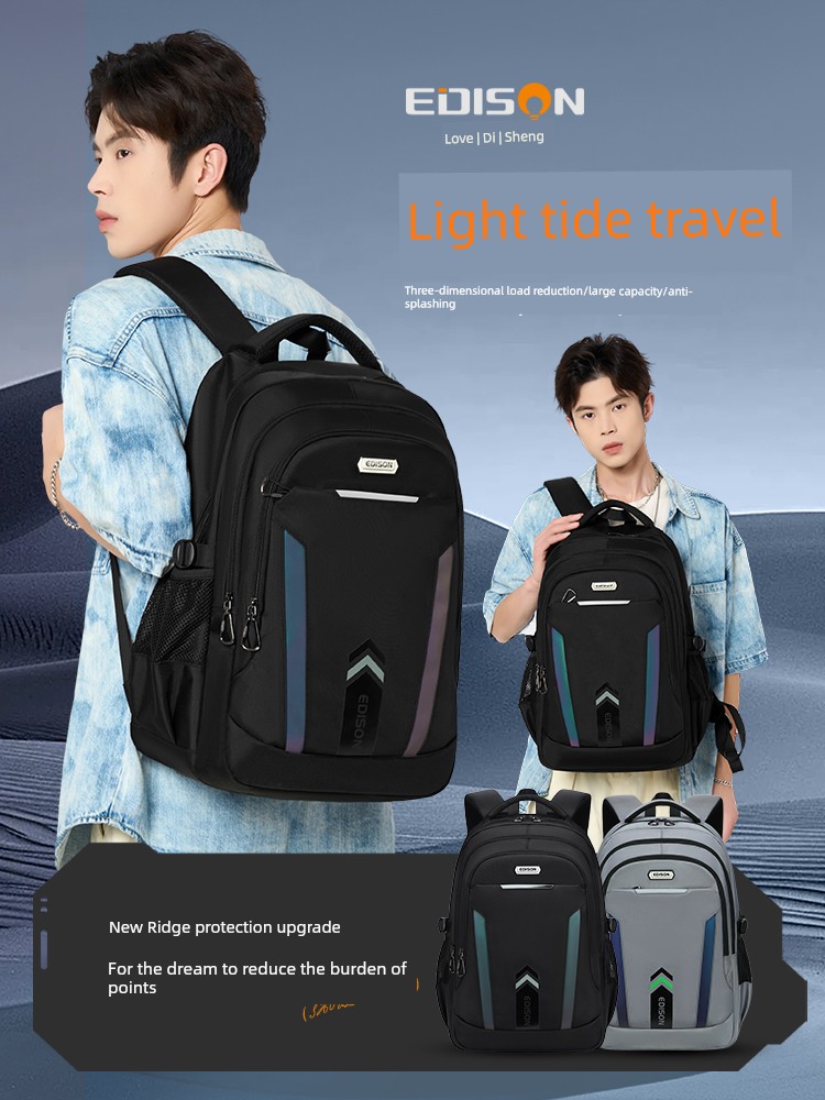 热卖爱迪生2025新款书包初中生高中生男生大容量男款减负护脊青少年男