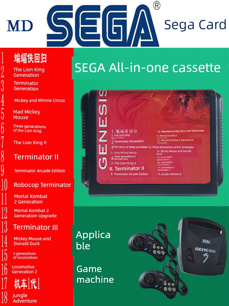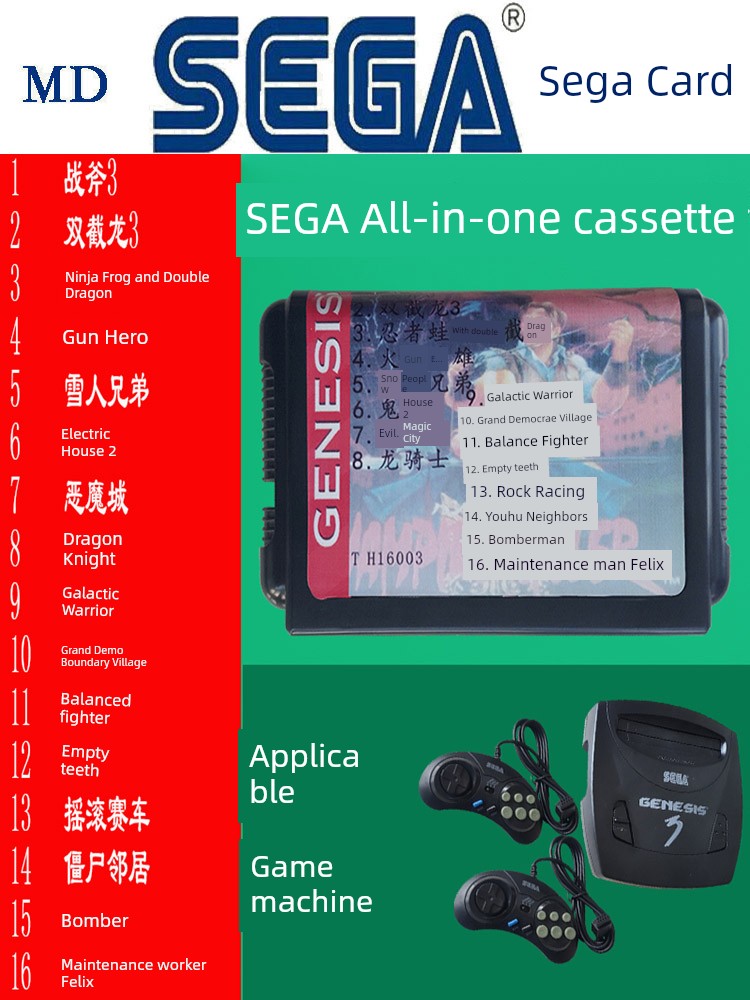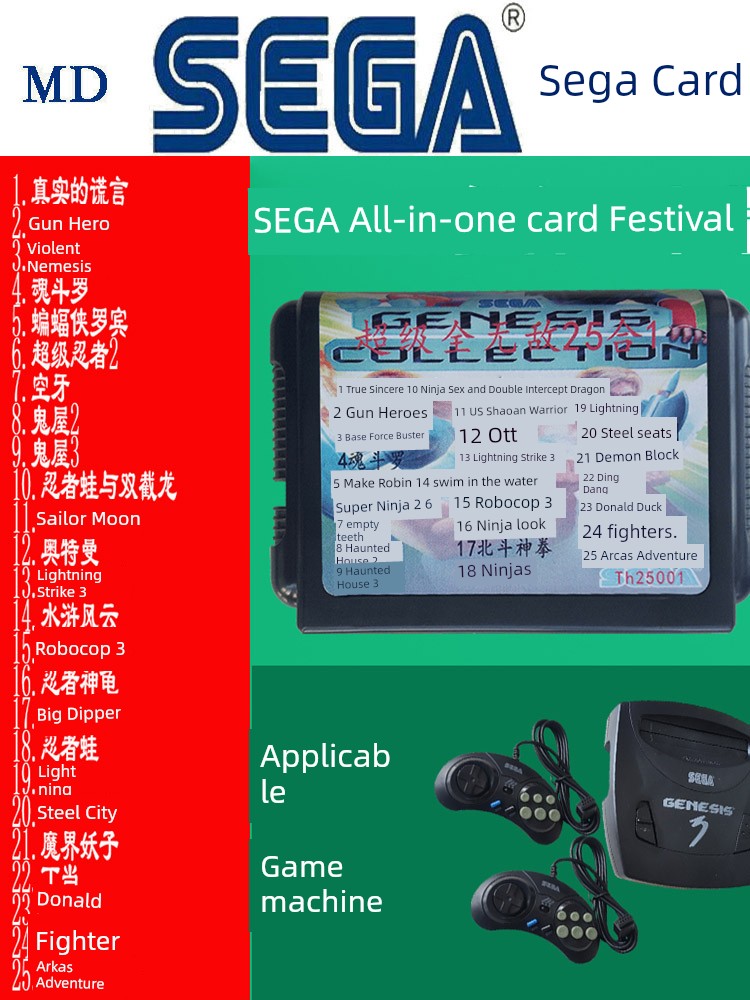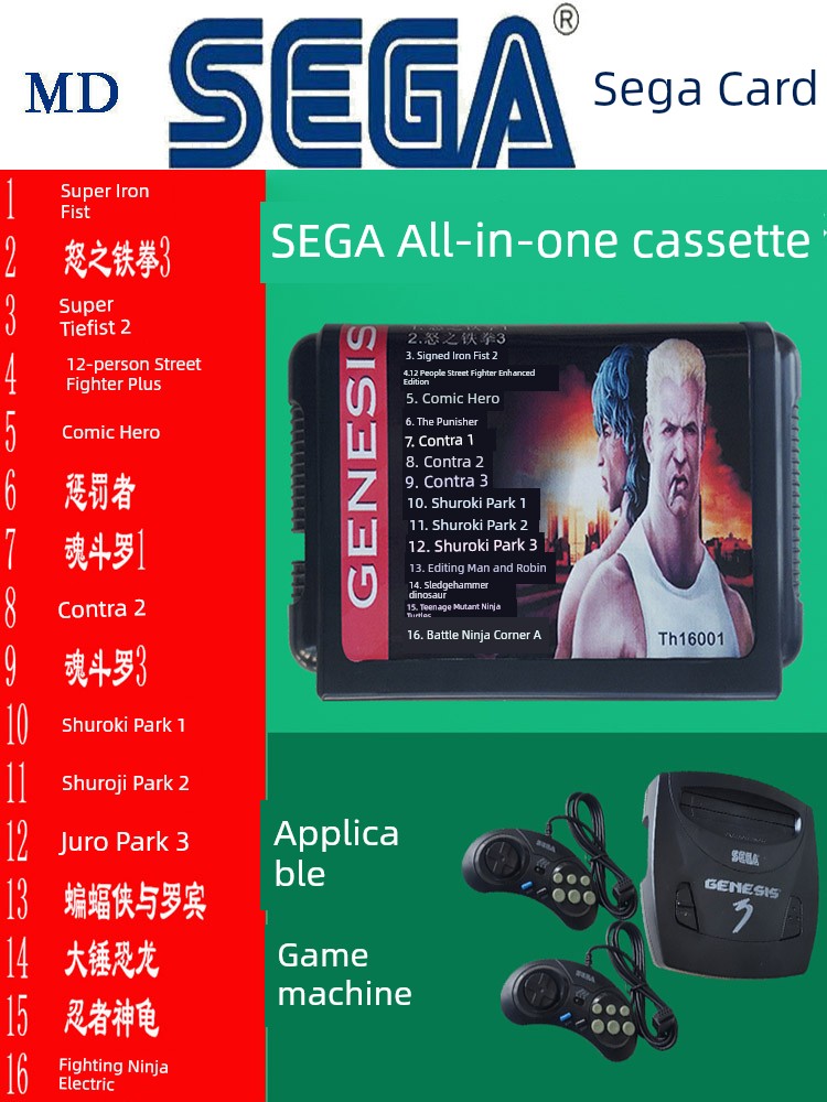 热卖世嘉游戏卡游戏机16位黑卡带多合一MD世嘉卡高清游戏机卡合集