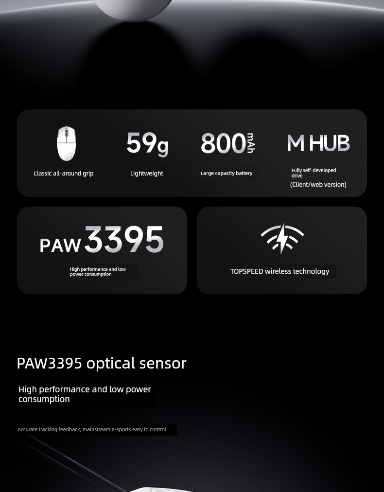 热卖MCHOSE迈从G3无线鼠标游戏办公无孔轻量化PAW3395三模蓝牙有线Pro