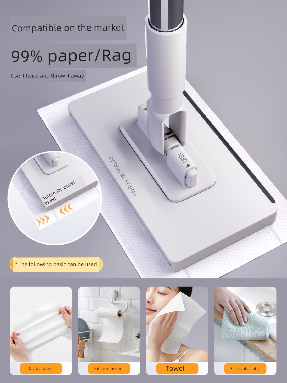 热卖索邦洗脸巾小拖把懒人迷你拖把夹布洗面巾二次利用自动换纸地拖