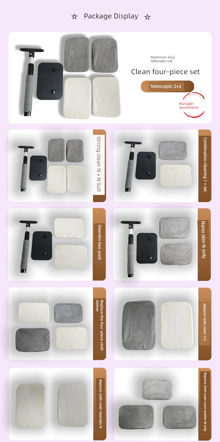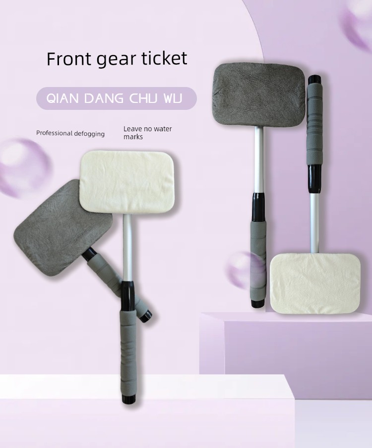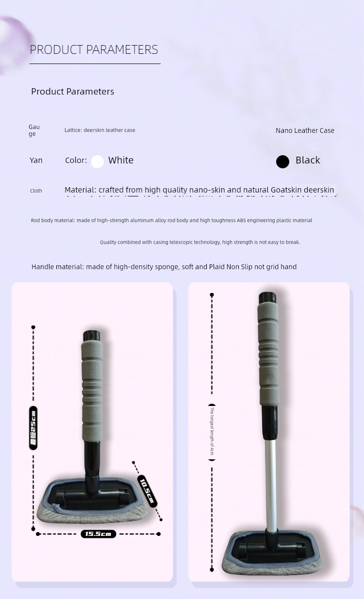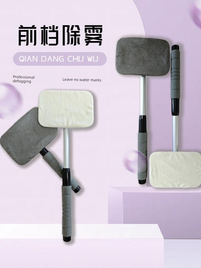 热卖车用挡风玻璃擦雾拖把伸缩直杆车窗内饰清洁除尘刷真麂皮擦车窗刷