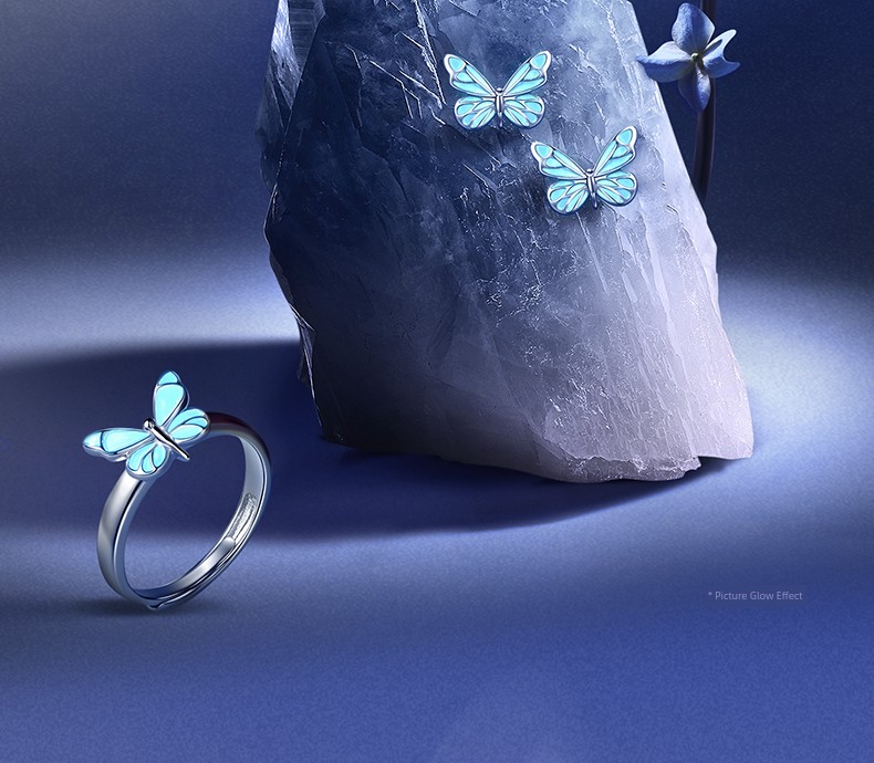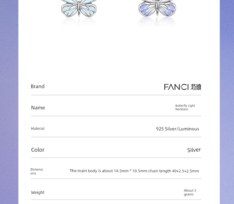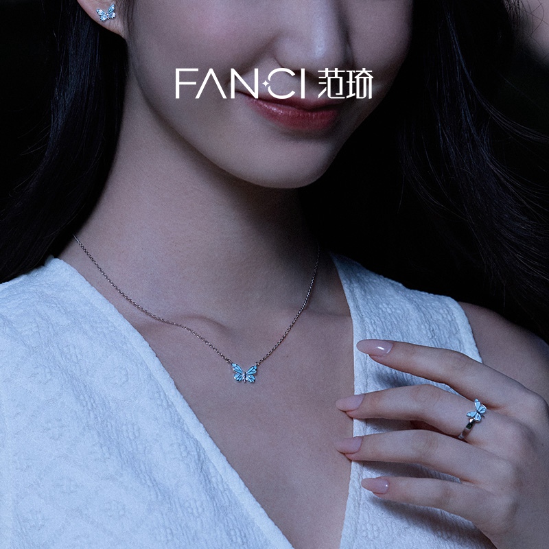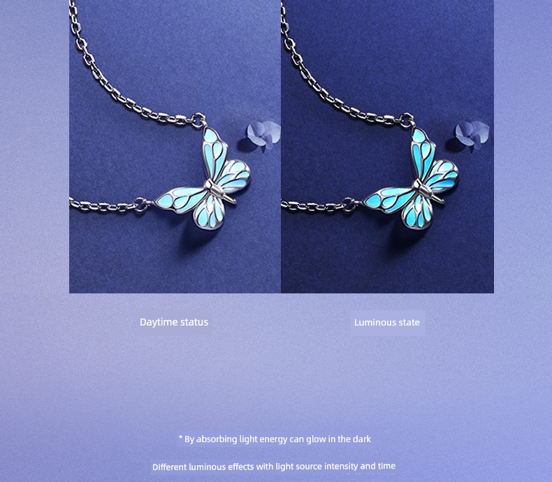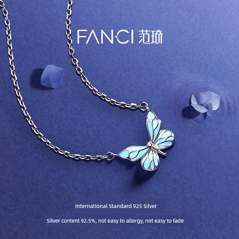 热卖Fanci范琦 蝶光项链女款夜光蝴蝶蓝色闪蝶银饰生日礼物送闺蜜女友