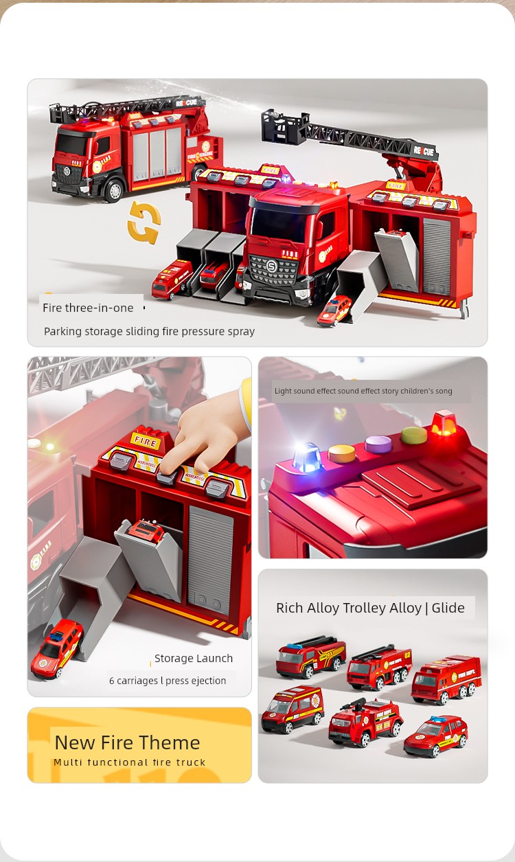 热卖山姆多功能消防车玩具男孩大号警车轨道喷水变形儿童生日礼物3岁6