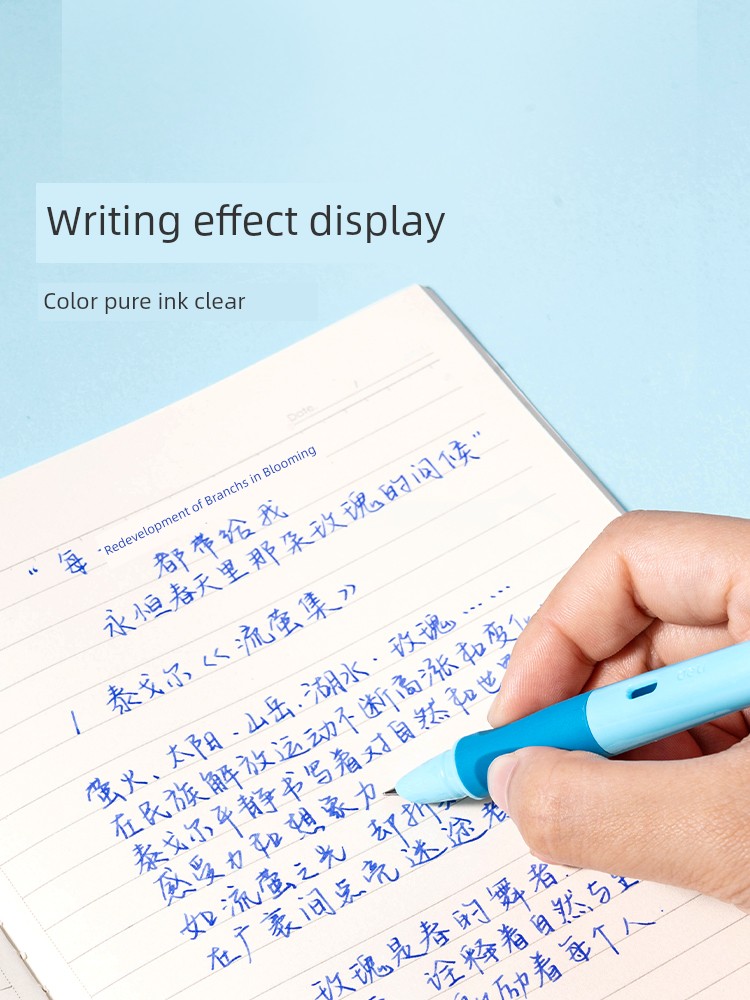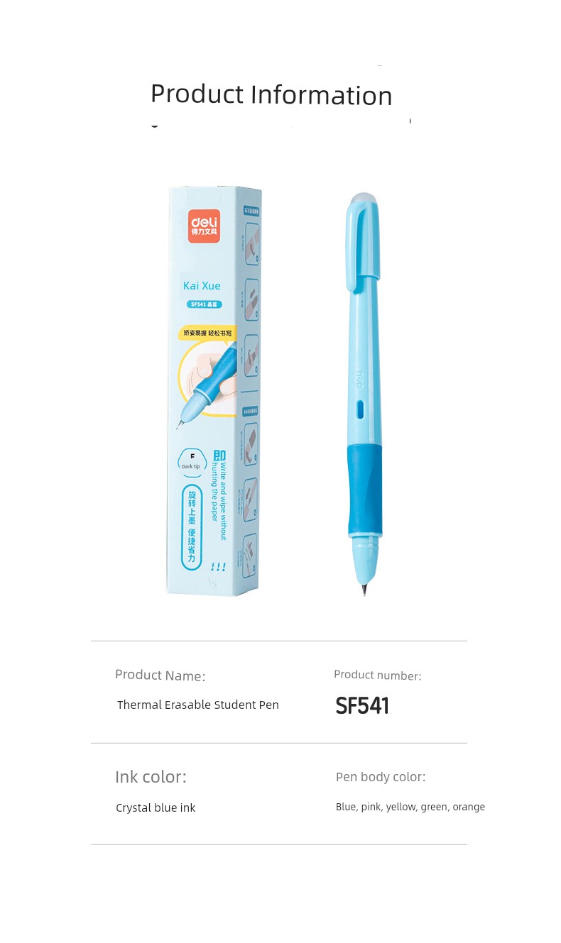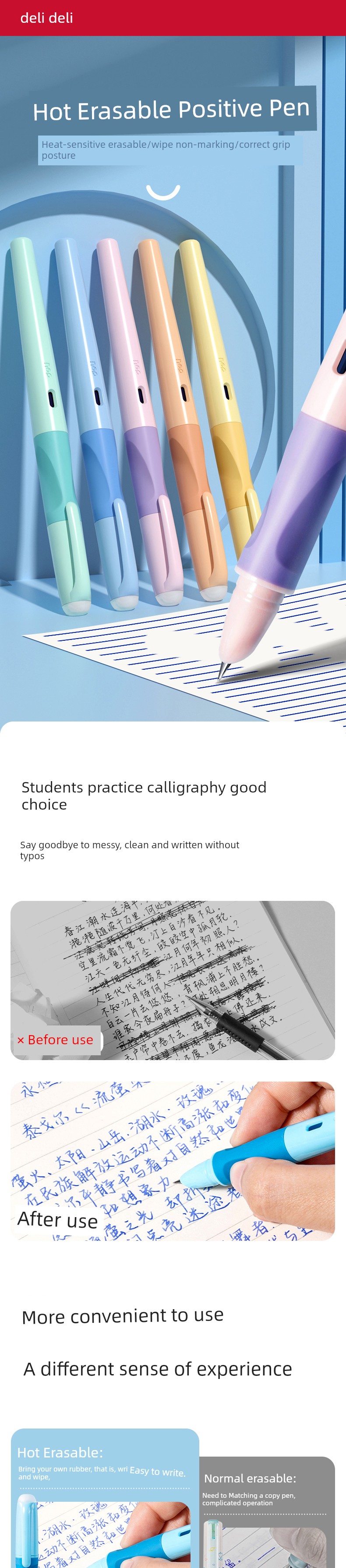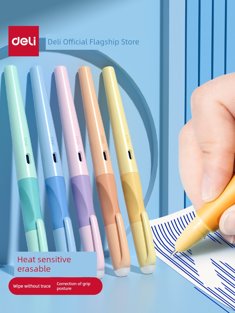 热卖得力热可擦0.5mm晶蓝正姿钢笔