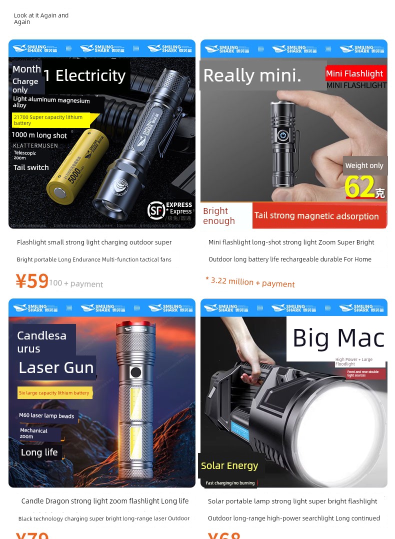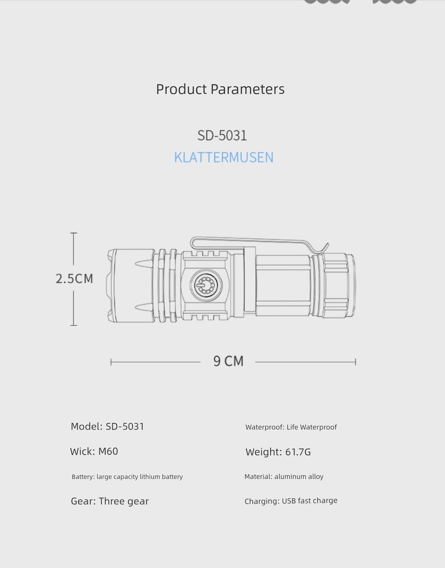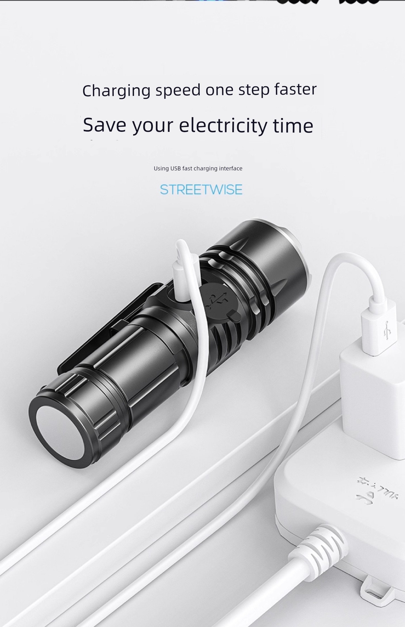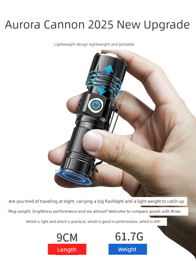 热卖迷你手电筒2025新款强光户外超亮充电变焦远射家用耐用小型便携式