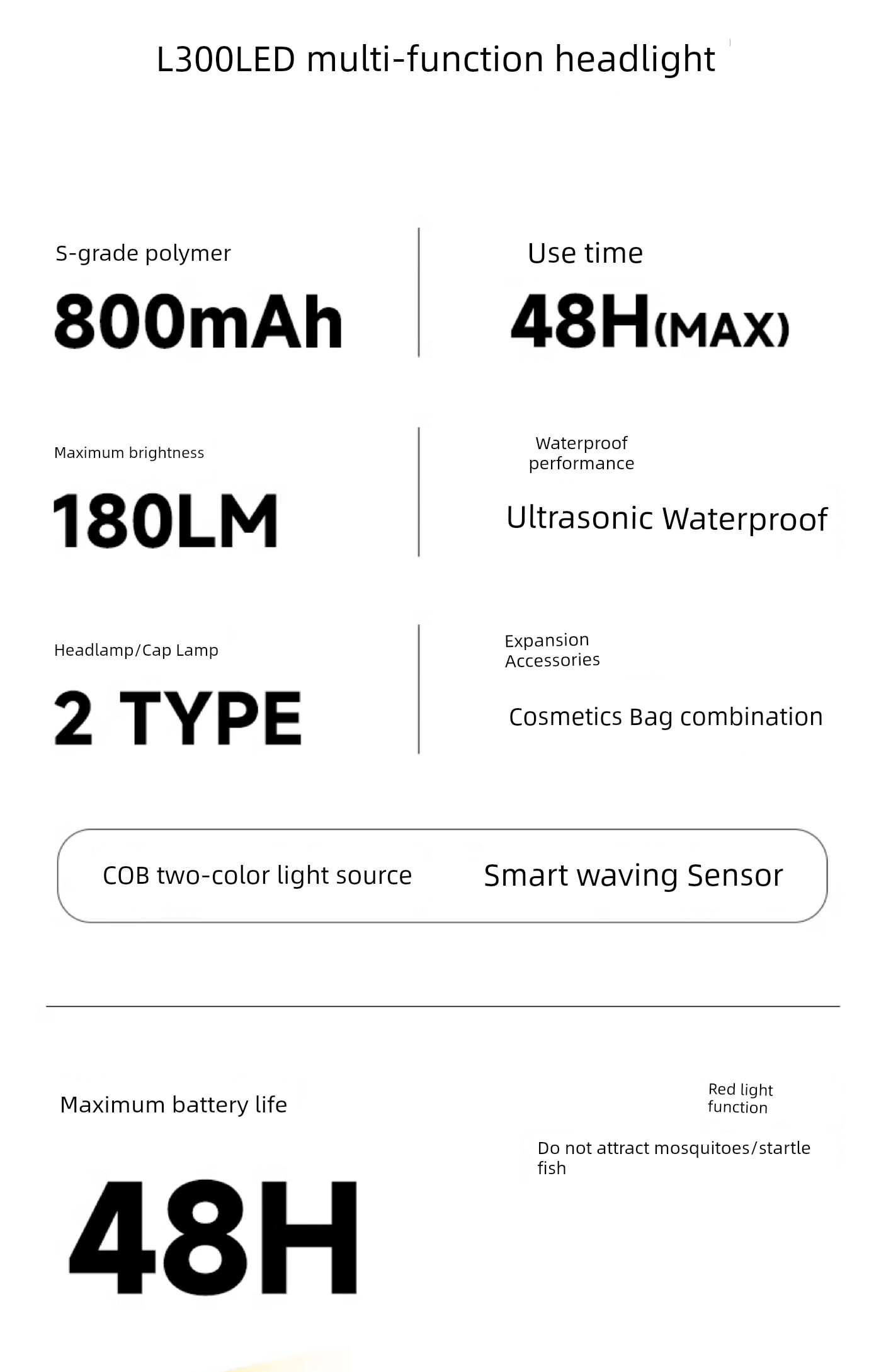 热卖LEM钓鱼专用夹式超长续航头灯