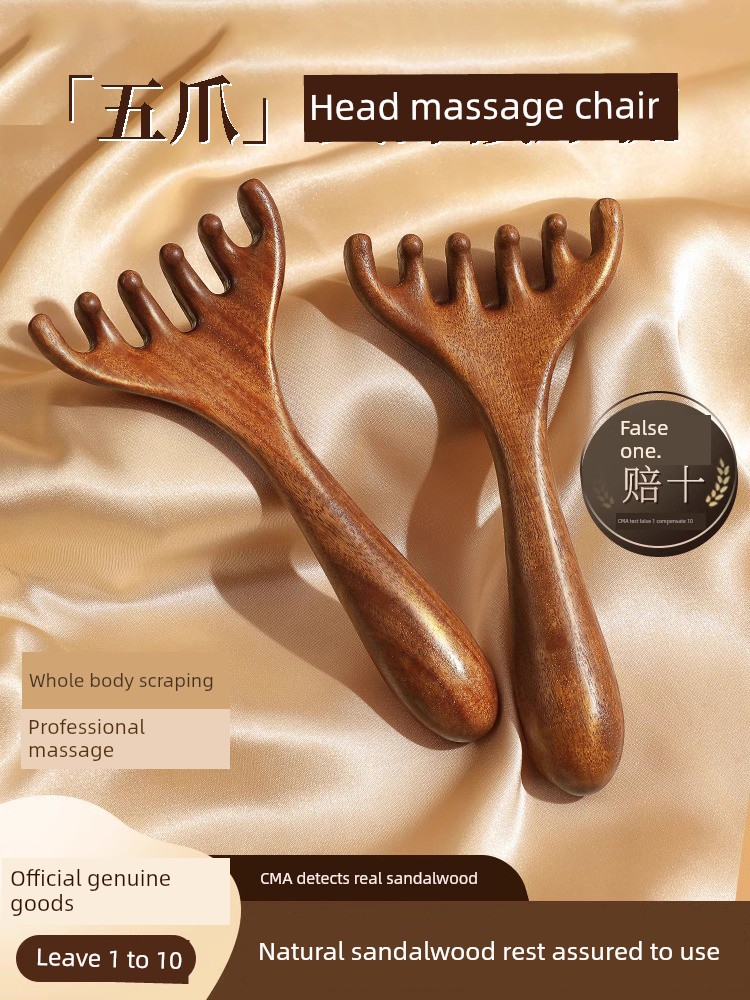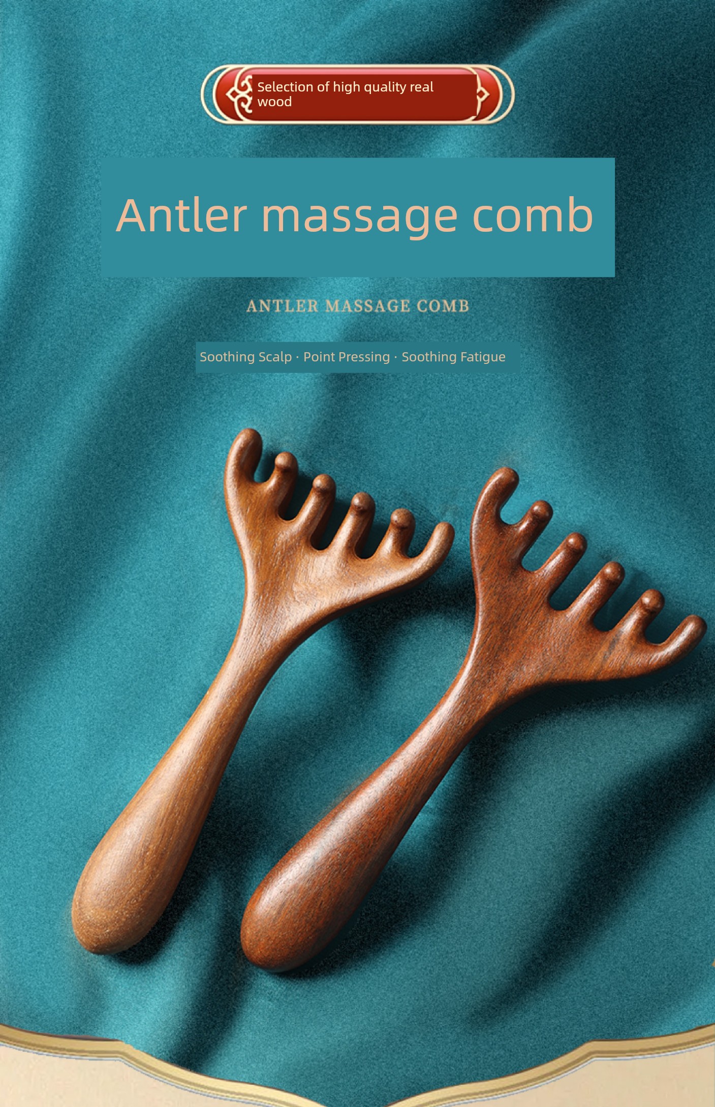 热卖五爪头部按摩经络梳子养生头疗工具天然檀木头皮刮痧疏通神器鹿角