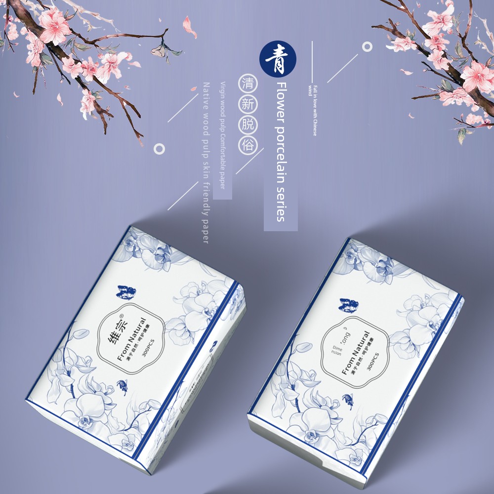 热卖青花瓷抽纸整箱实惠装家用卫生纸宿舍餐巾纸批发办公室面巾纸