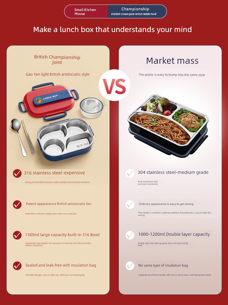 热卖316不锈钢保温饭盒学生小学生专用食品级儿童分格餐盘便当餐盒