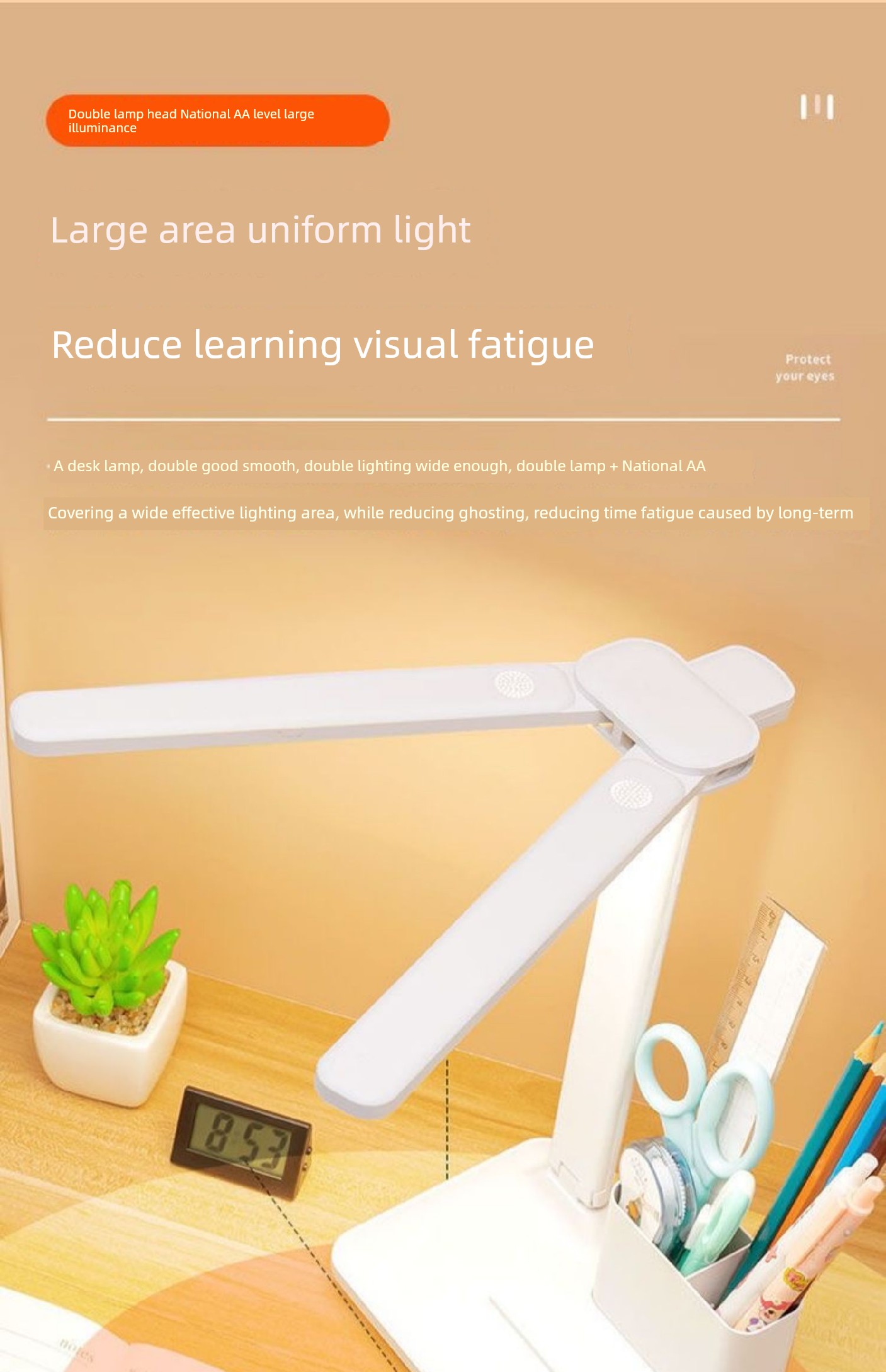 热卖双头台灯学习专用护眼书桌阅读灯学生宿舍写作业儿童充电灯床头灯